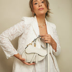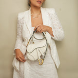Dior Latte Grained Calfskin Saddle Bag Mini Aged Gold Hardware