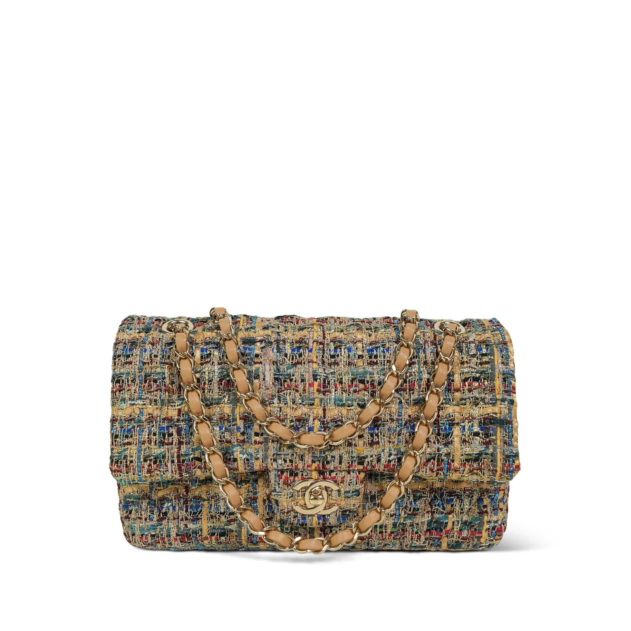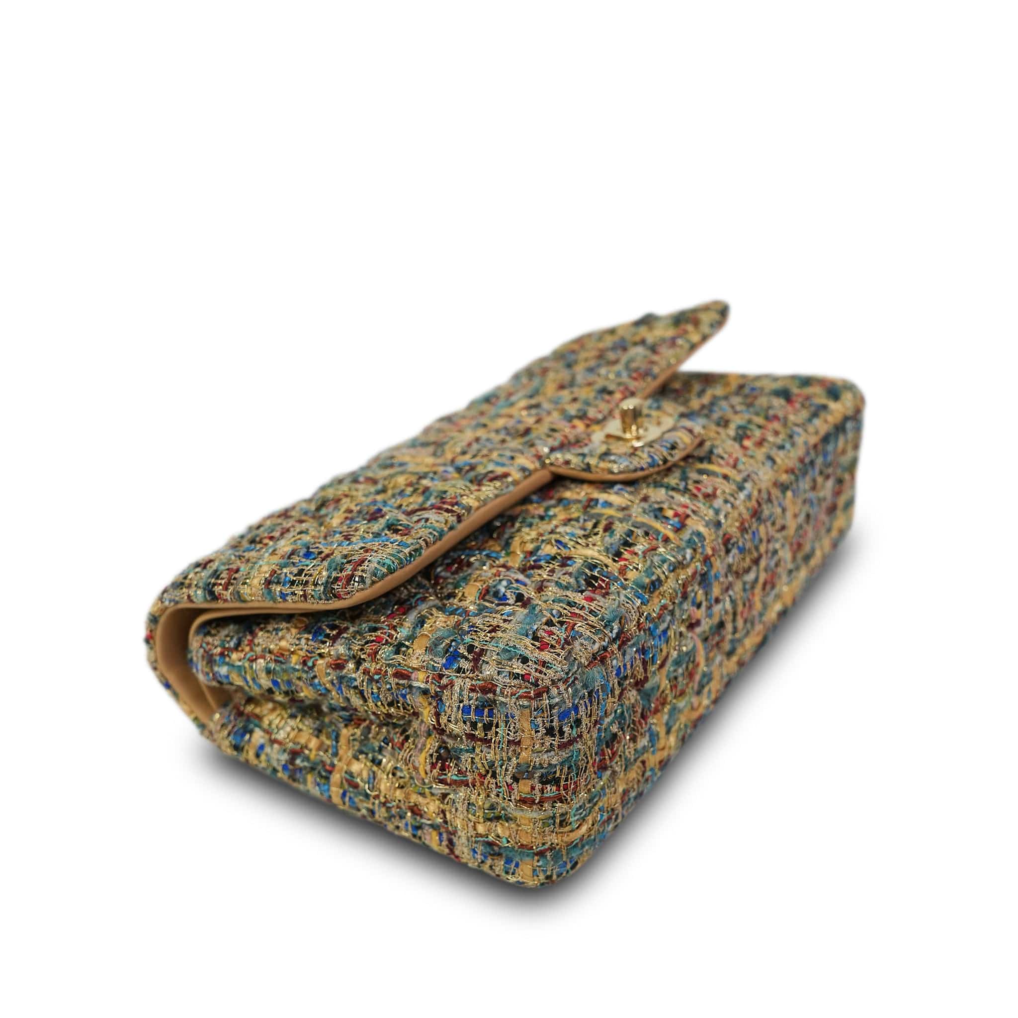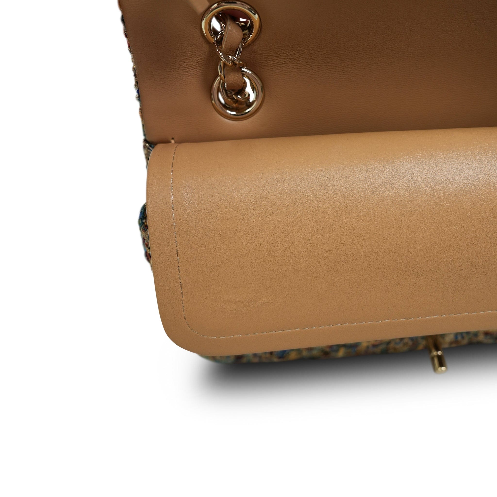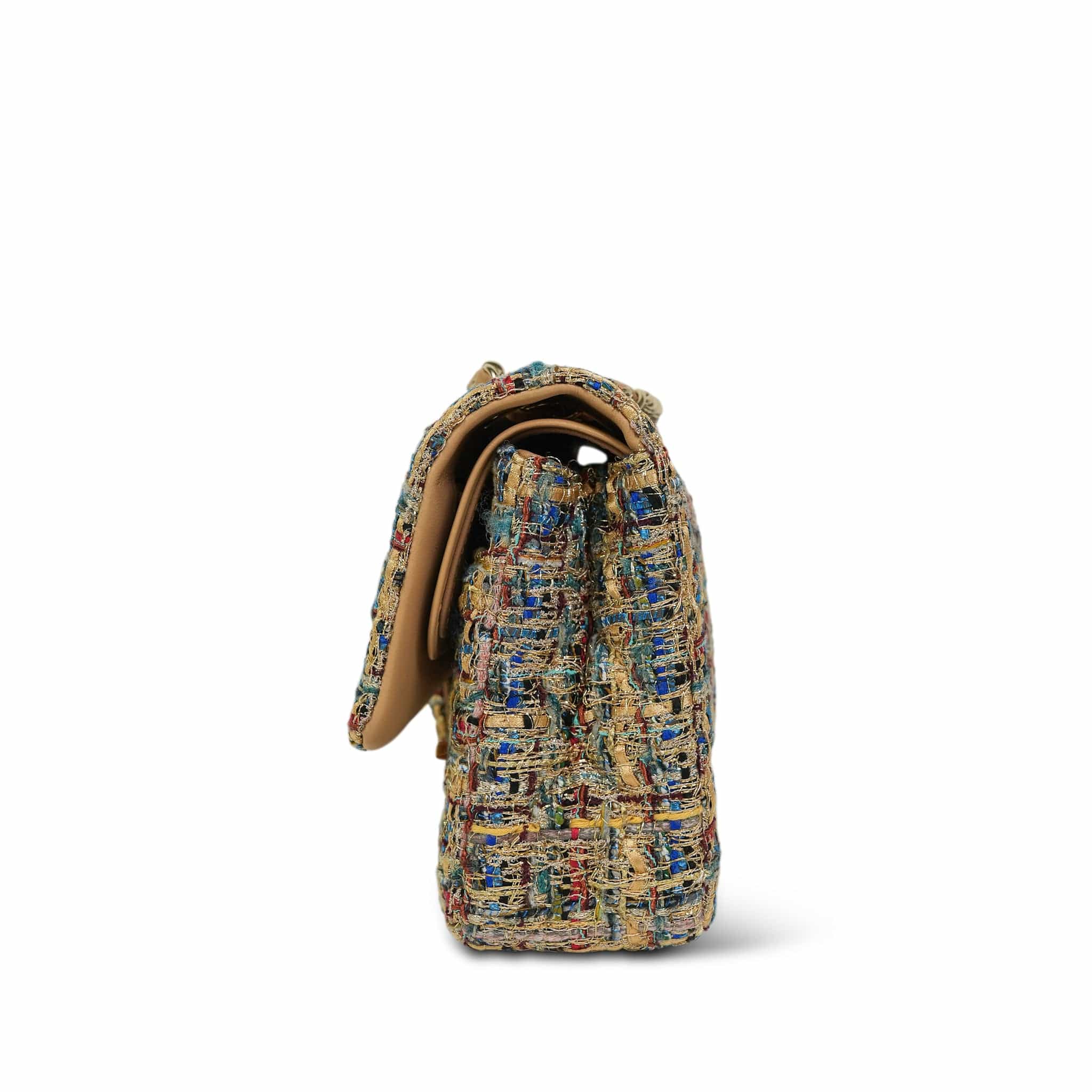 Egyptian Gold Tweed Quilted Classic Flap Medium Light Gold Hardware