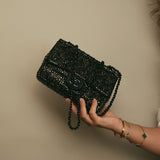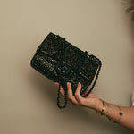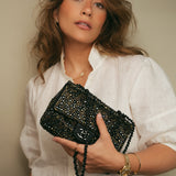 Gold/Bronze Swarovski Crystal Embellished Black Suede Single Flap Bag