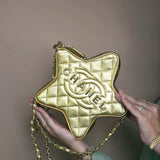 Gold Metallic Lambskin Quilted CC Walk of Fame Star Bag LGHW