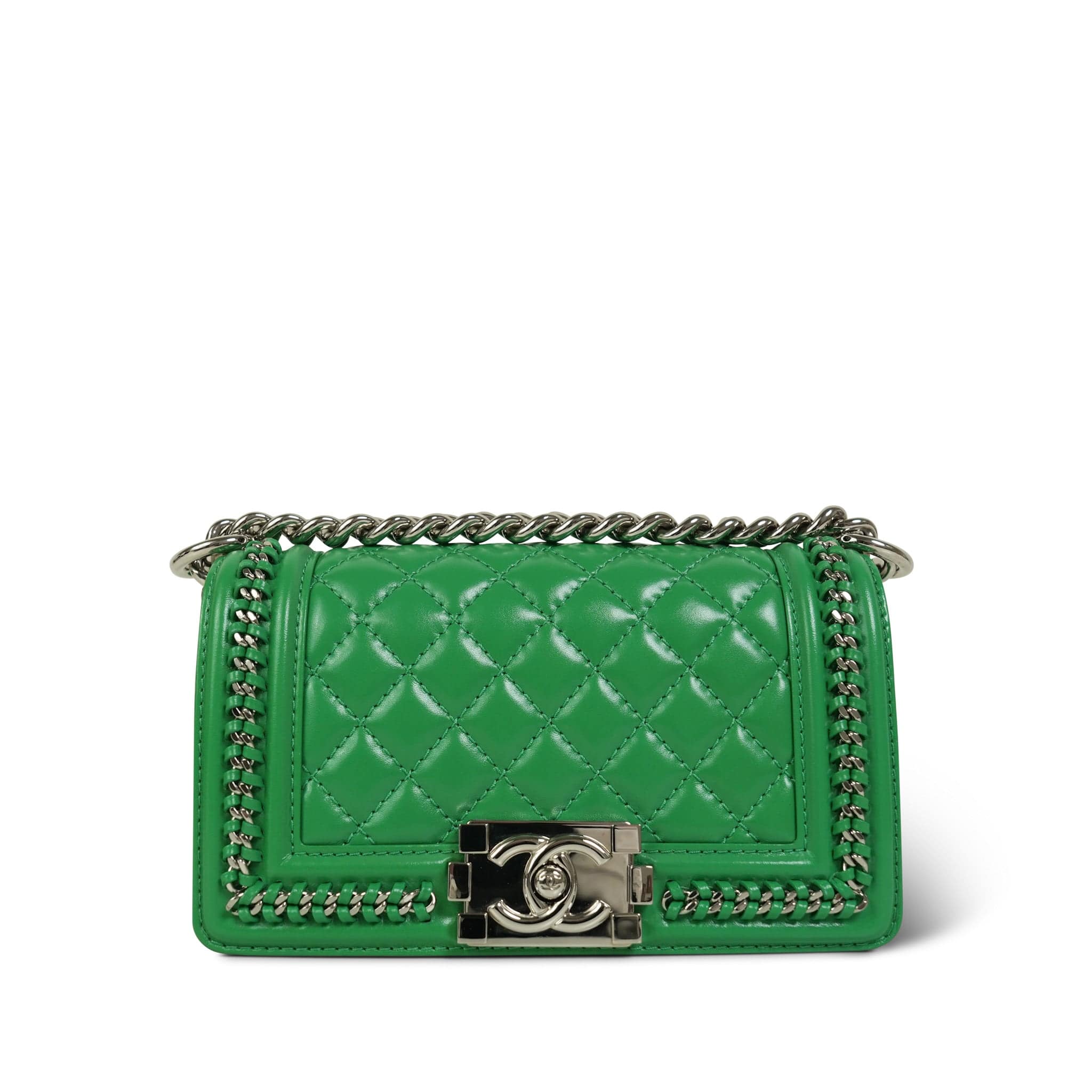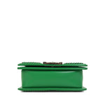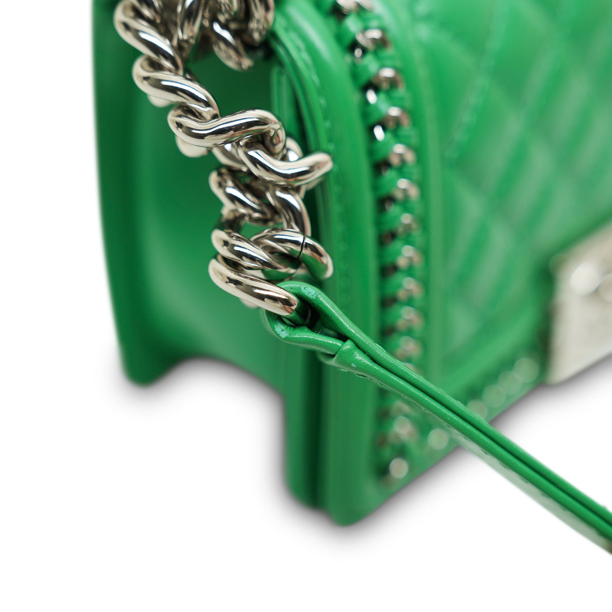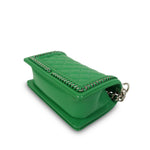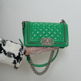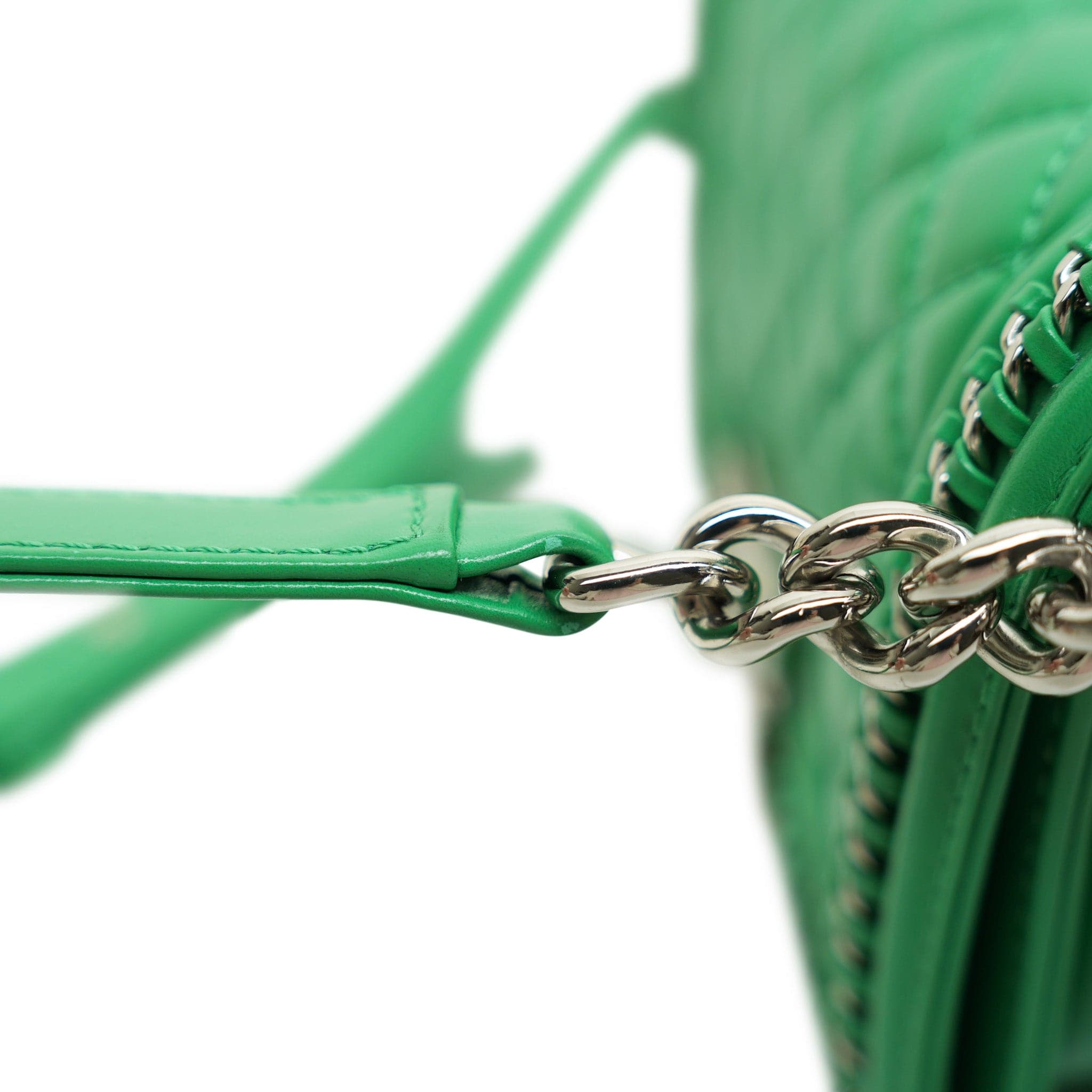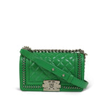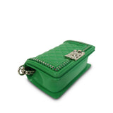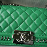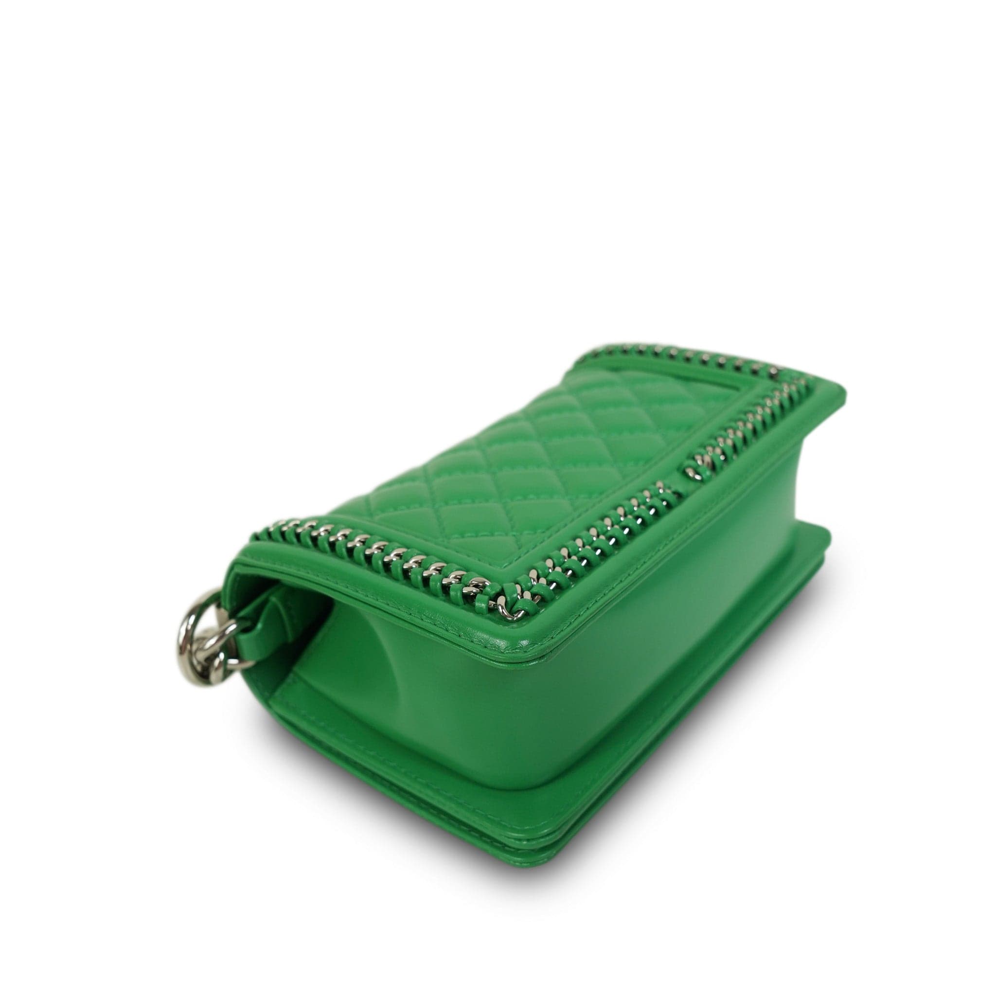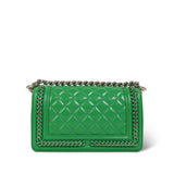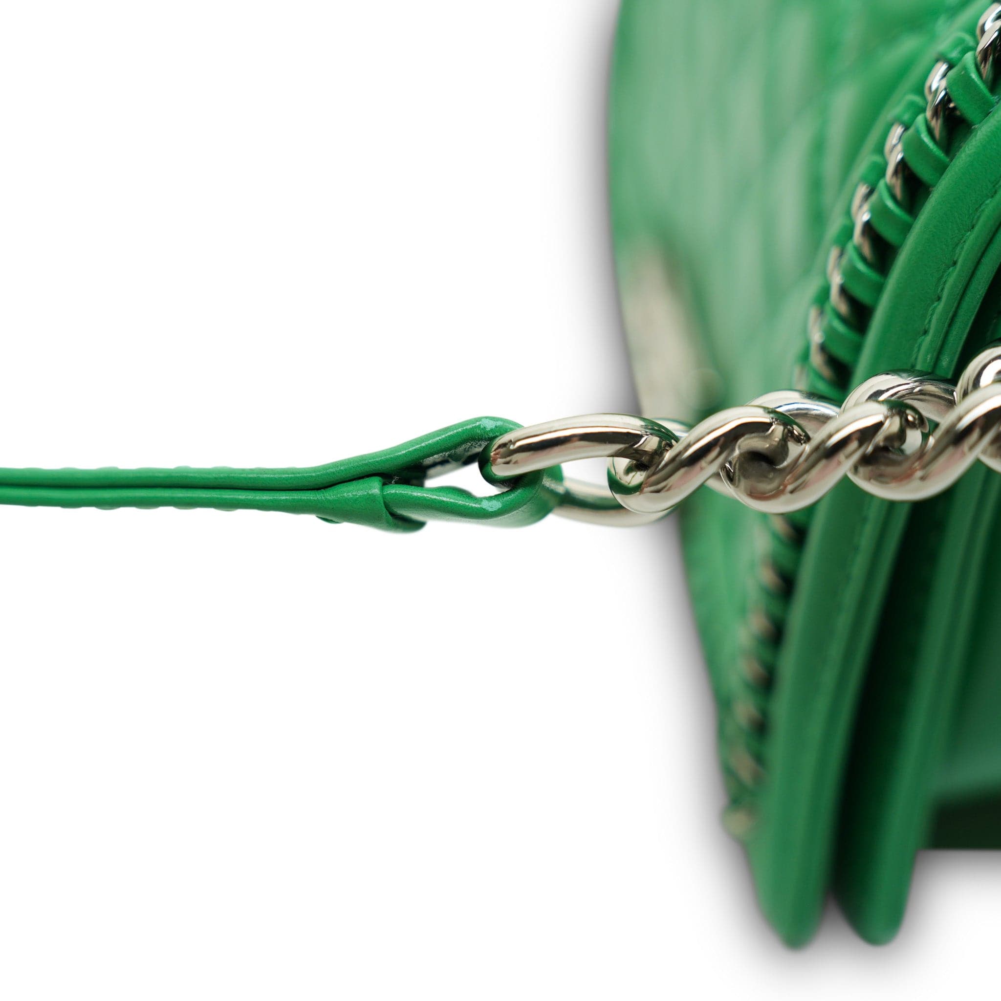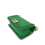 Green Calfskin Quilted Chain Around Boy Bag Small Silver Hardware