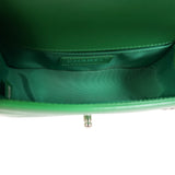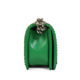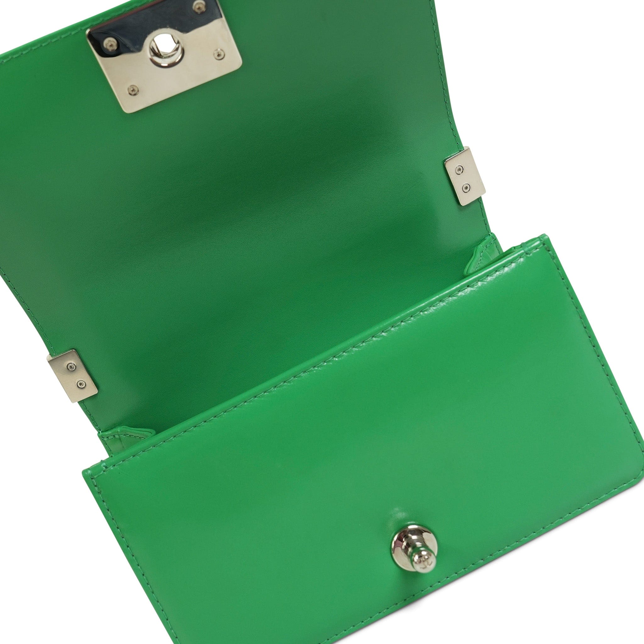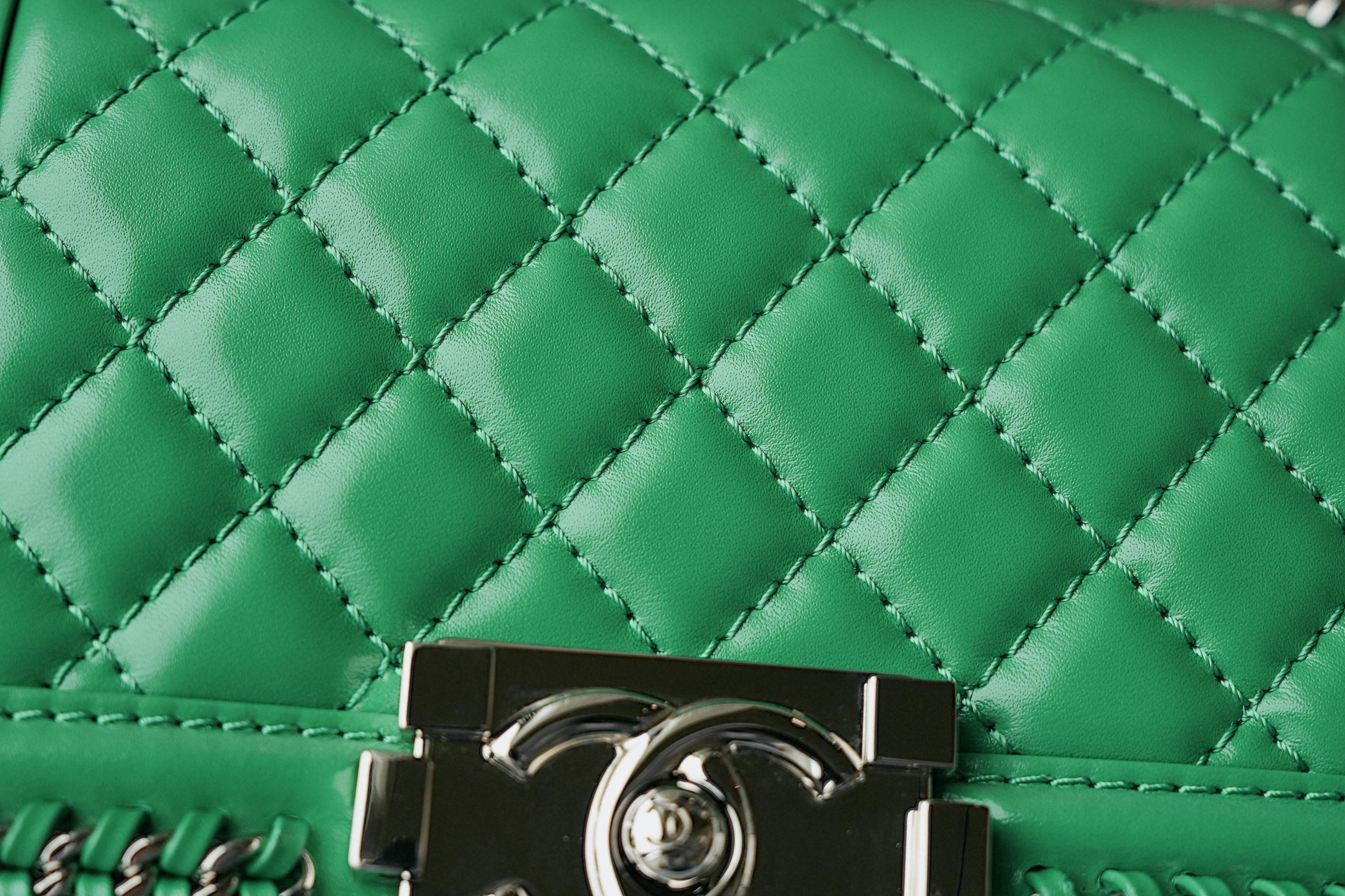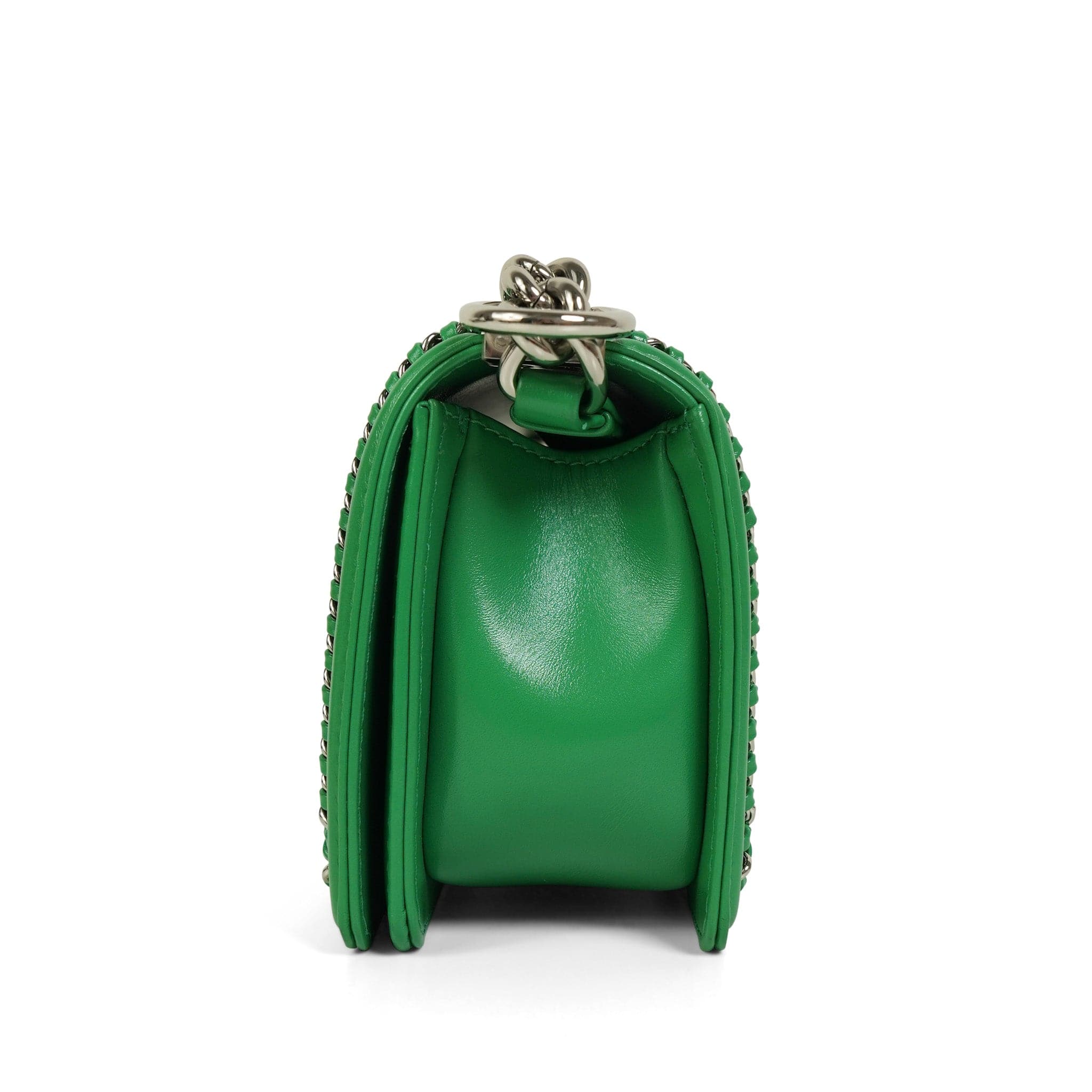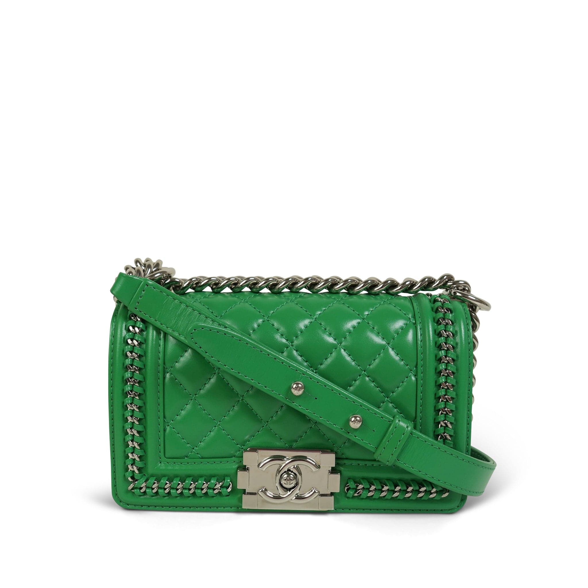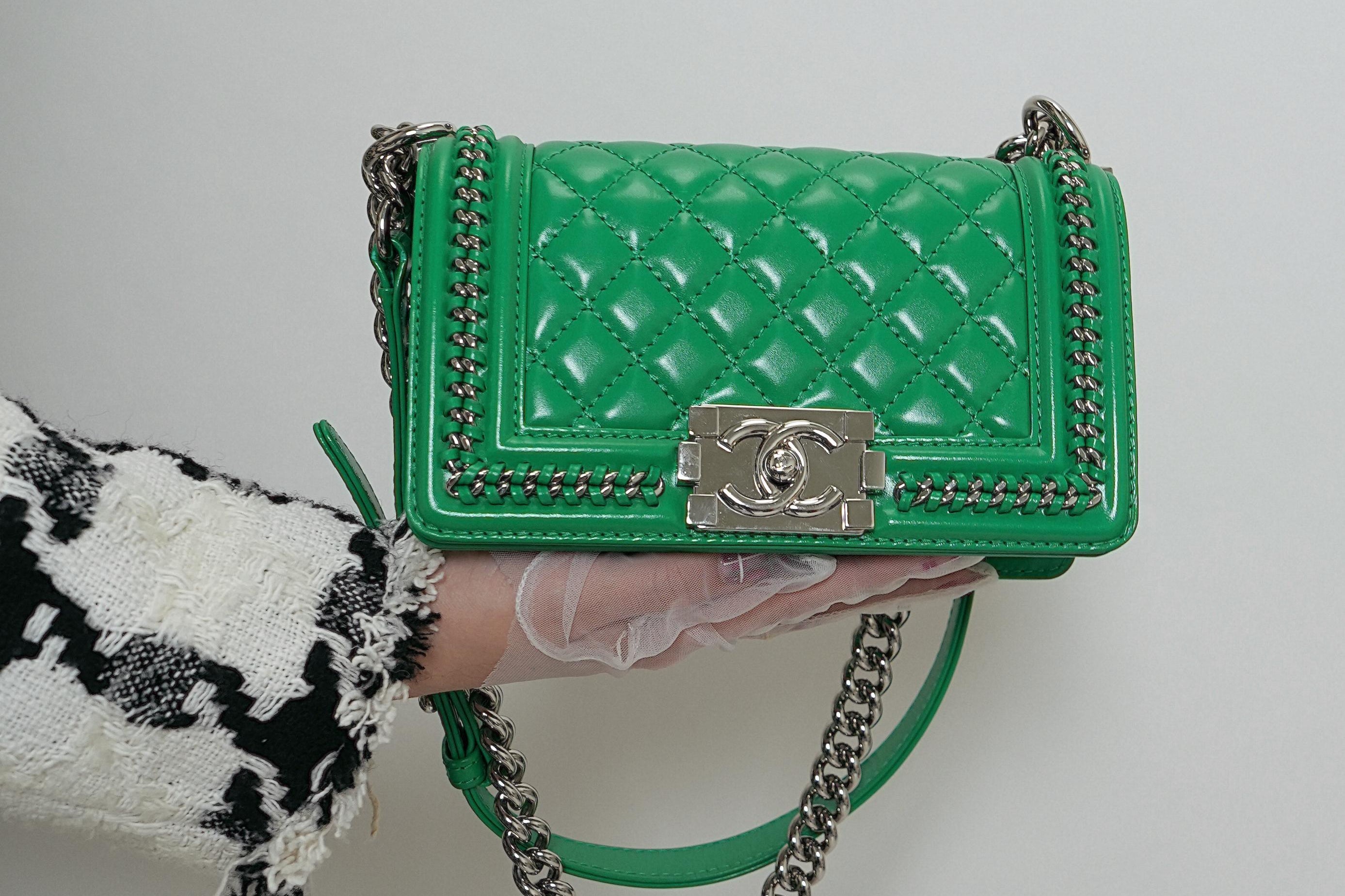 Green Calfskin Quilted Chain Around Boy Bag Small Silver Hardware