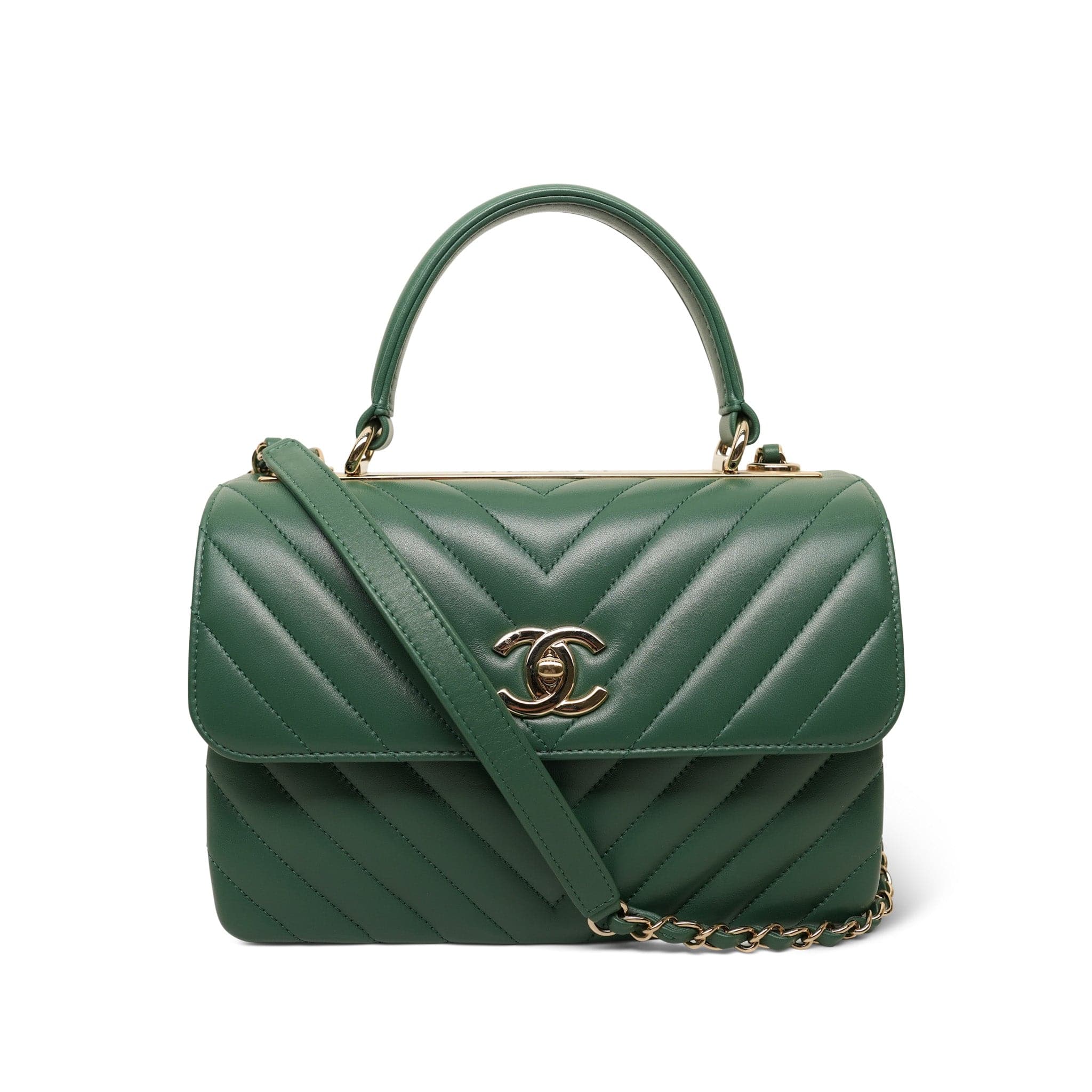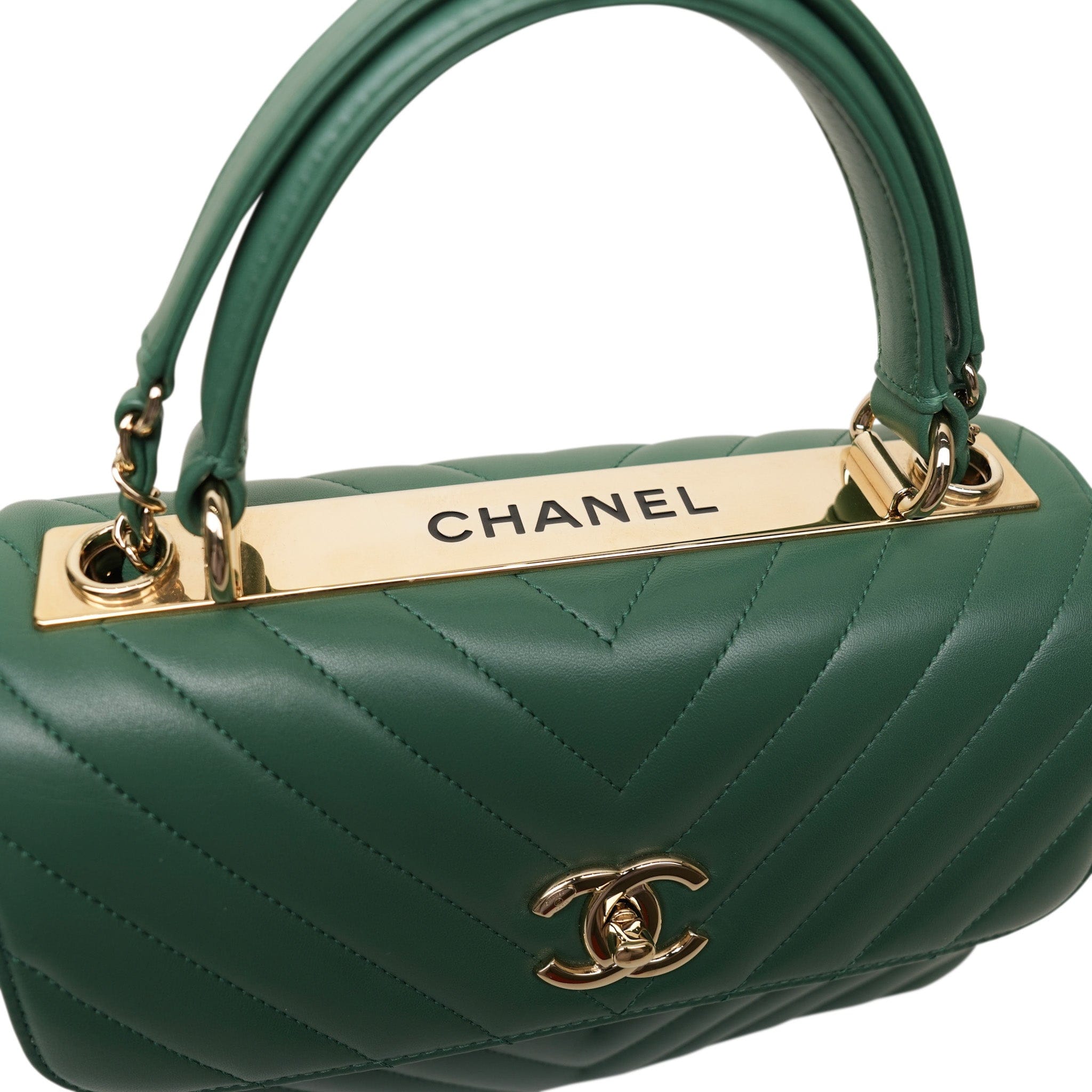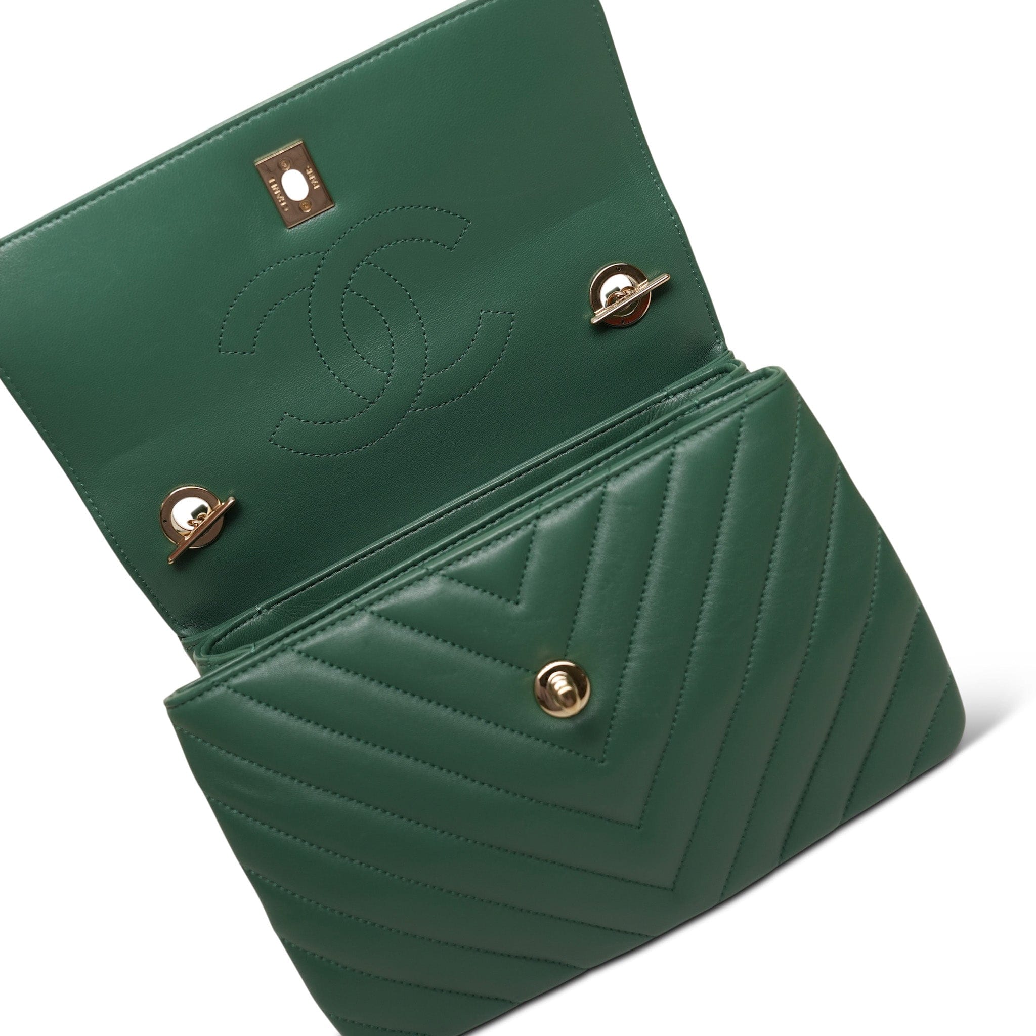 Green Lambskin Chevron Quilted Trendy CC Small Light Gold Hardware