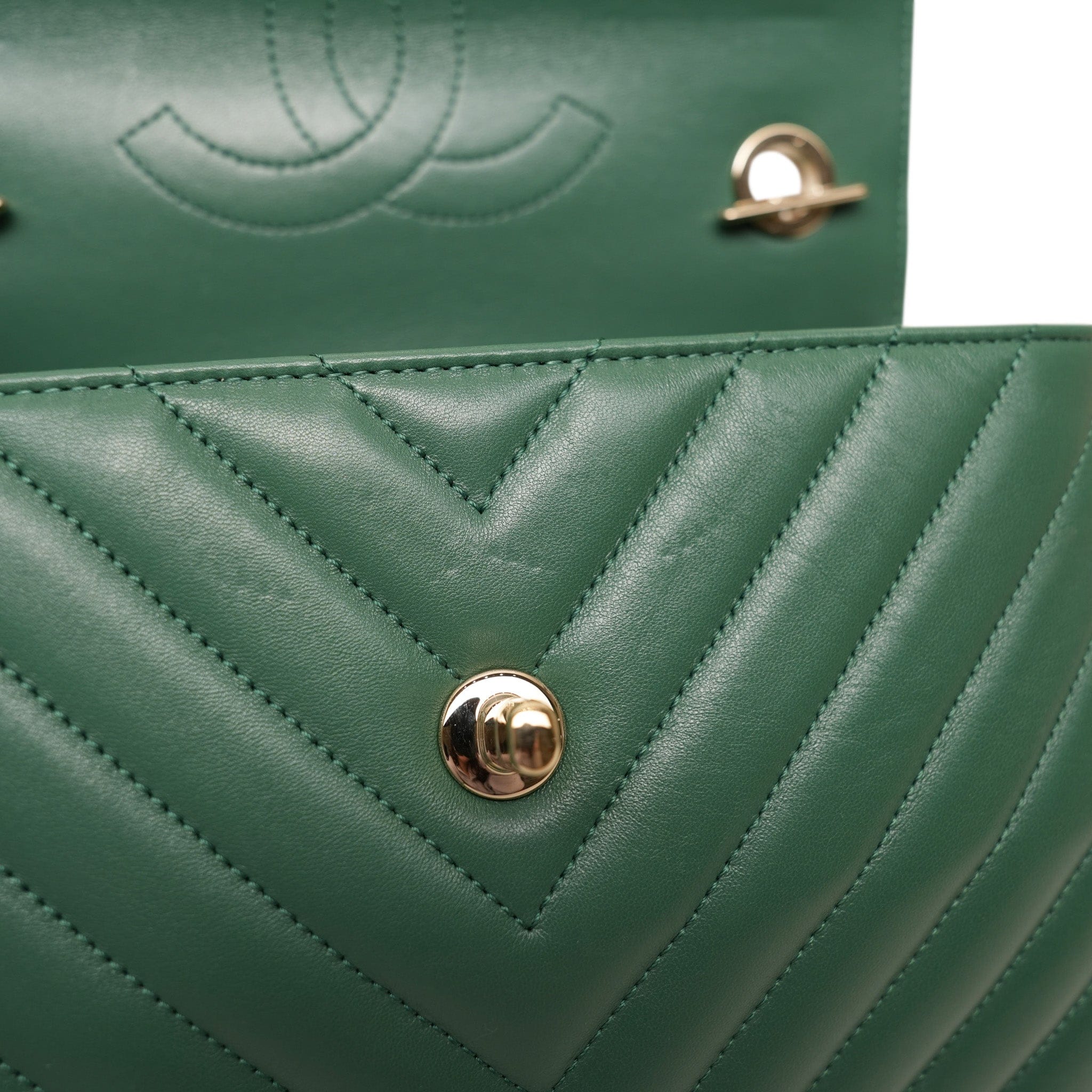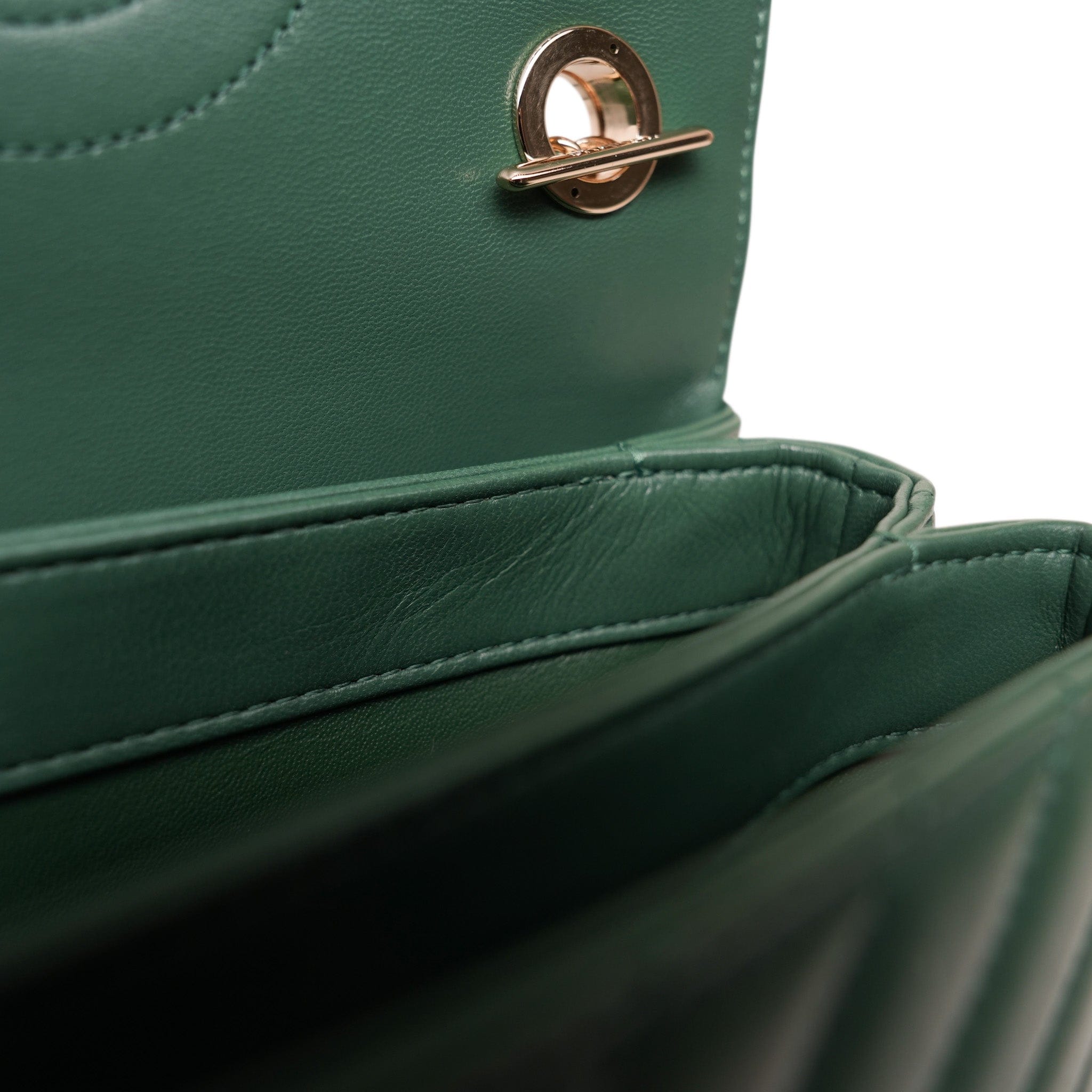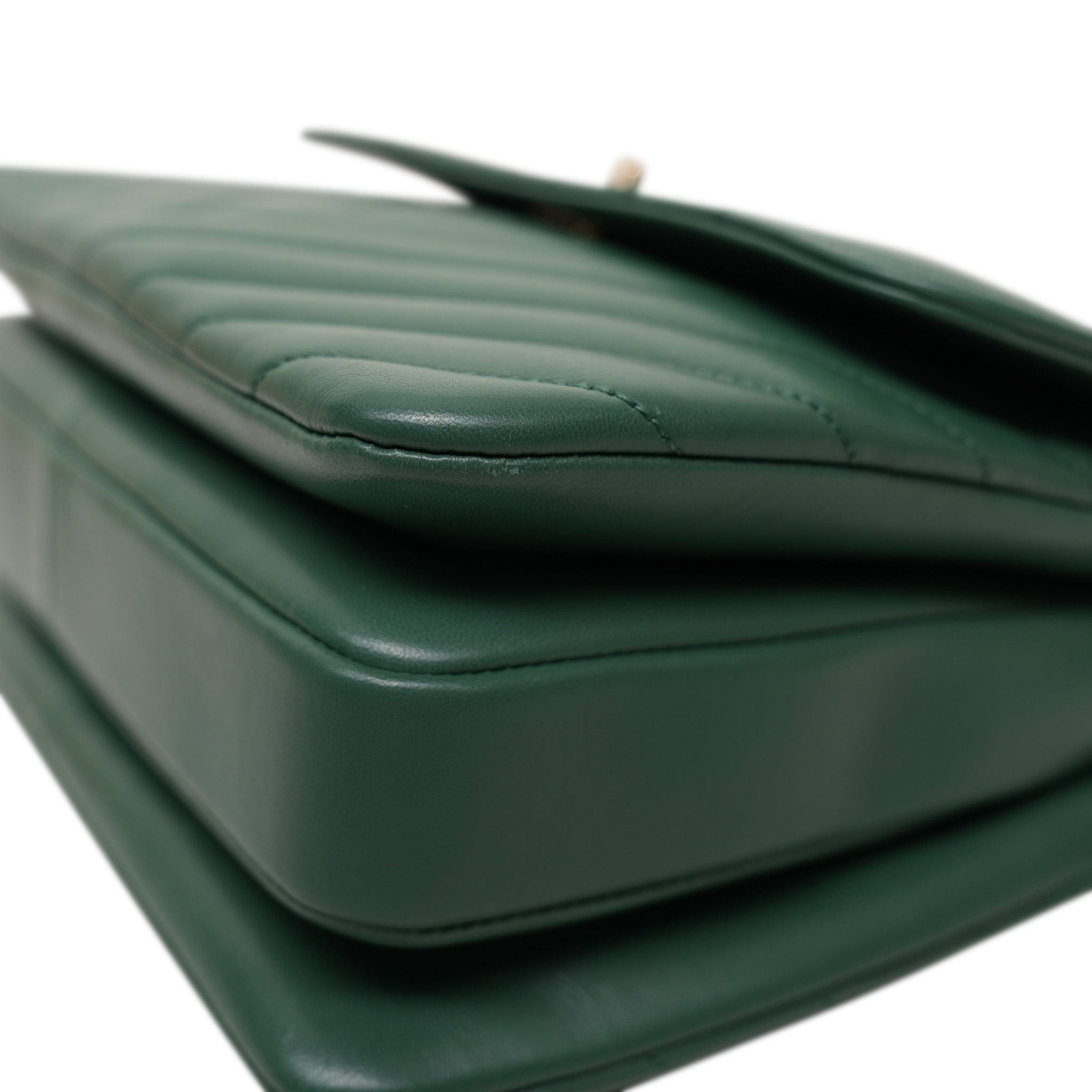 Green Lambskin Chevron Quilted Trendy CC Small Light Gold Hardware