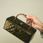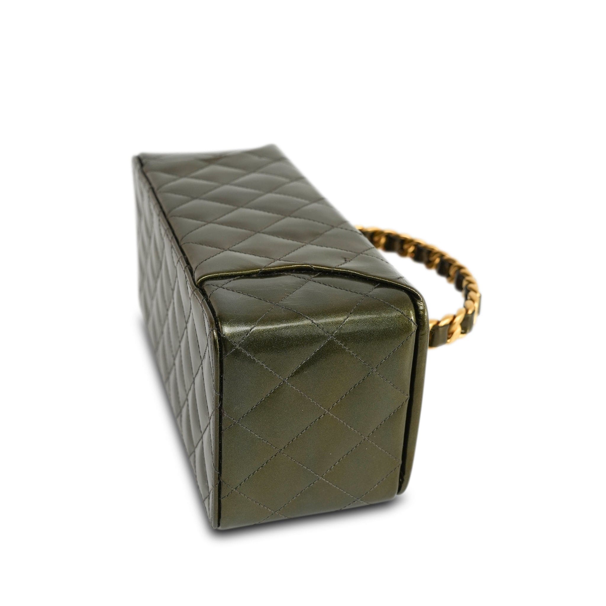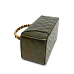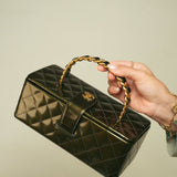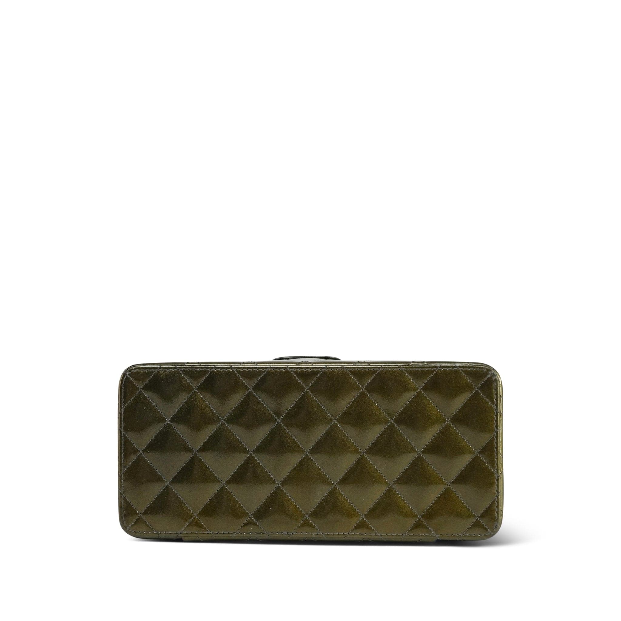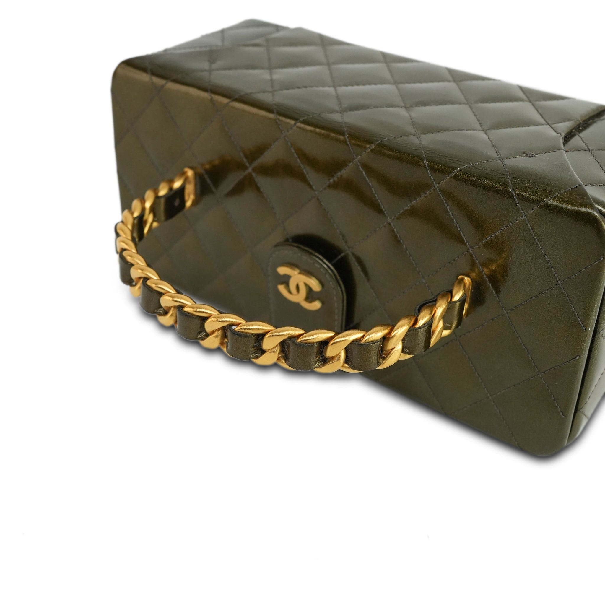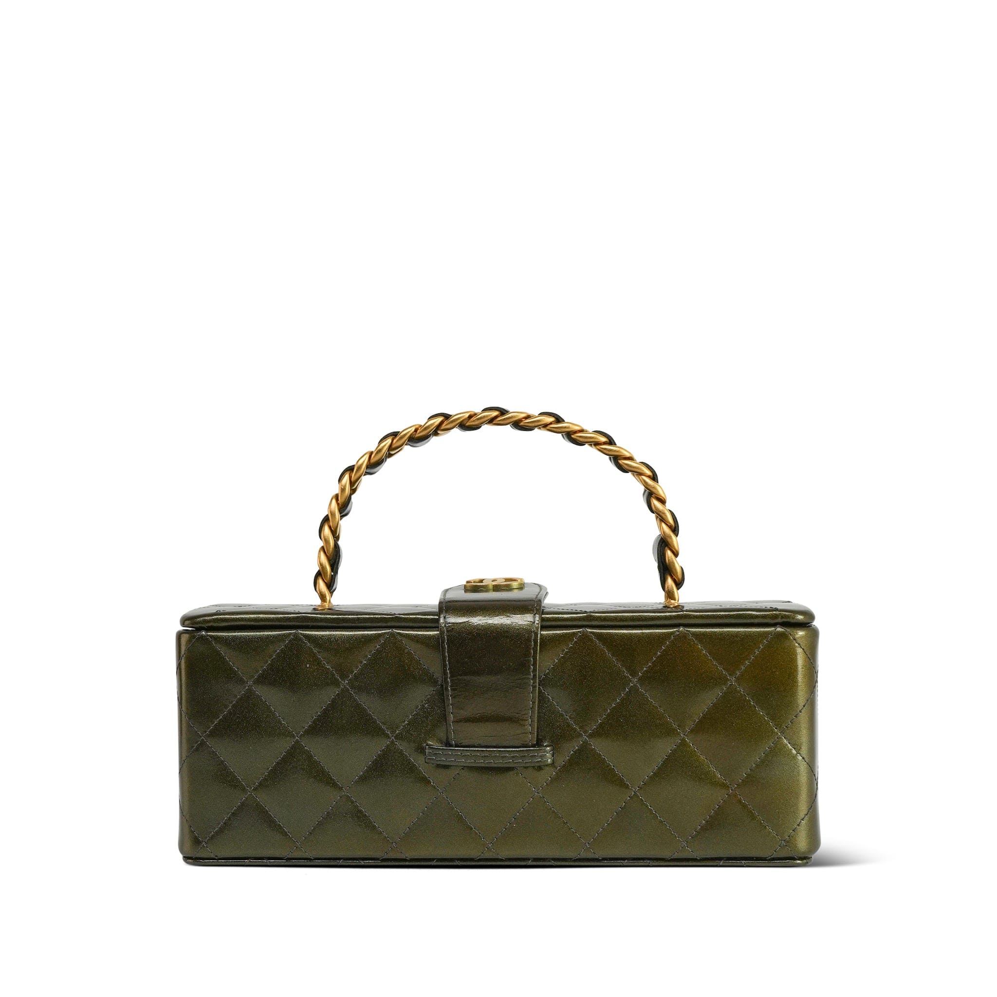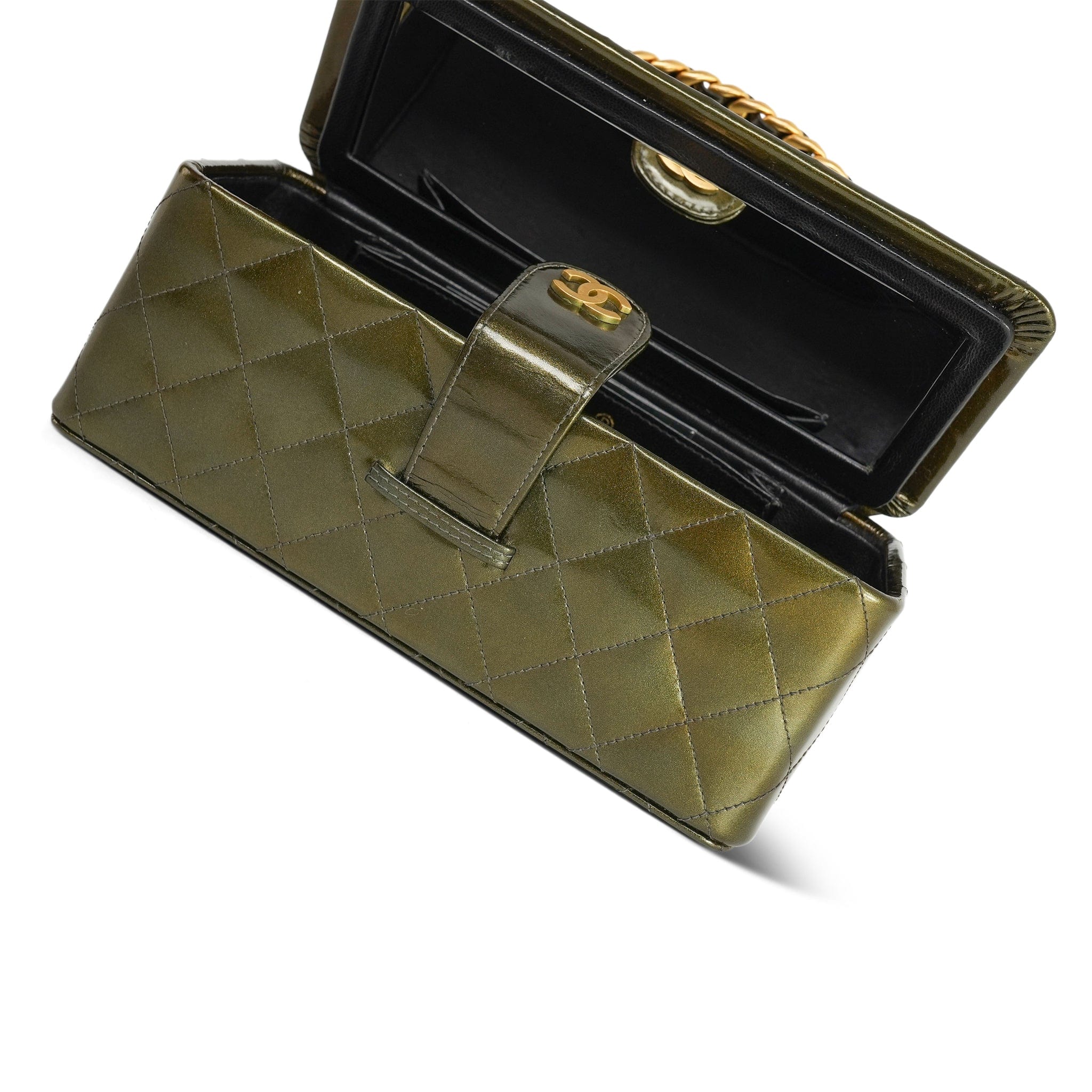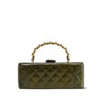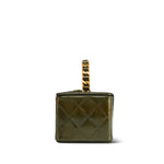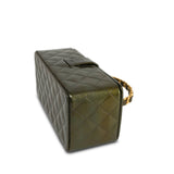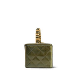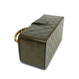 Green Patent Quilted Vanity Box Top Handle Aged Gold Hardware