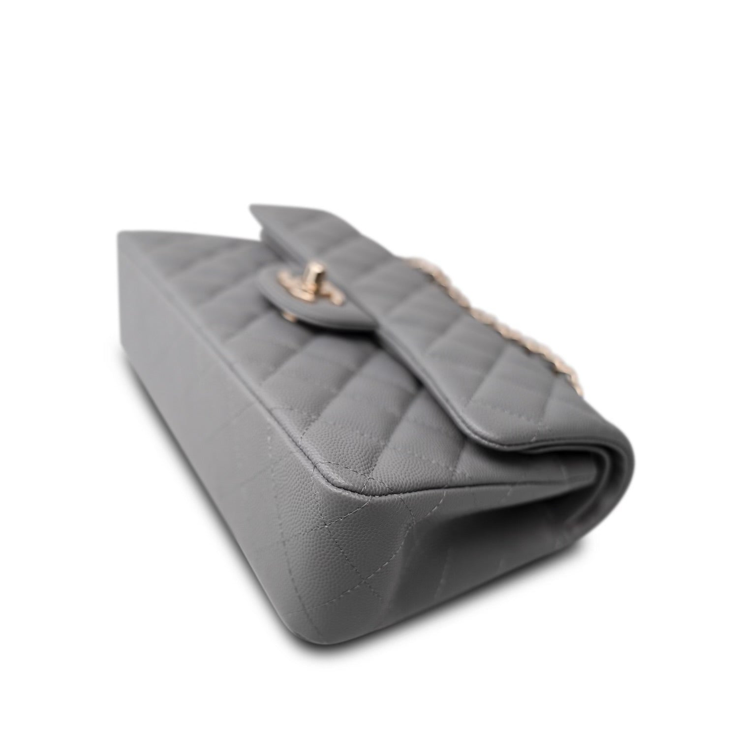 20c Grey Caviar Quilted Classic Flap Small Light Gold Hardware