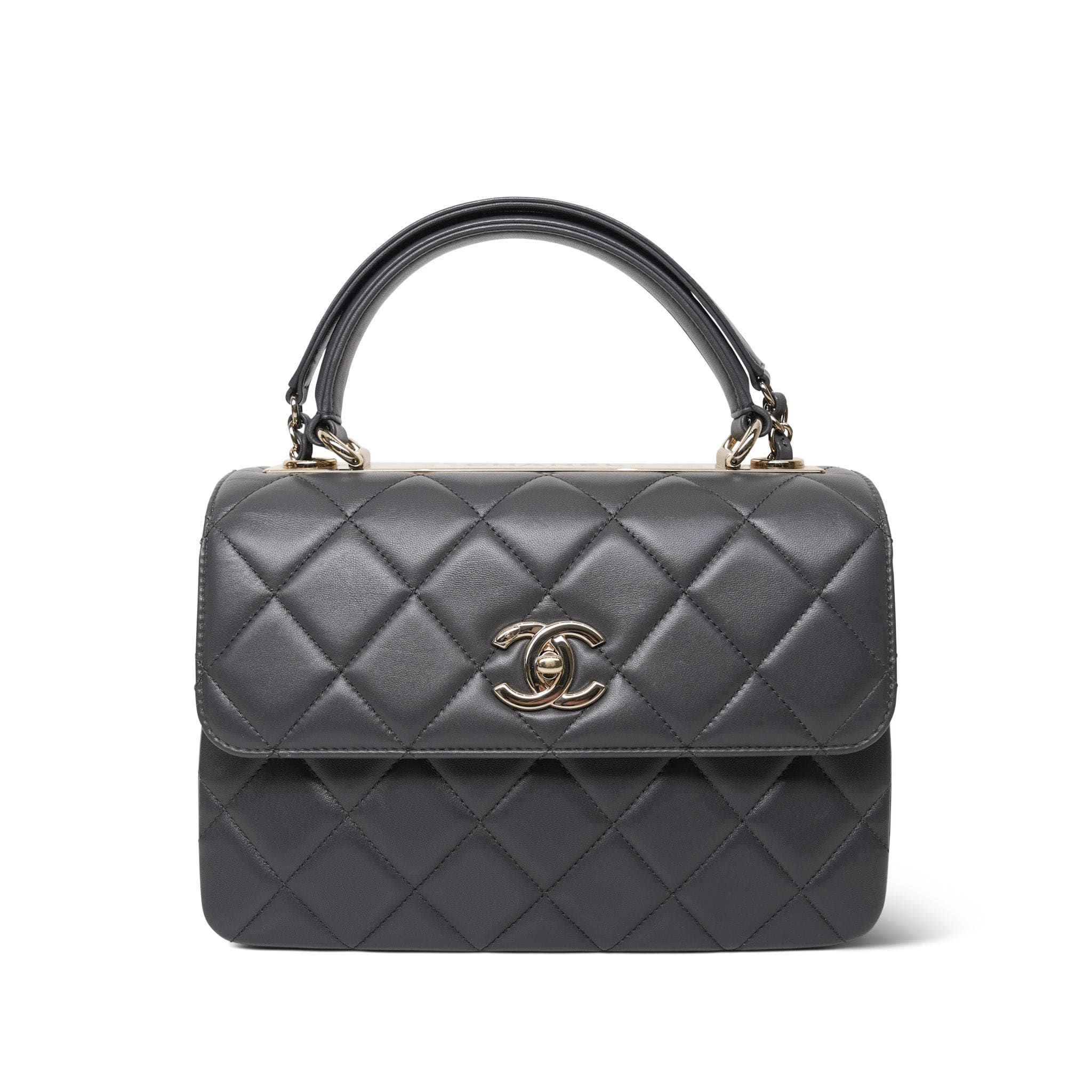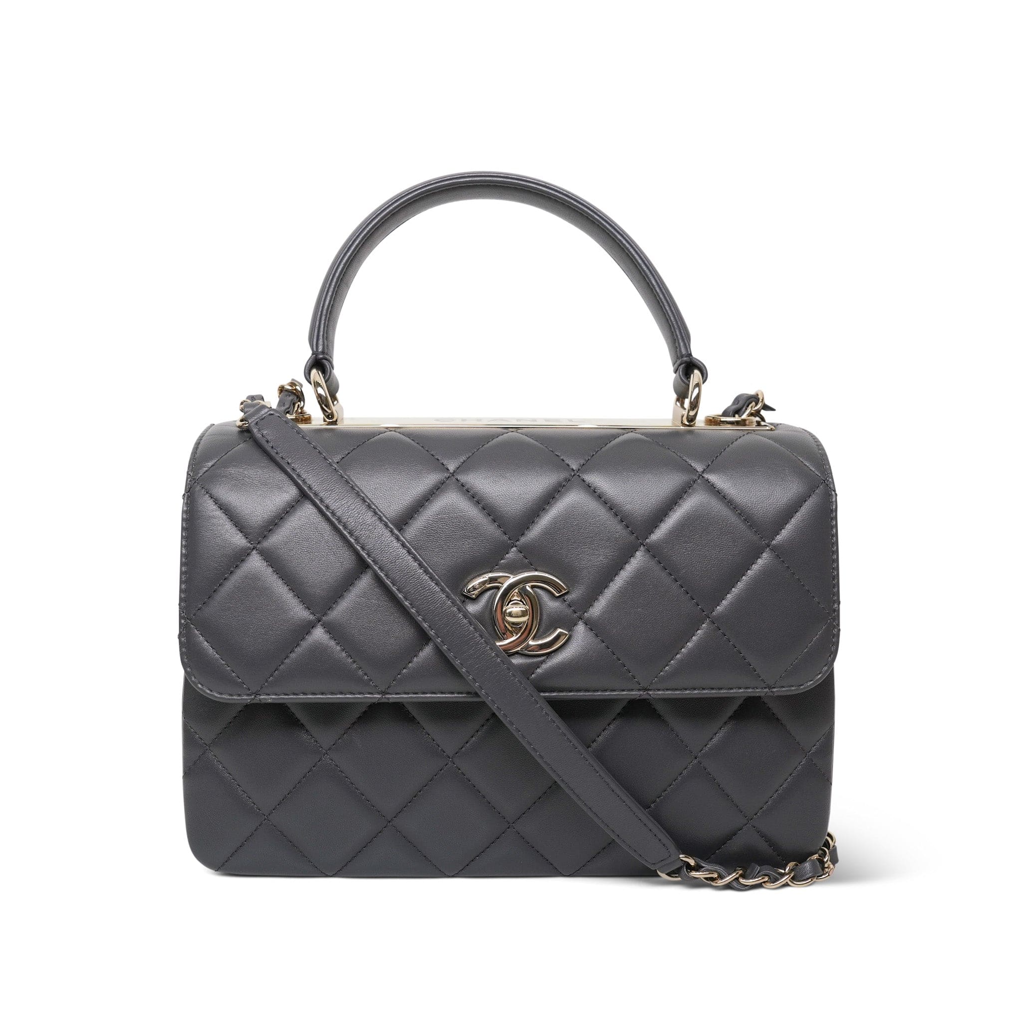 Grey Lambskin Quilted Trendy CC Small Light Gold Hardware