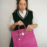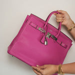 HAC 32 Fuchsia Chèvre de Coromandel Palladium Plated J Square Stamp