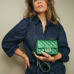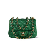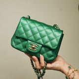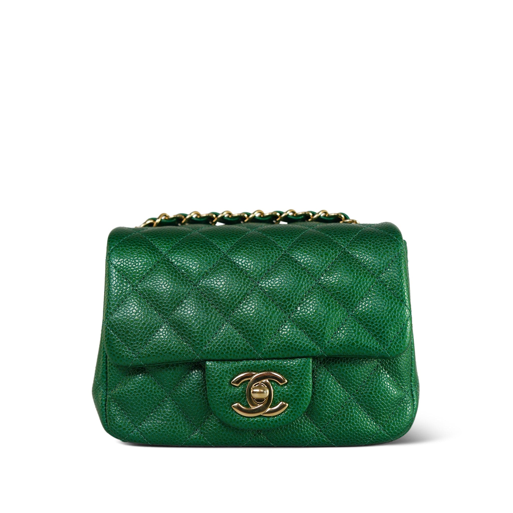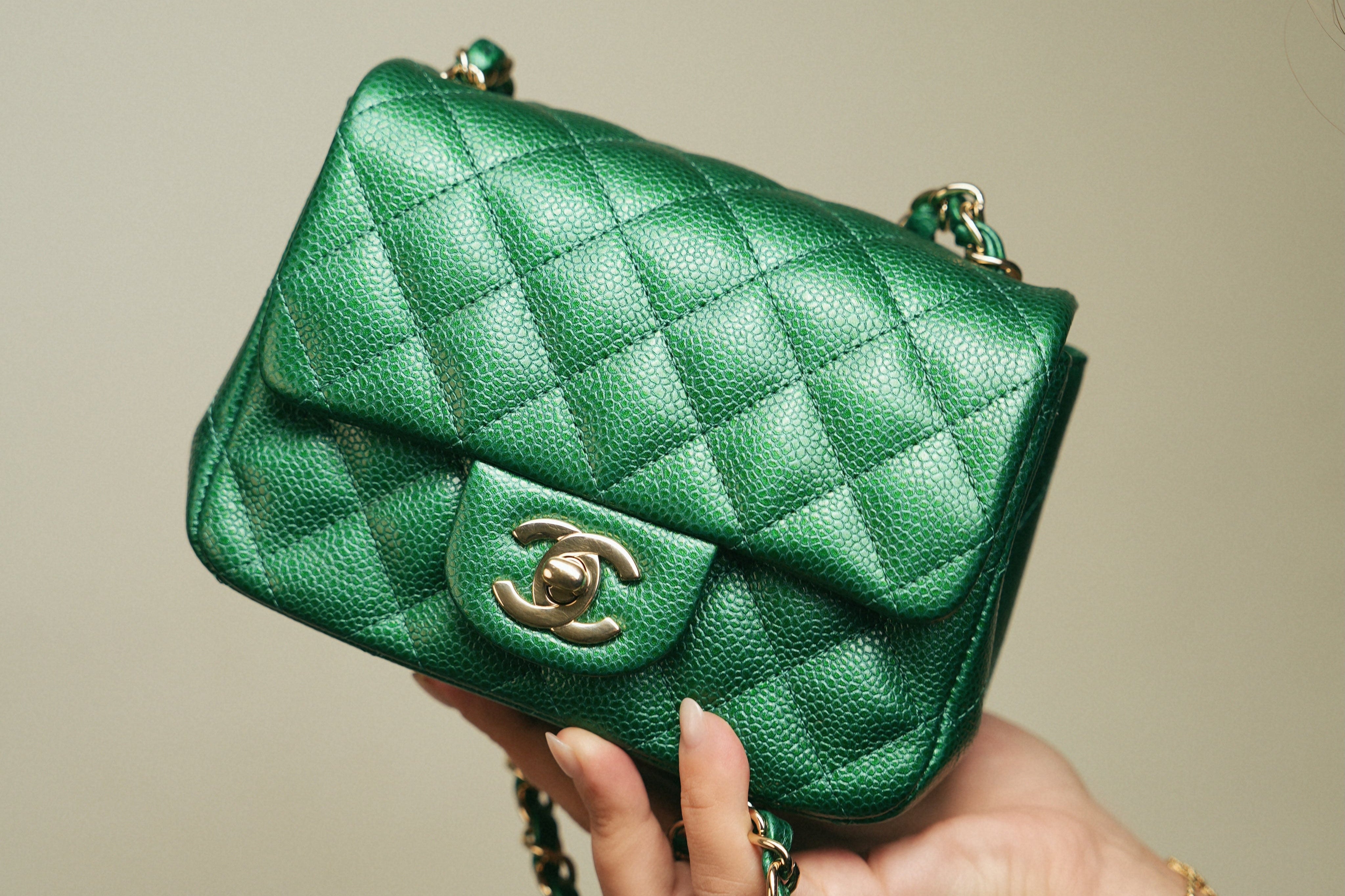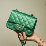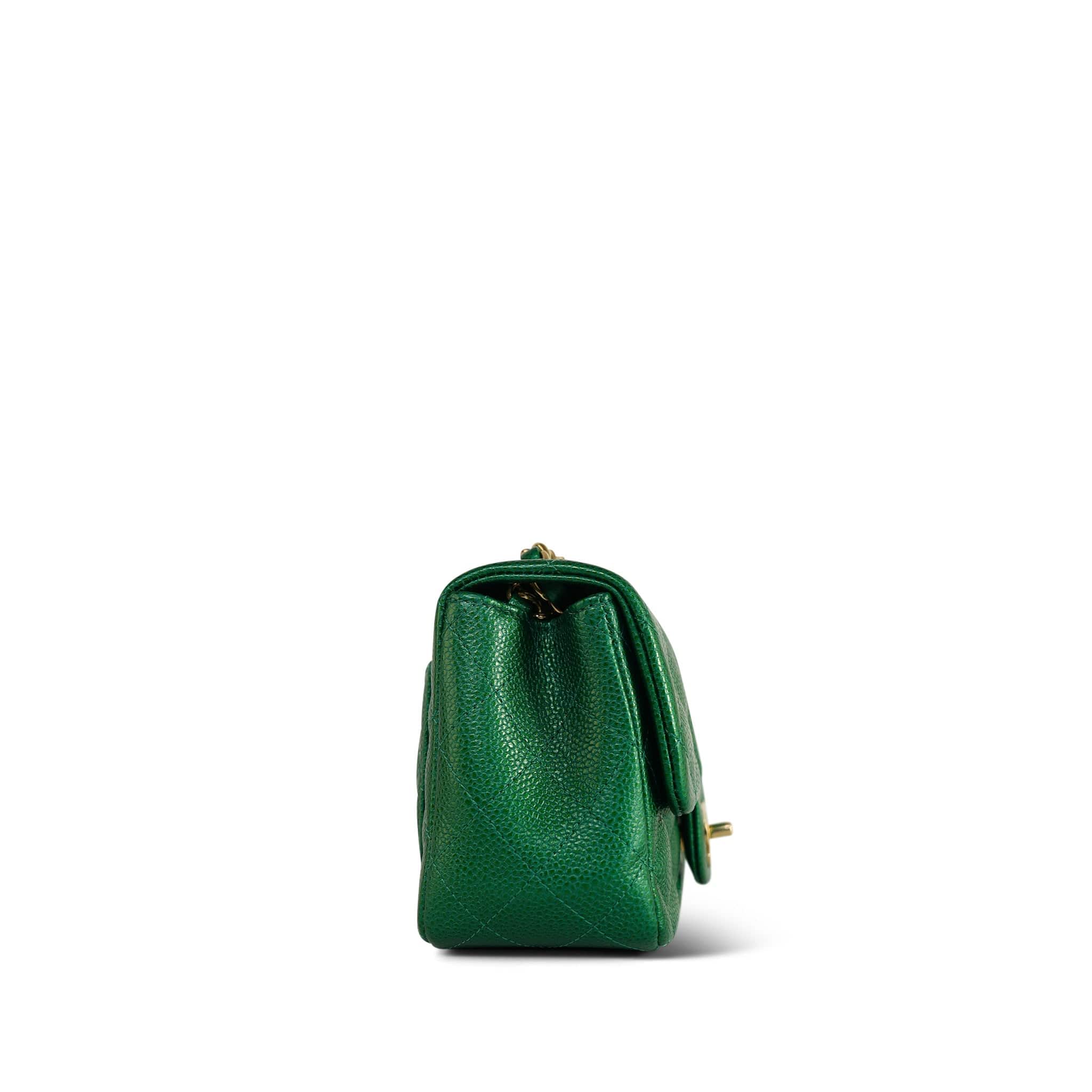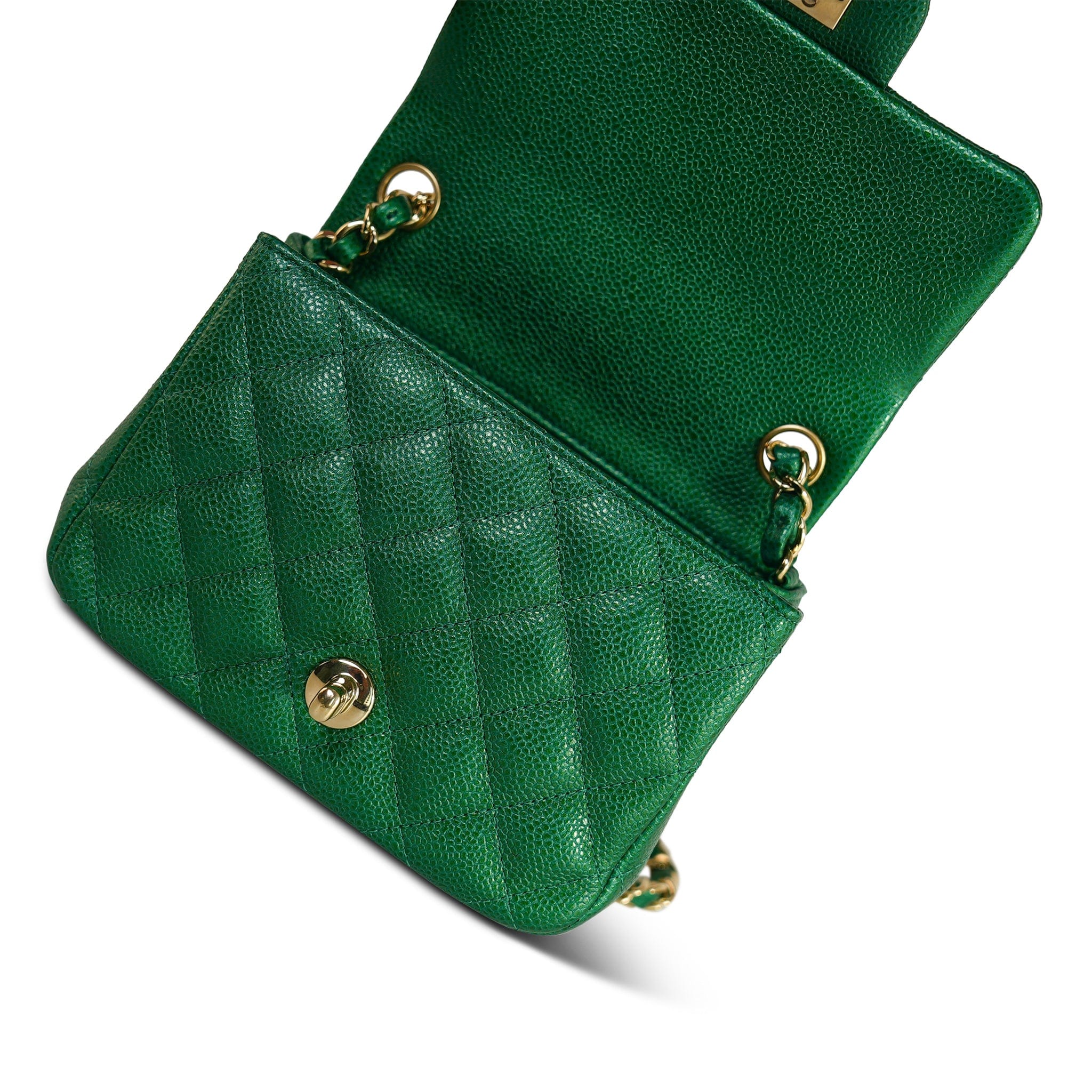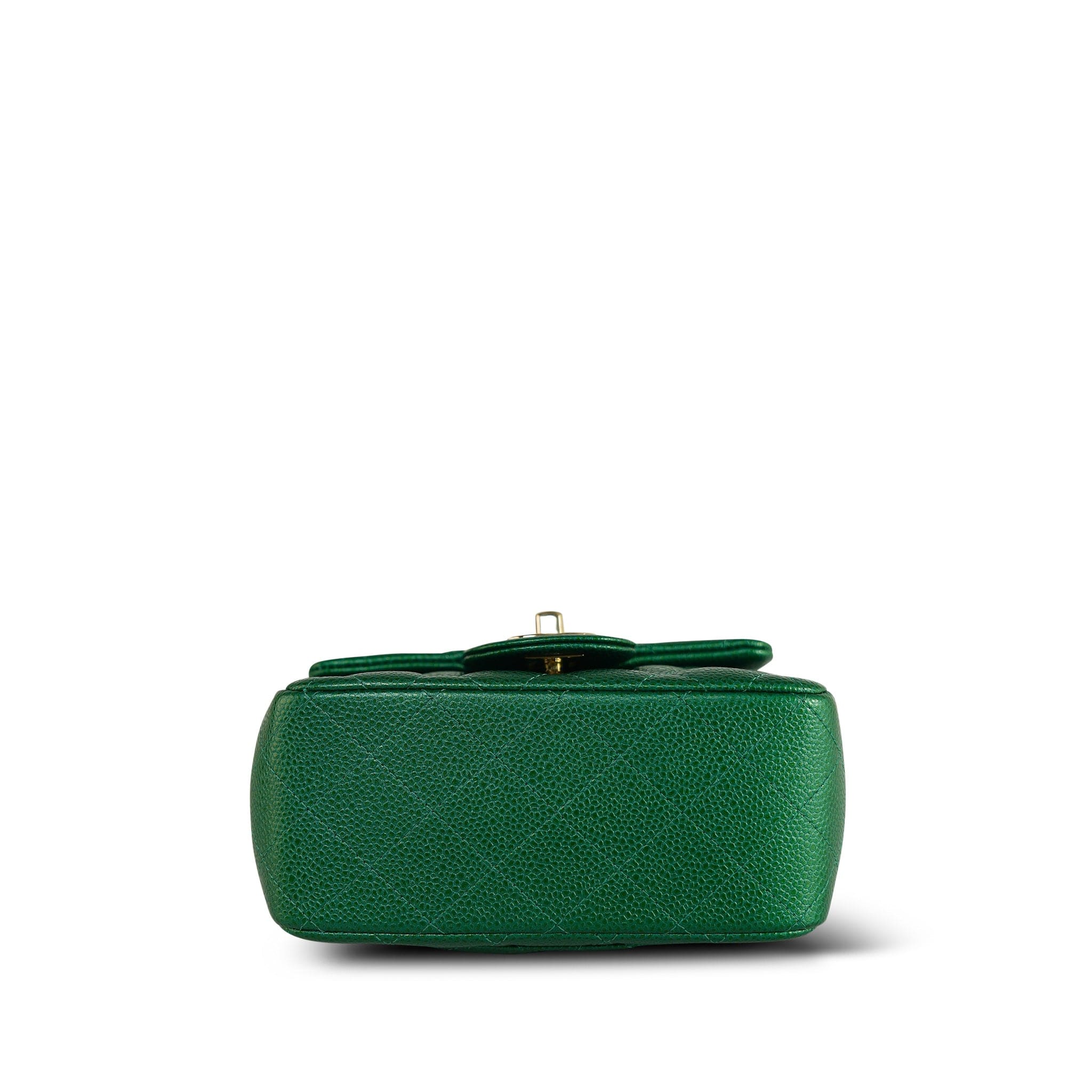 18S Iridescent Green Caviar Quilted Mini Square Flap Light Gold Hardware