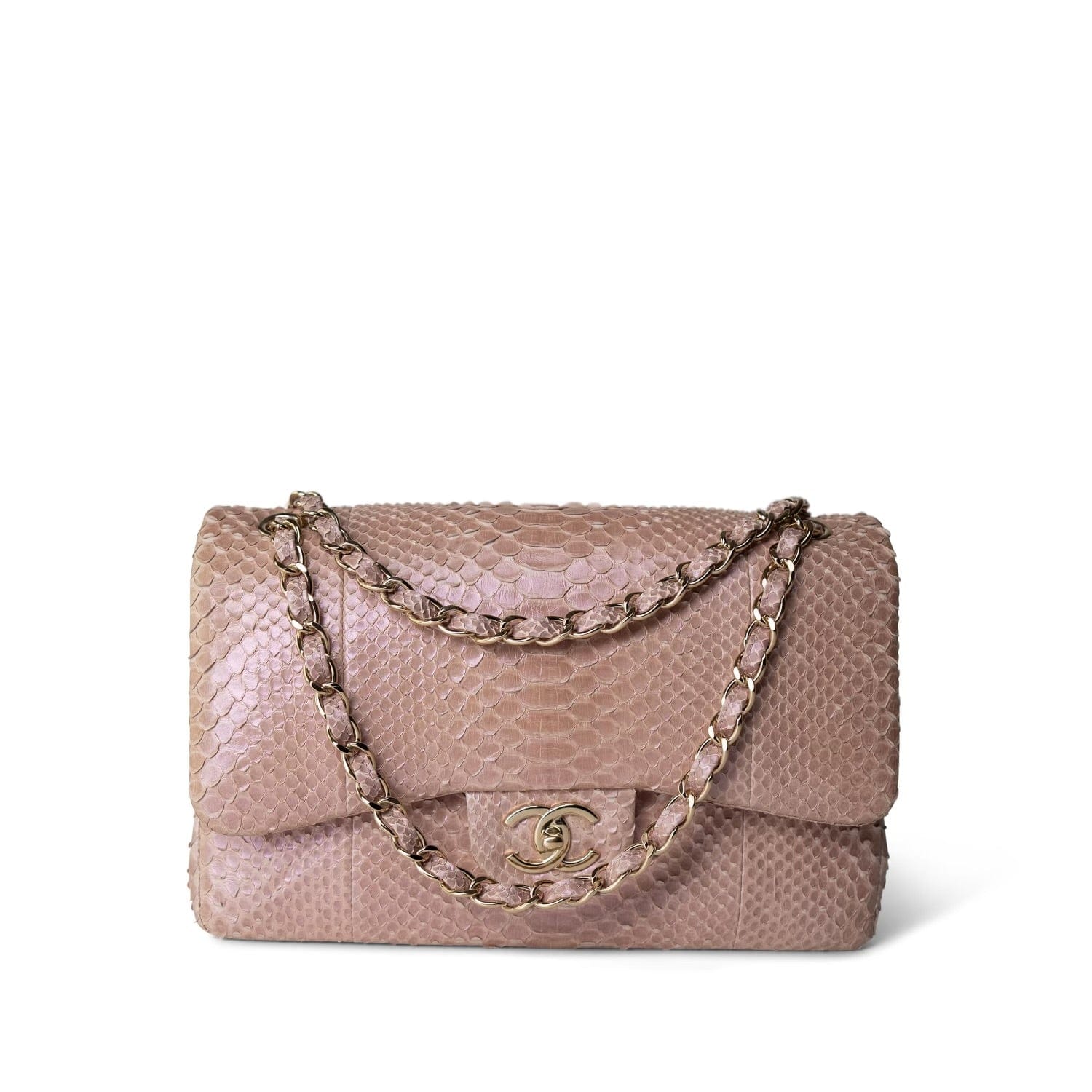 Iridescent Light Pink Python Classic Flap Jumbo LGHW