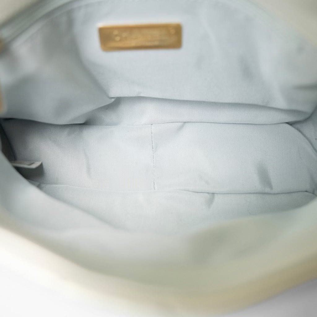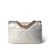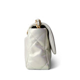 21P Iridescent White Lambskin Quilted 19 Flap Small Mixed Hardware