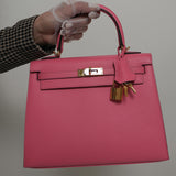 Kelly 25 Rose Azalée Veau Epsom Gold Plated C Stamp