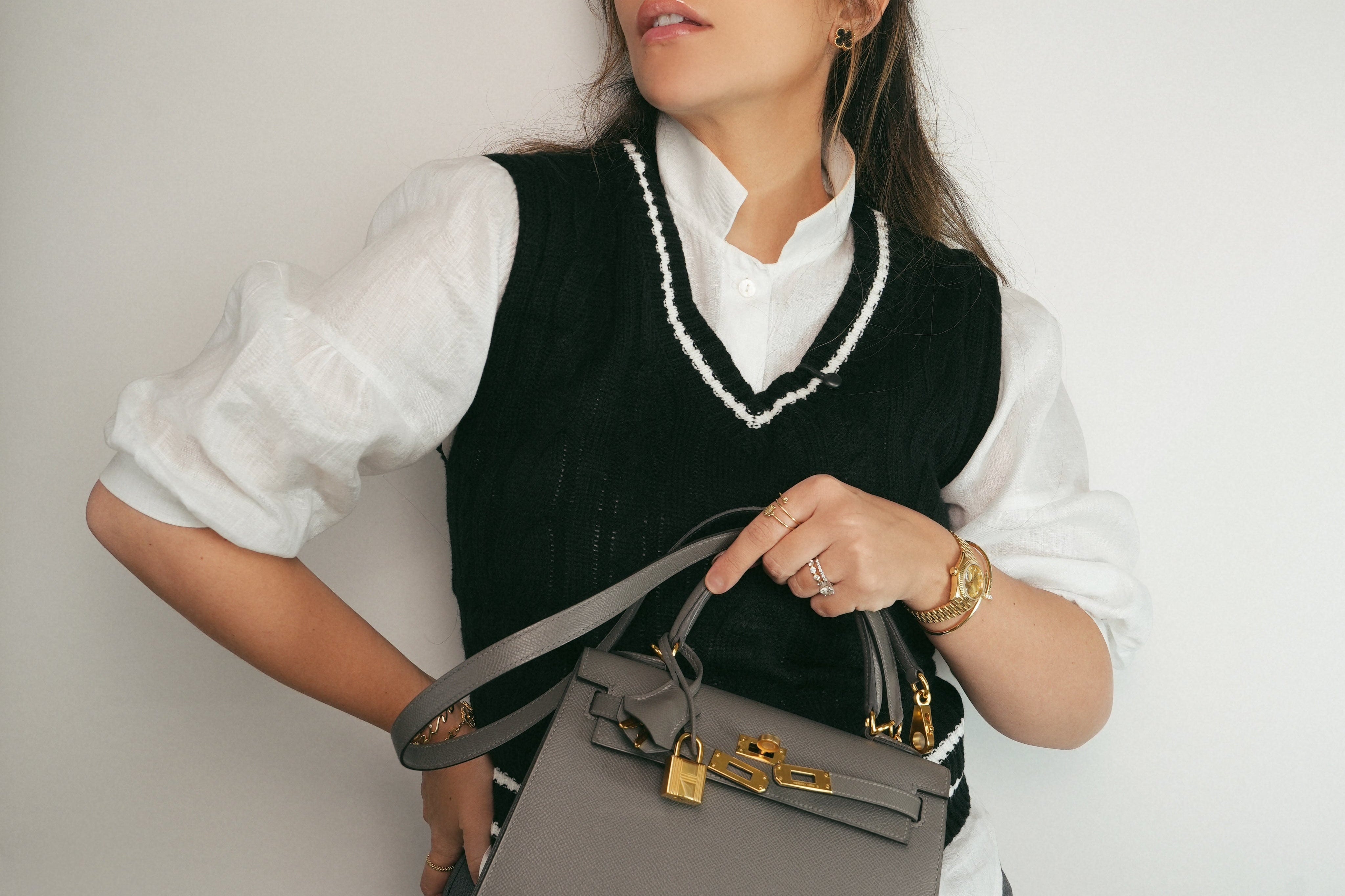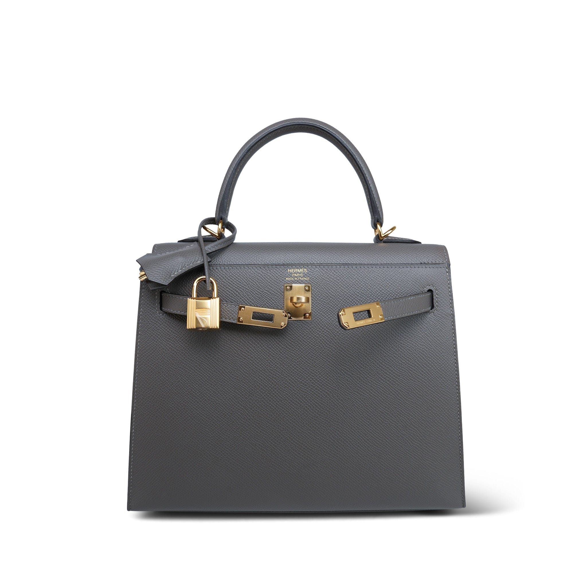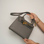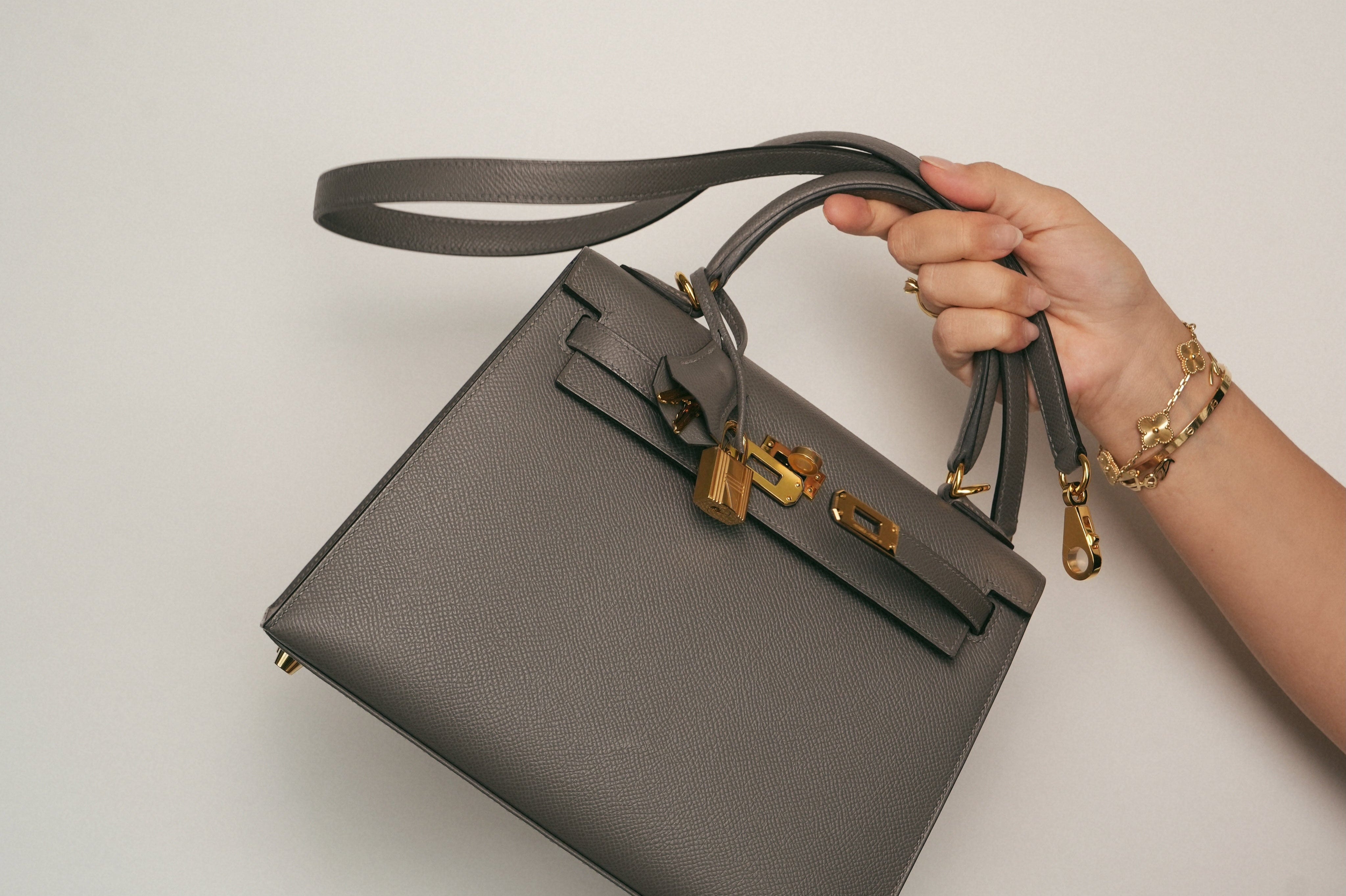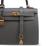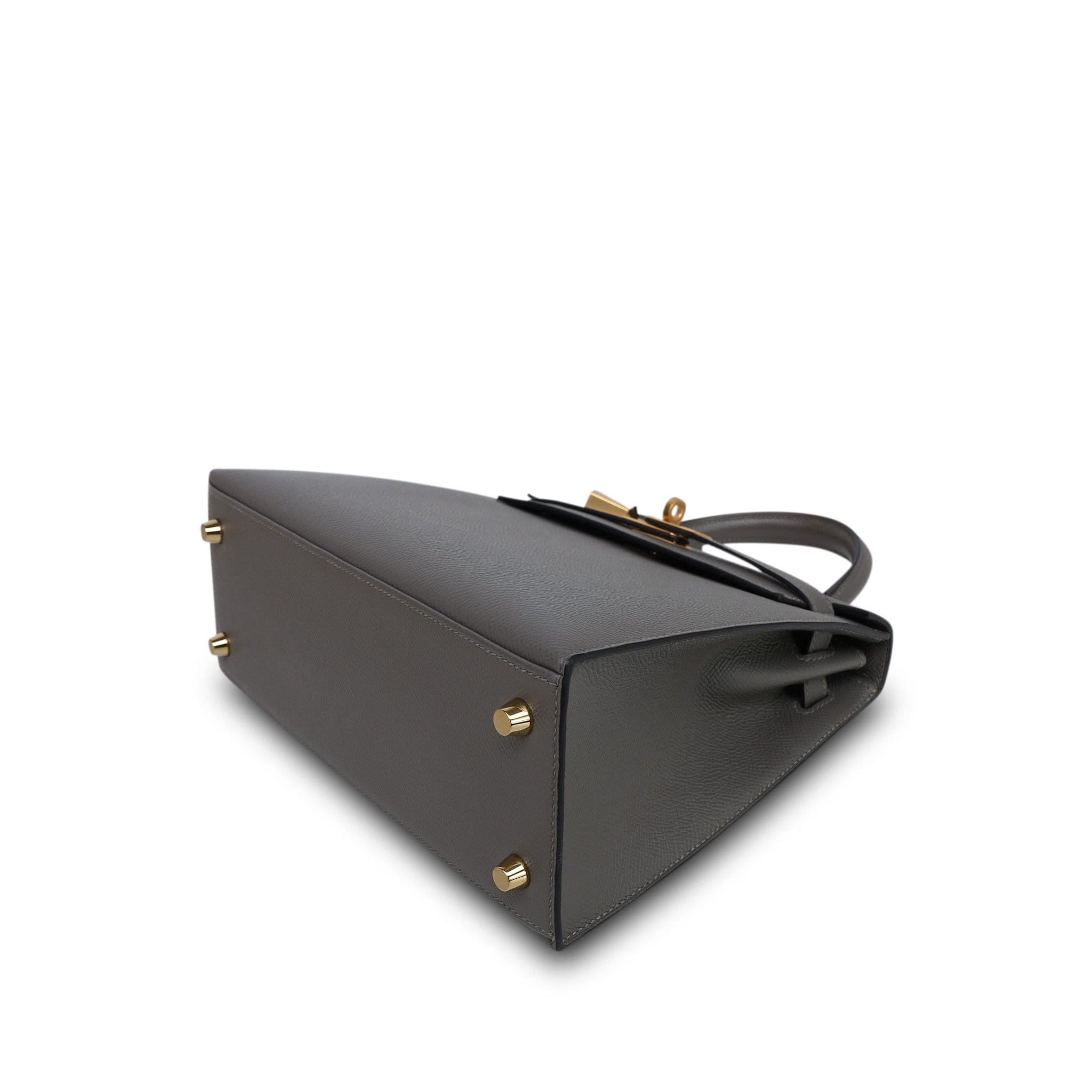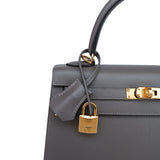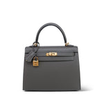 Kelly 25 Sellier Gris Meyer Veau Epsom Gold Plated U Stamp