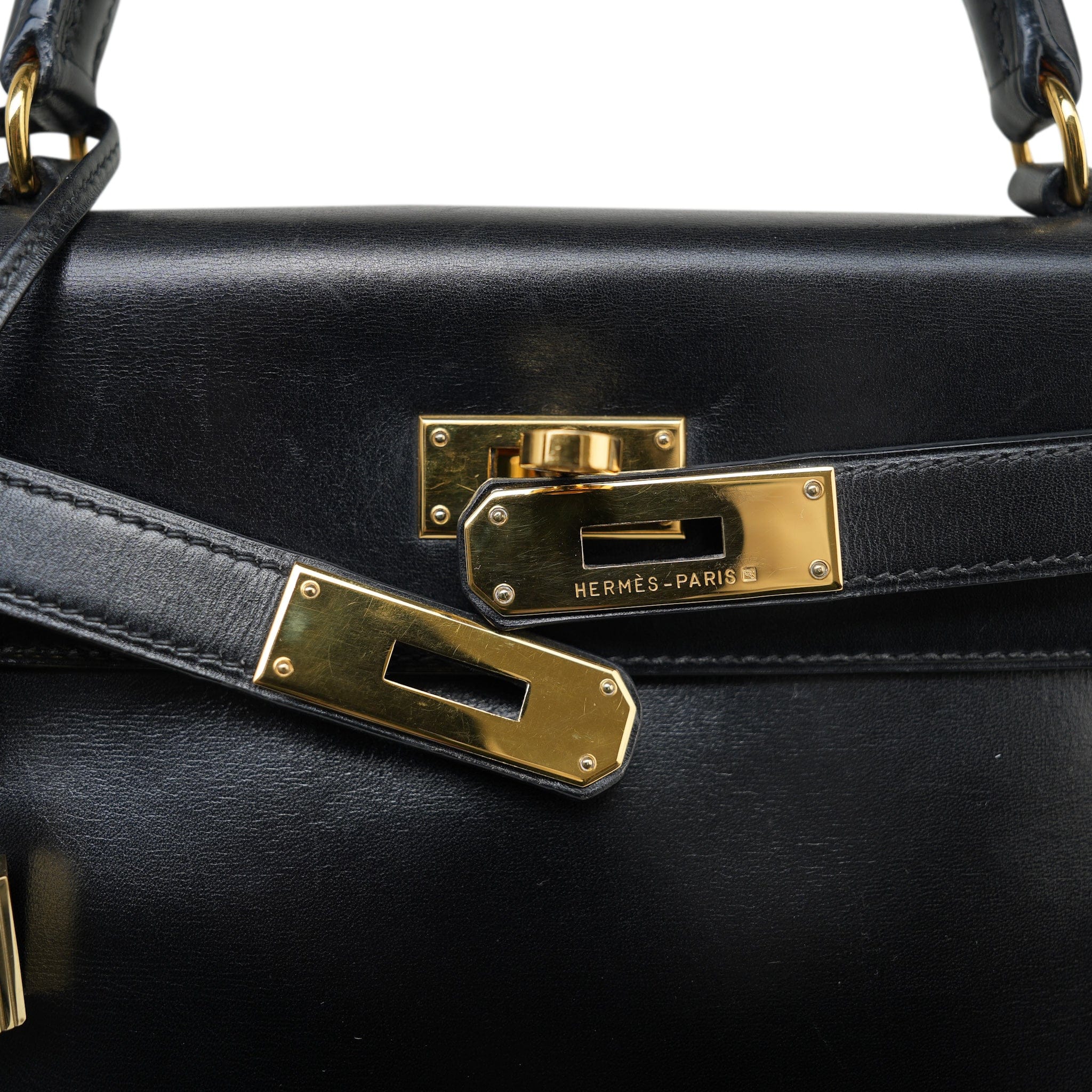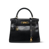 Kelly 28 Retourne Black Box Calfksin Gold Plated A Square Stamp
