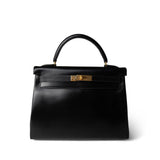 Kelly 32 Black Box Calfskin Gold Plated A Square Stamp