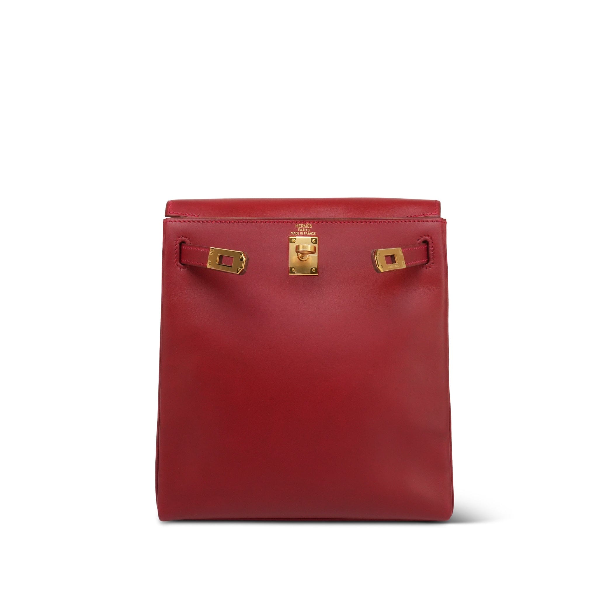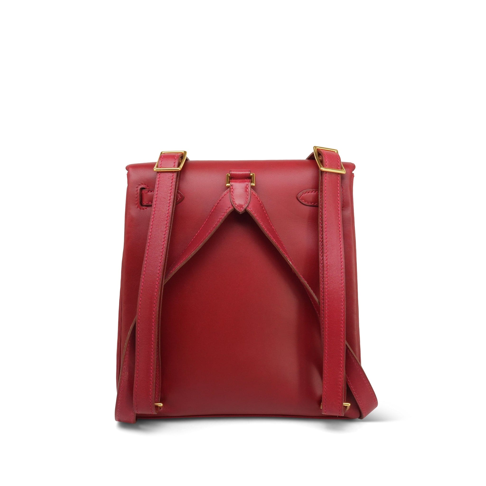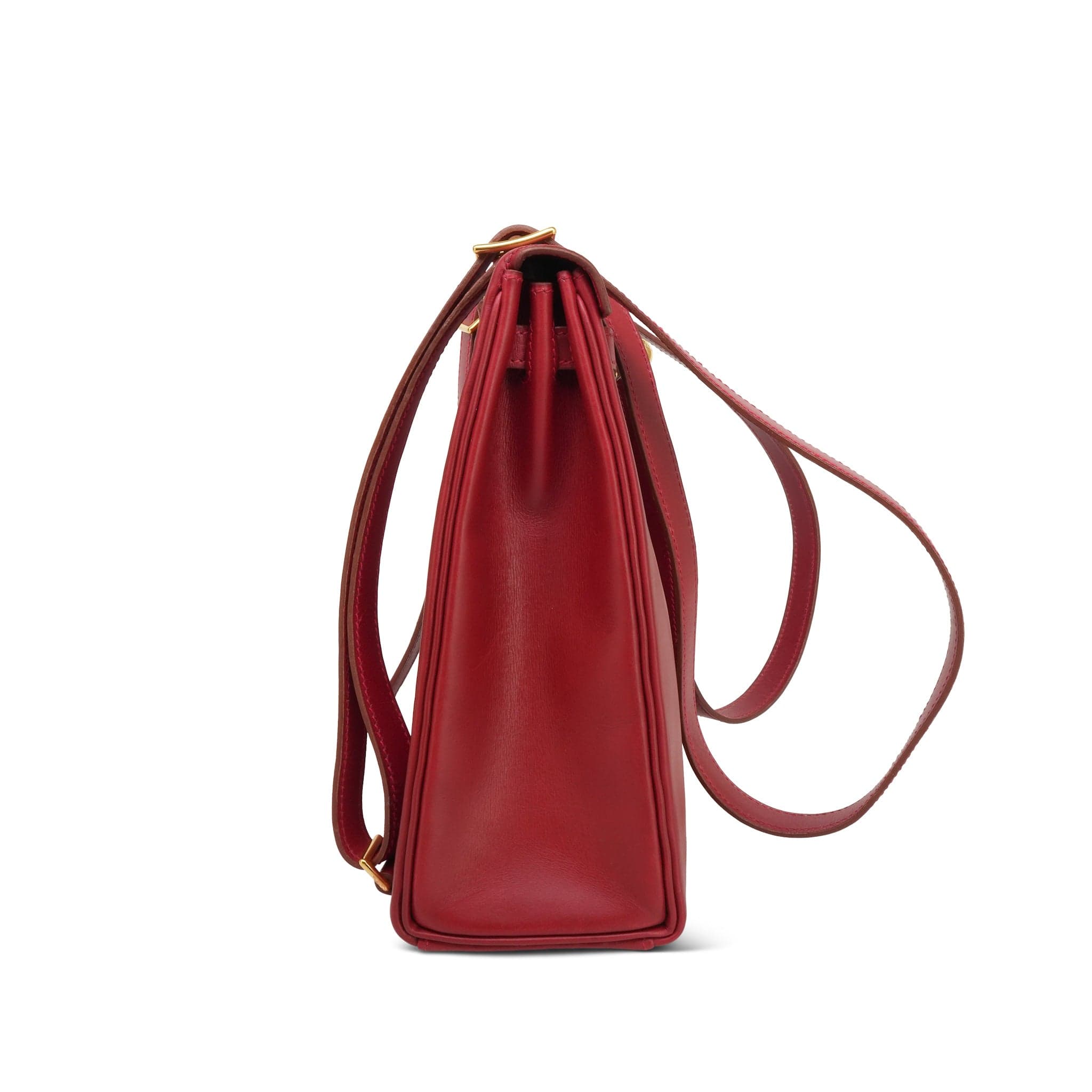 Kelly Ado PM Backpack Rouge Vif Box Calfskin Gold Plated C Square Stamp