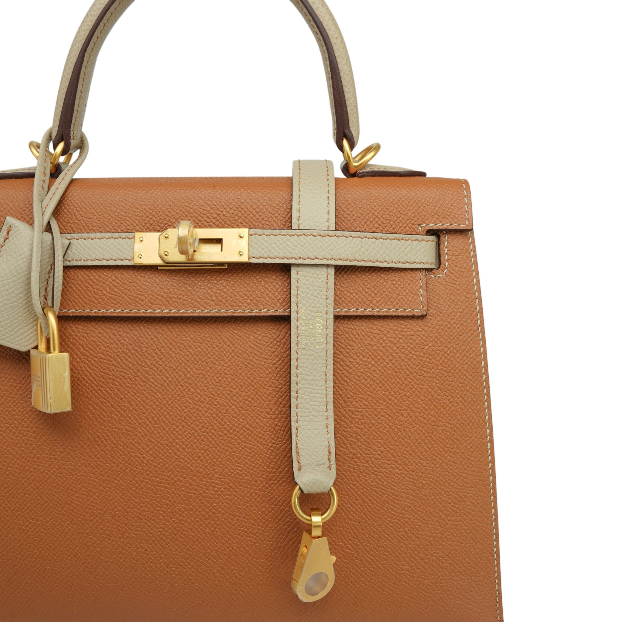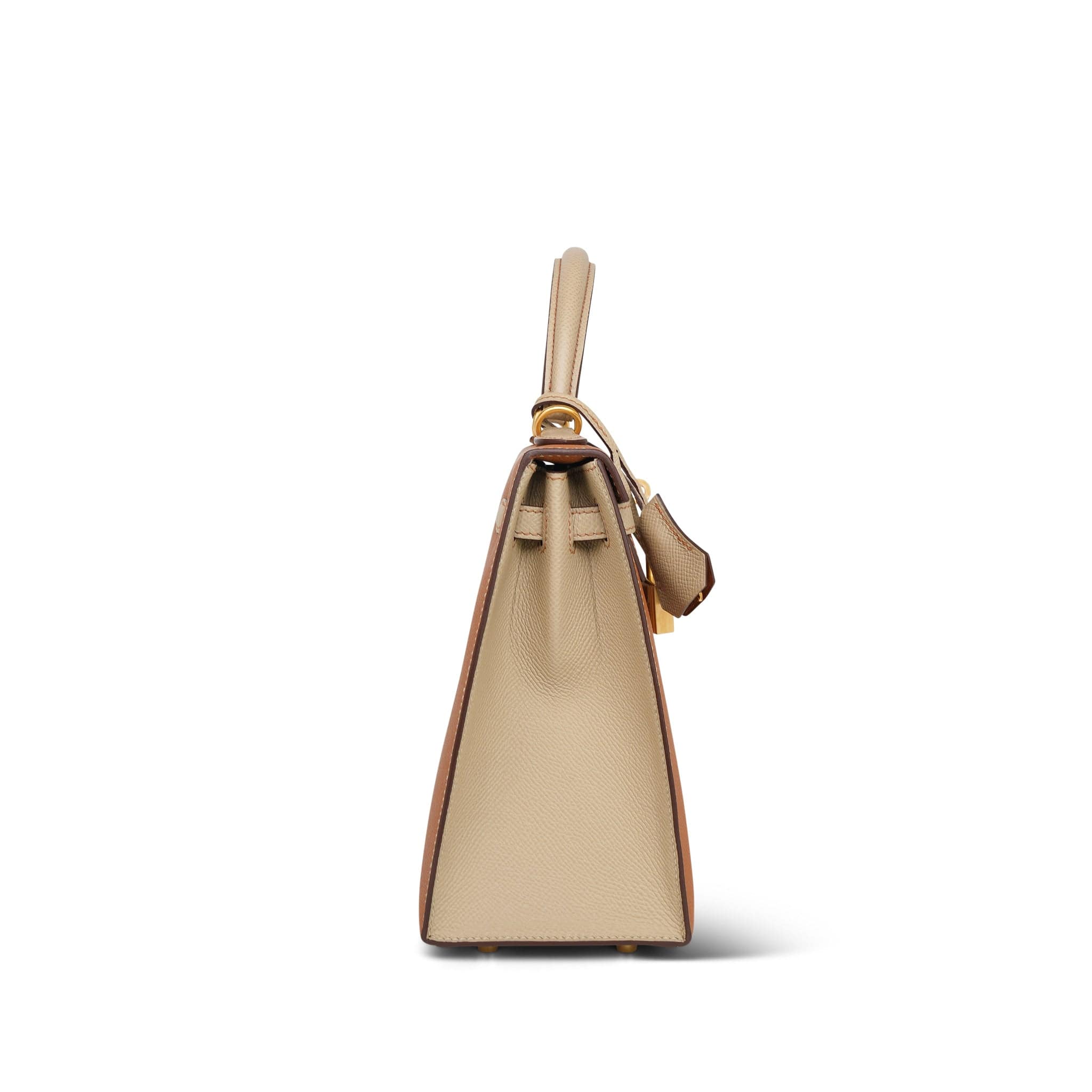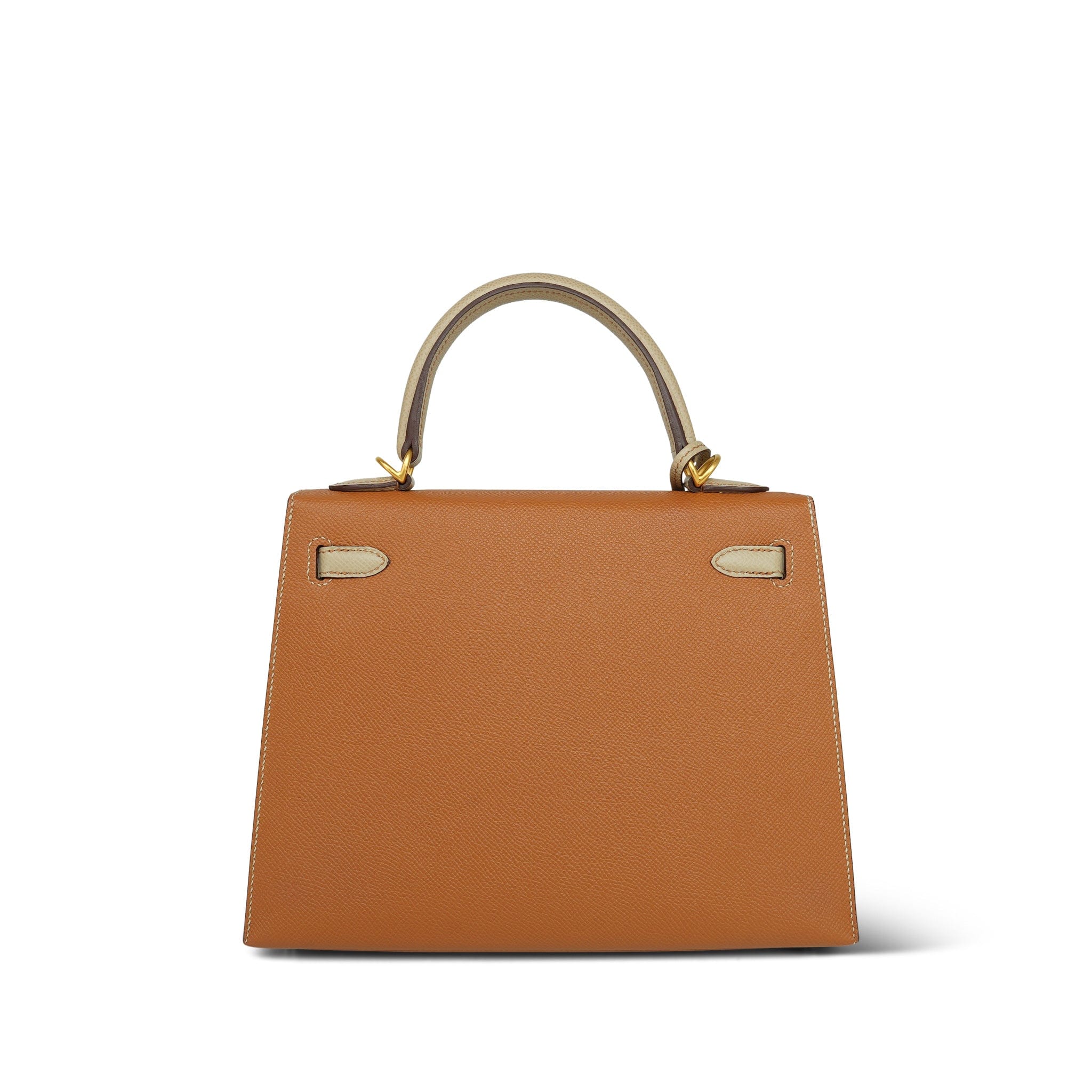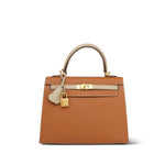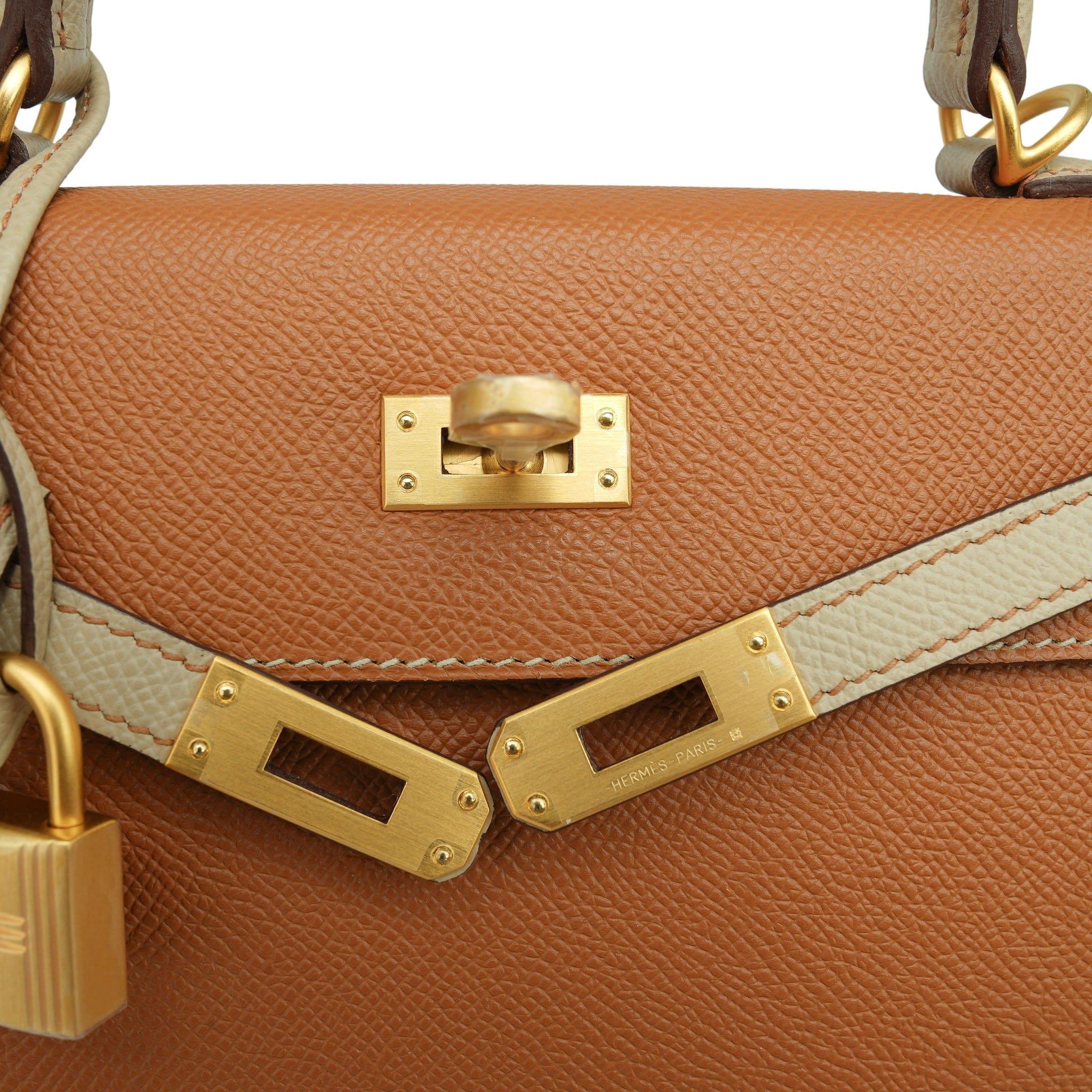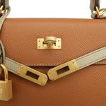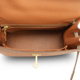 Kelly Sellier 25 Bi-Color Horseshoe (HSS) Gold/Trench Veau Epsom Brushed Gold Plated D Stamp