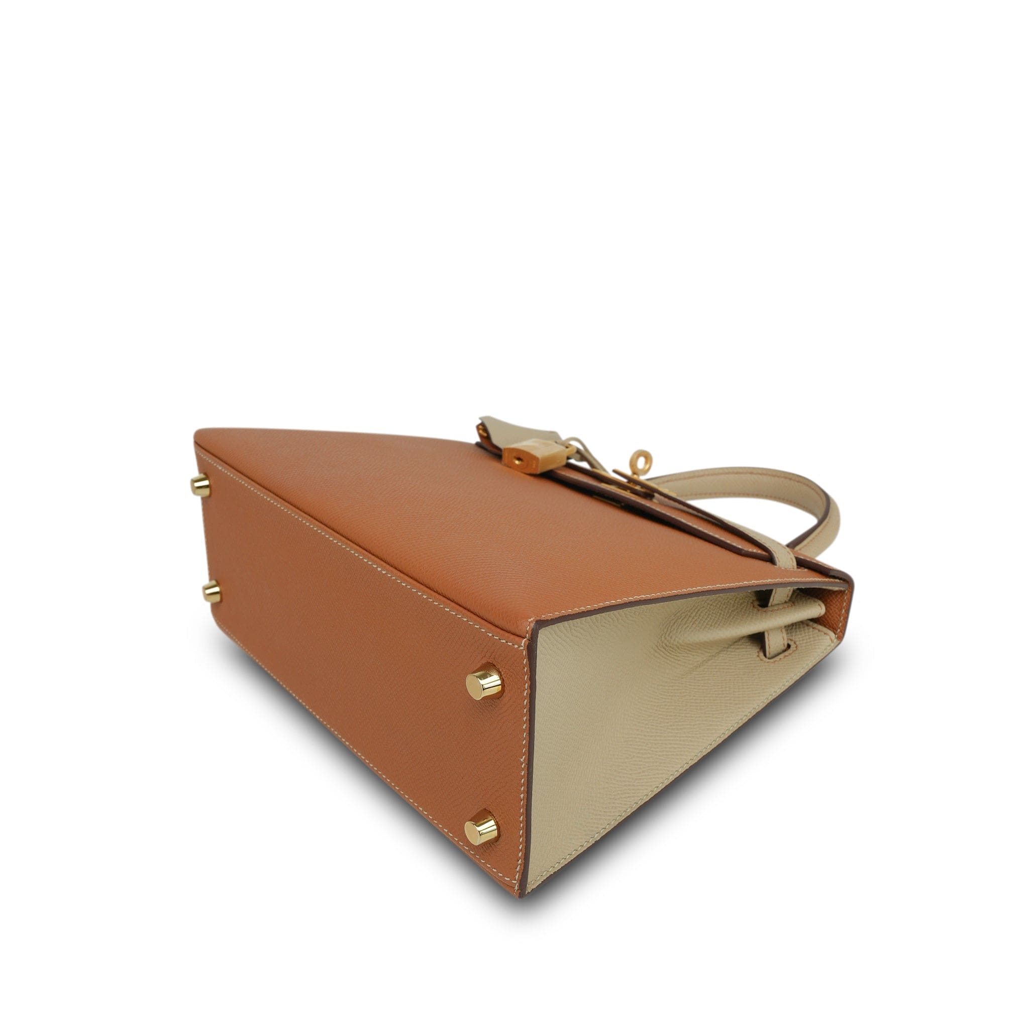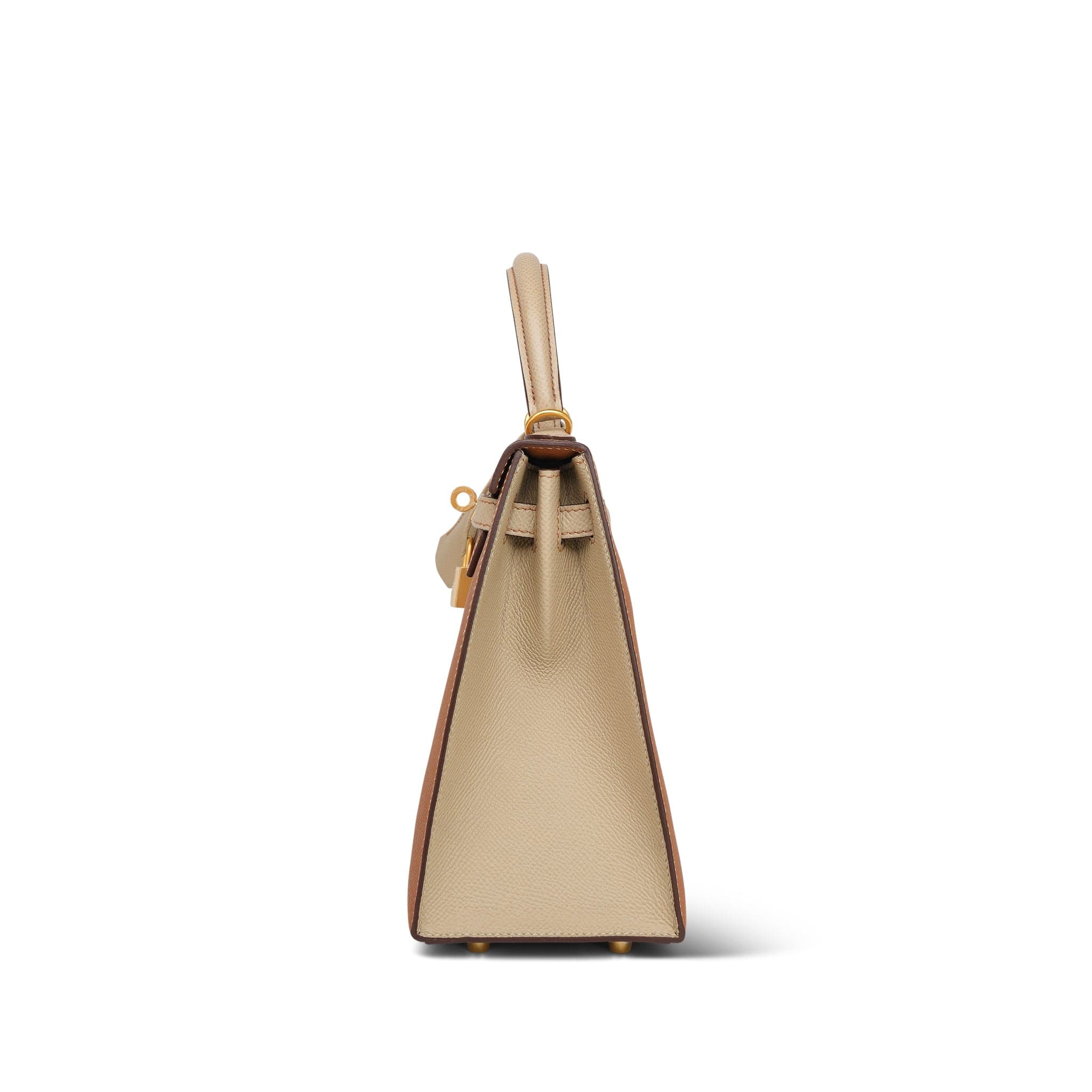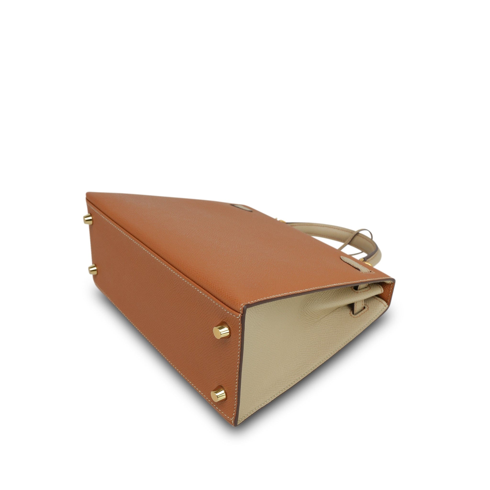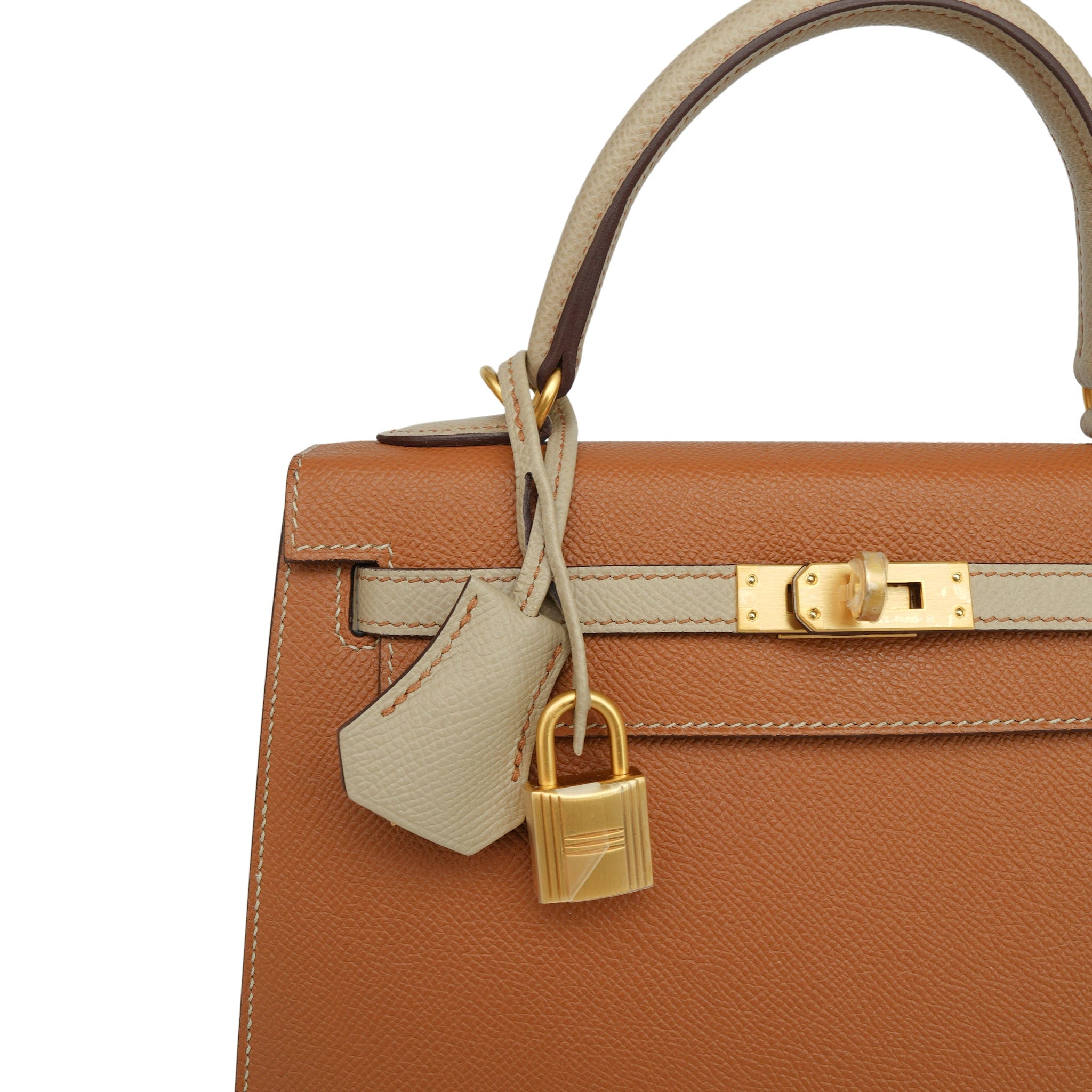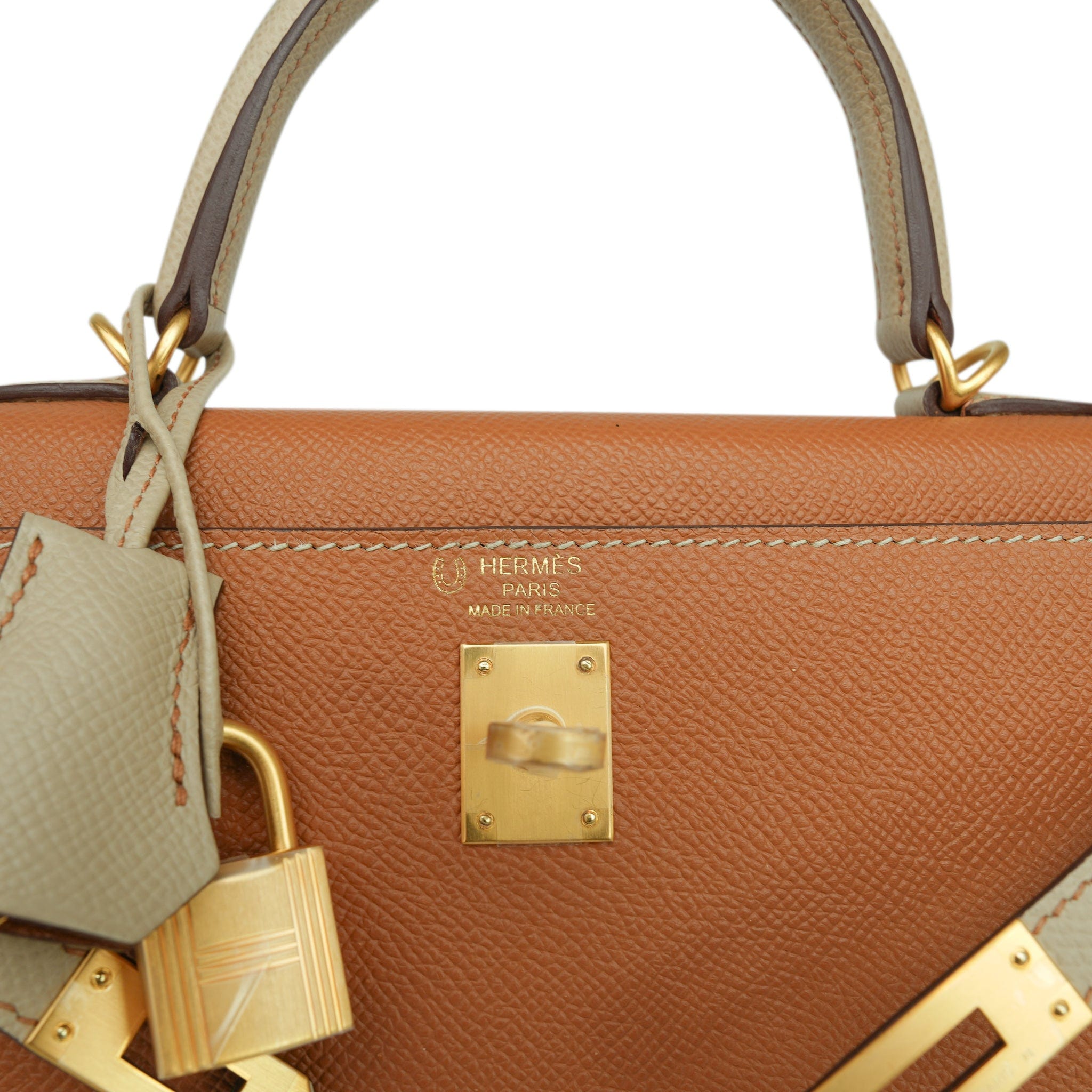 Kelly Sellier 25 Bi-Color Horseshoe (HSS) Gold/Trench Veau Epsom Brushed Gold Plated D Stamp