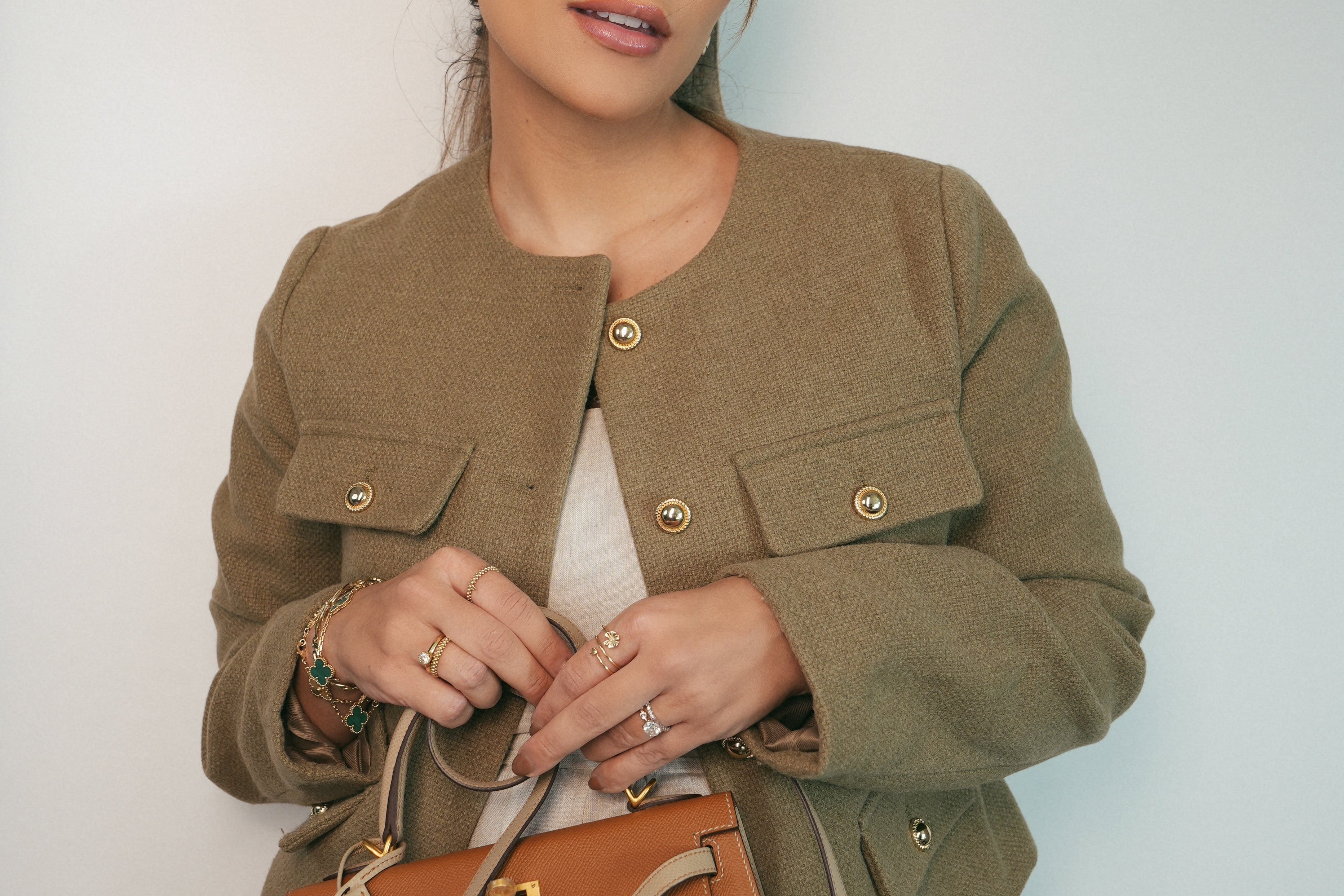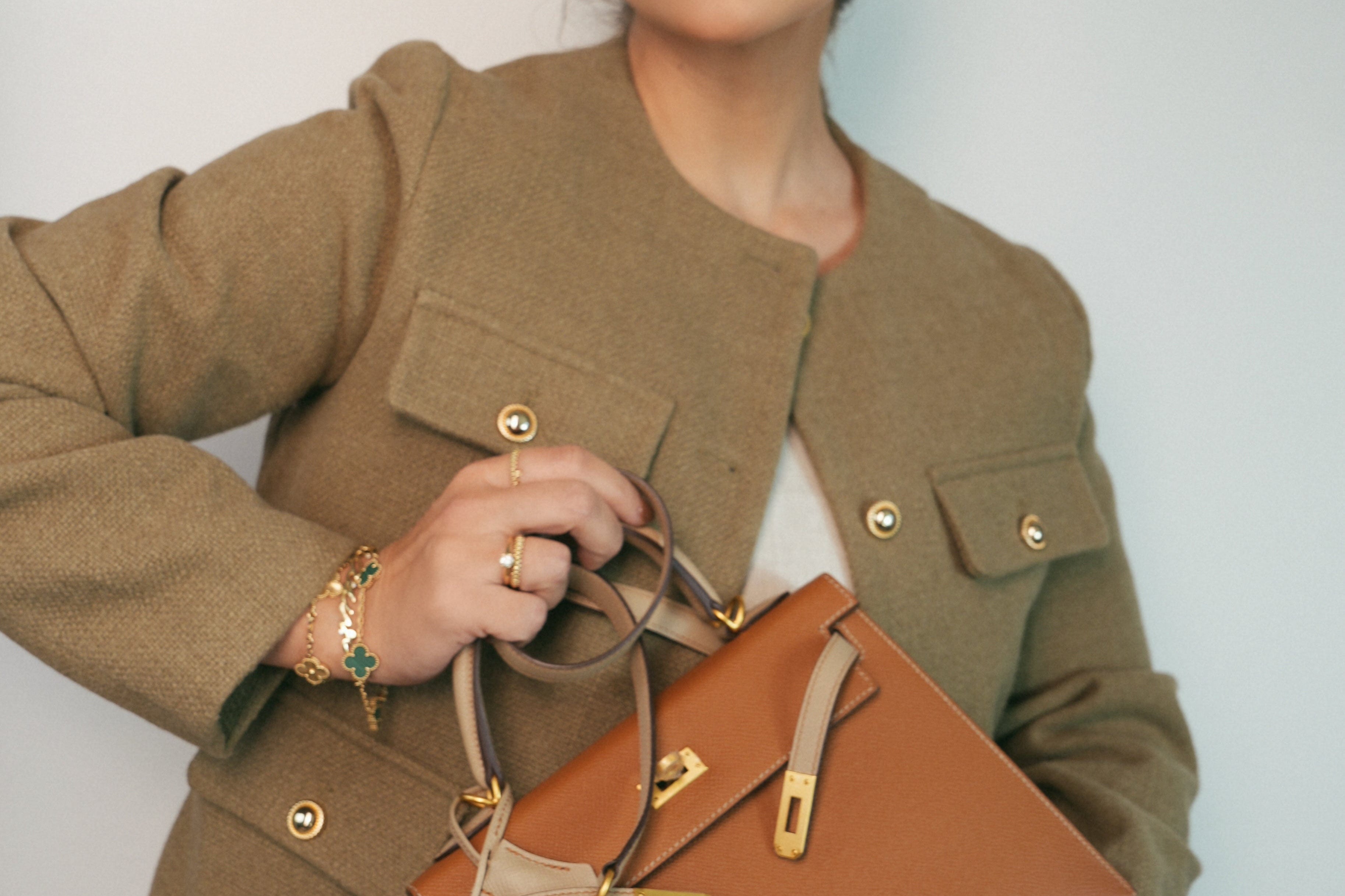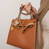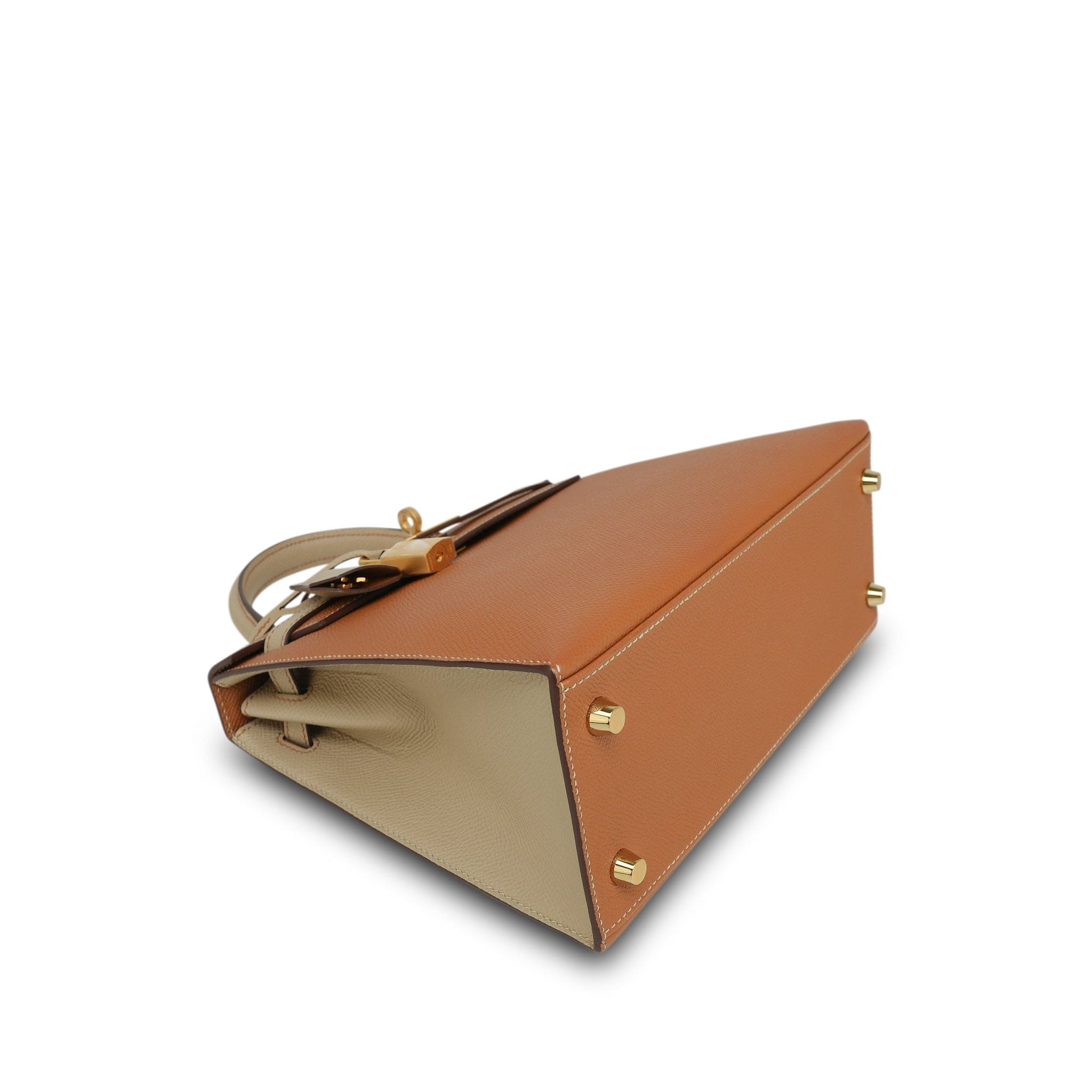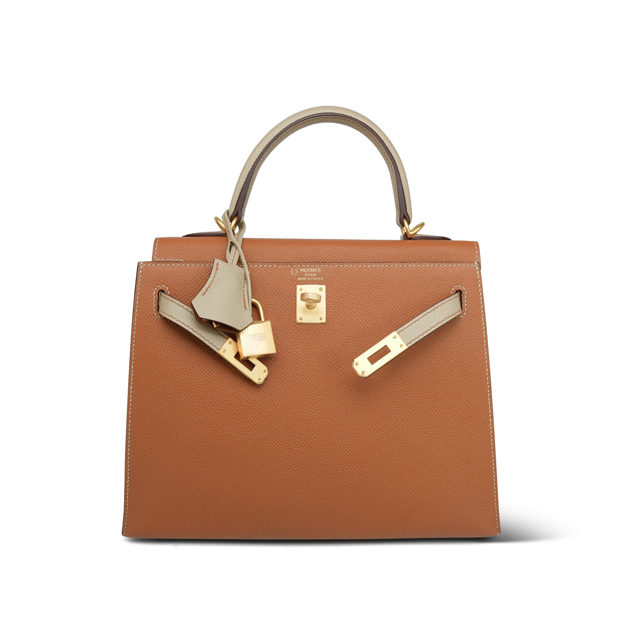 Kelly Sellier 25 Bi-Color Horseshoe (HSS) Gold/Trench Veau Epsom Brushed Gold Plated D Stamp