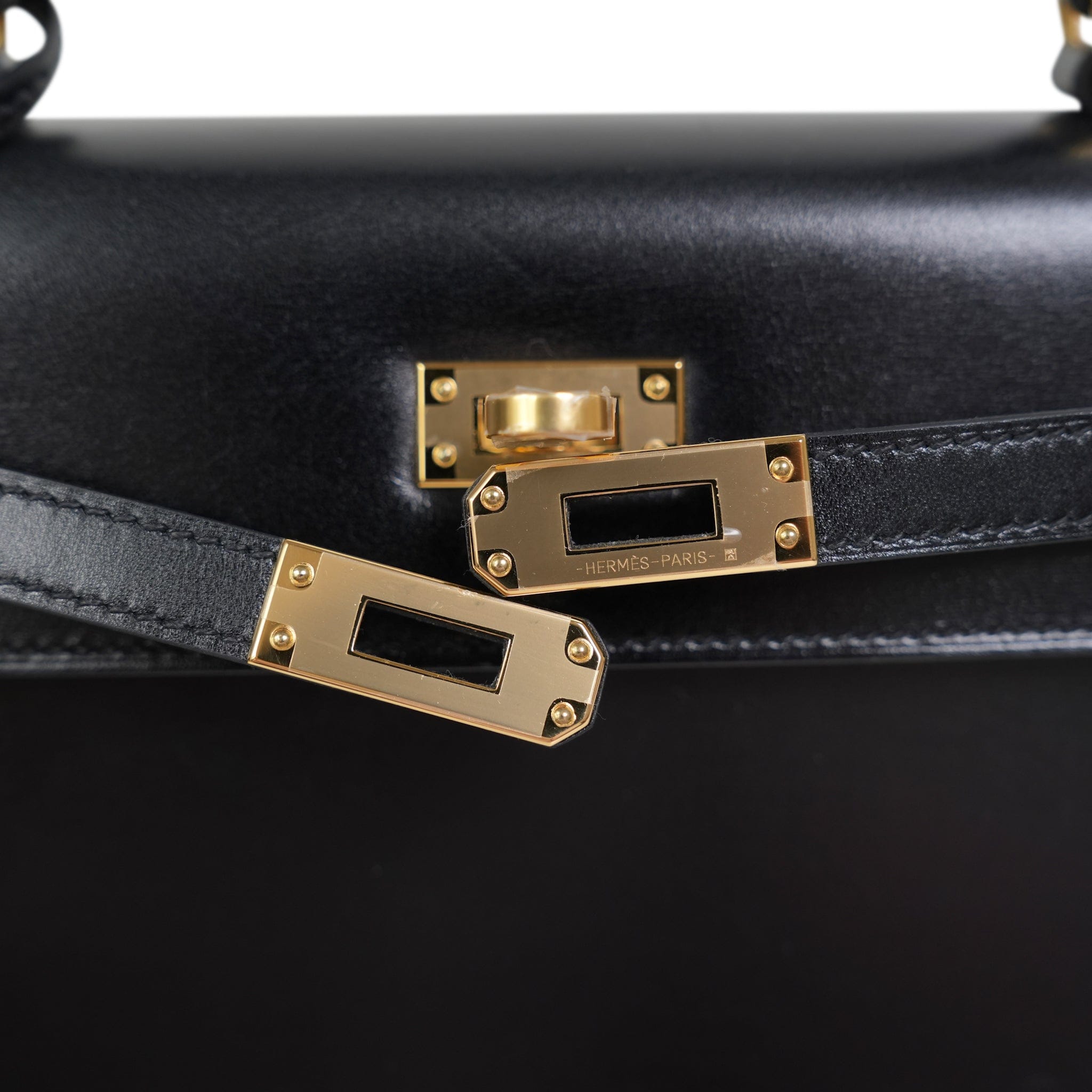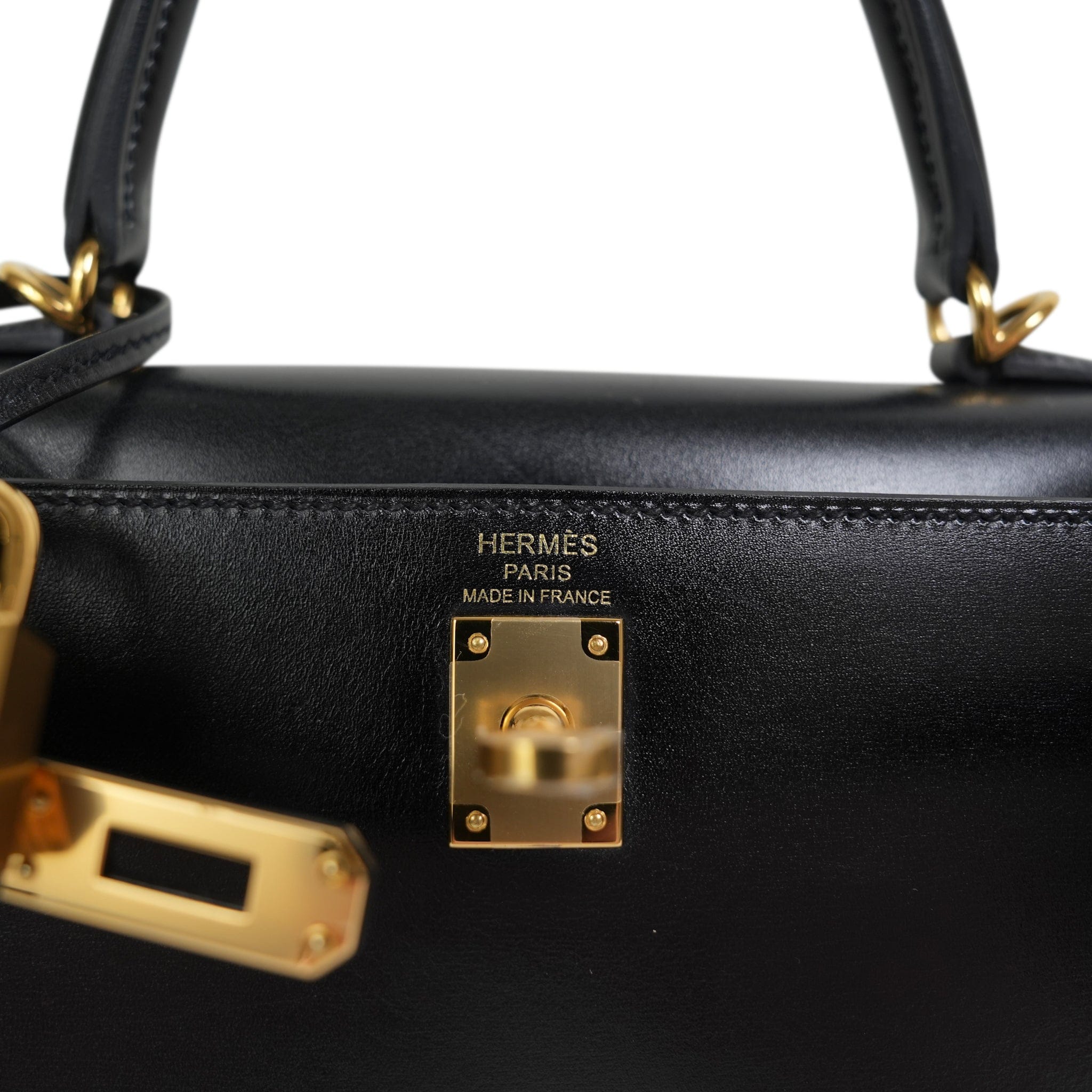 Kelly Sellier 25 Black Box Calfskin Gold Plated U Stamp