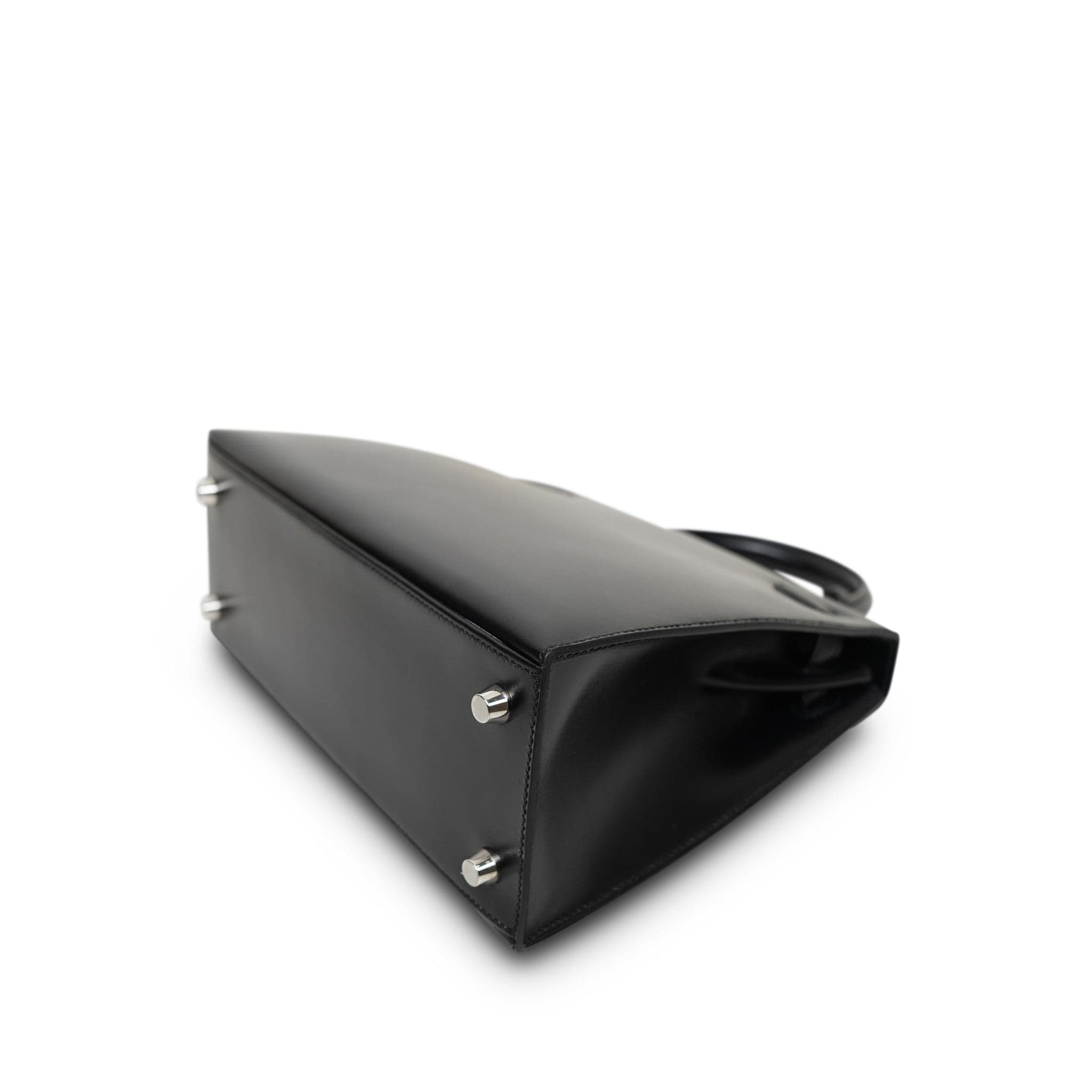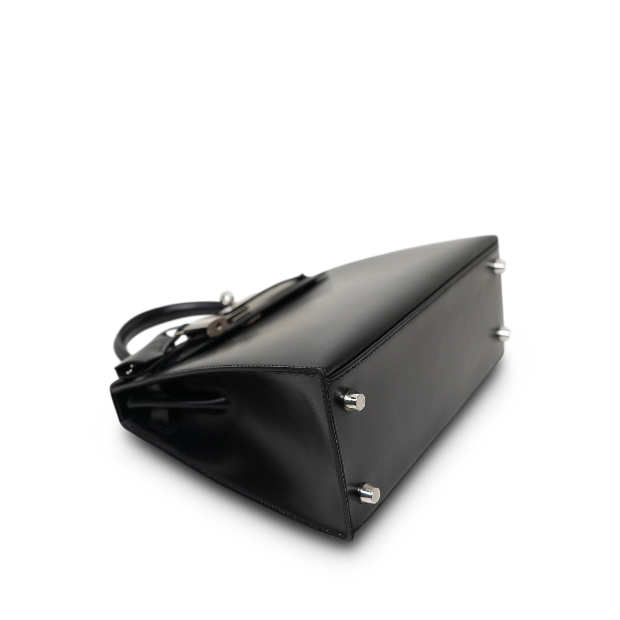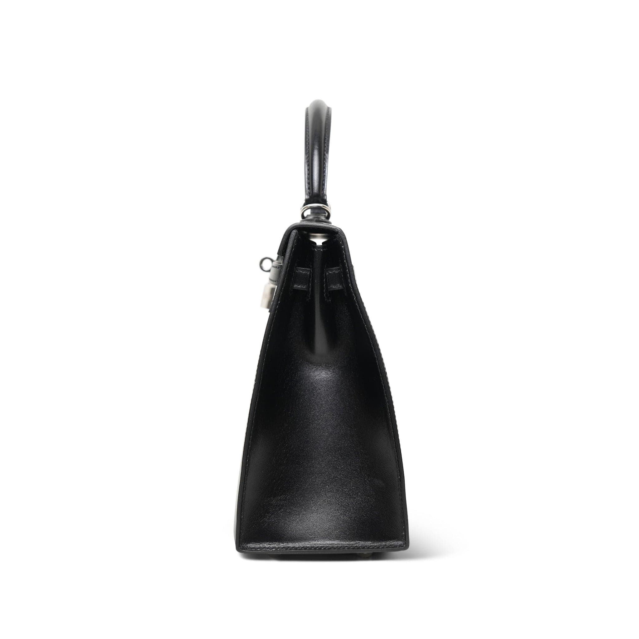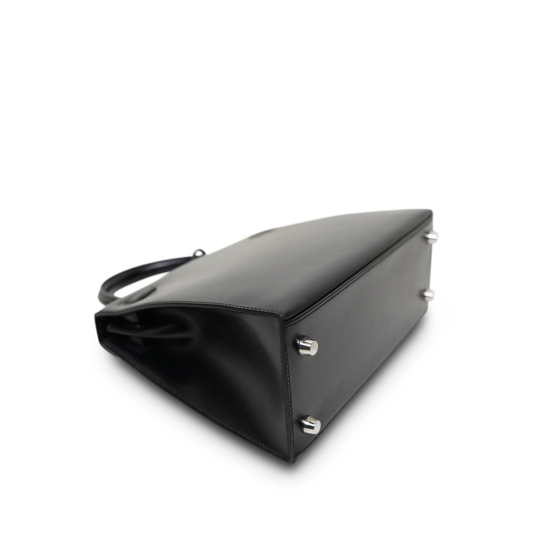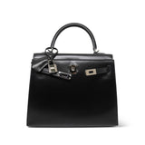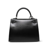 Kelly Sellier 25 Black Box Calfskin Palladium Plated D Stamp