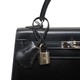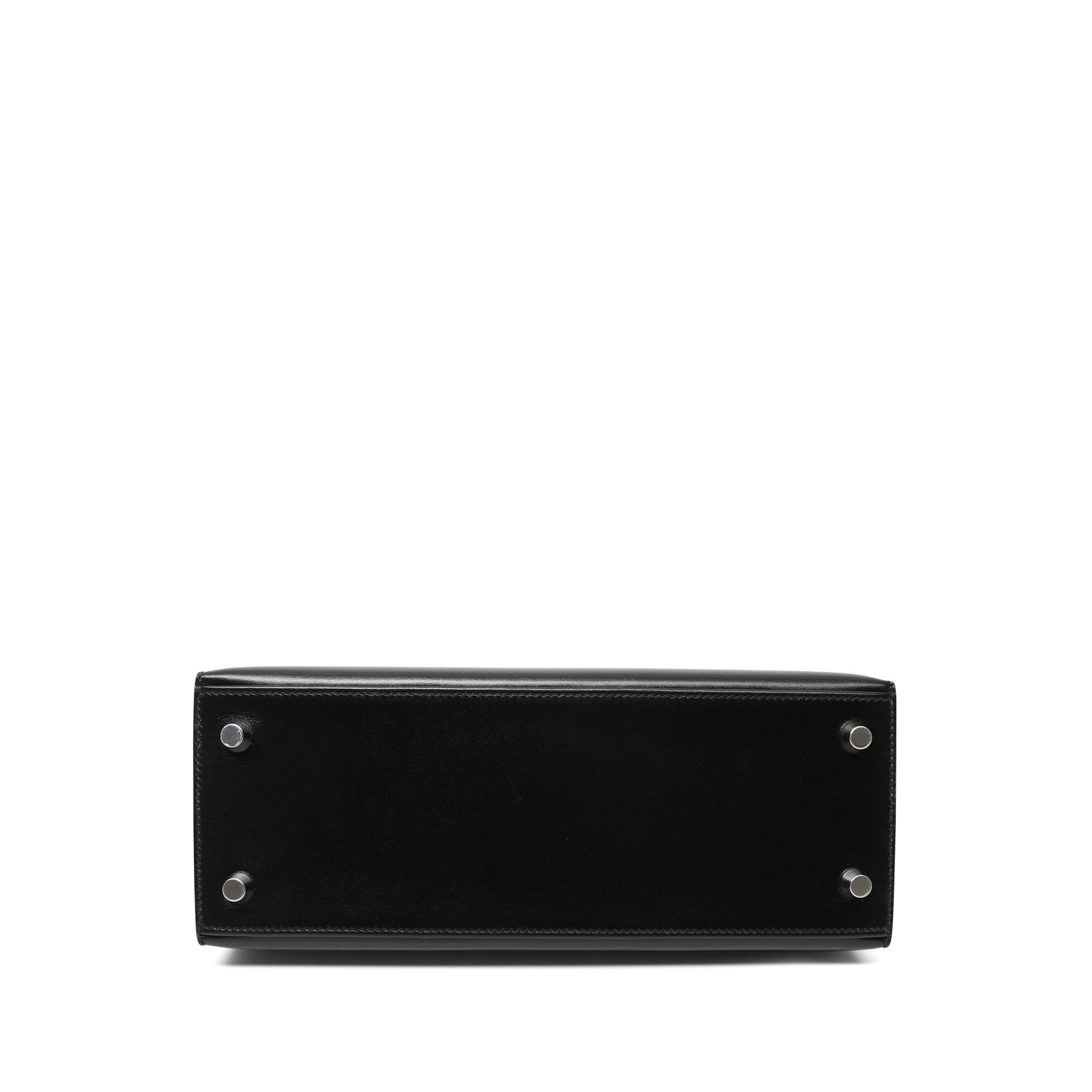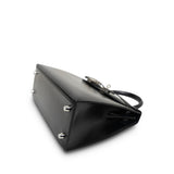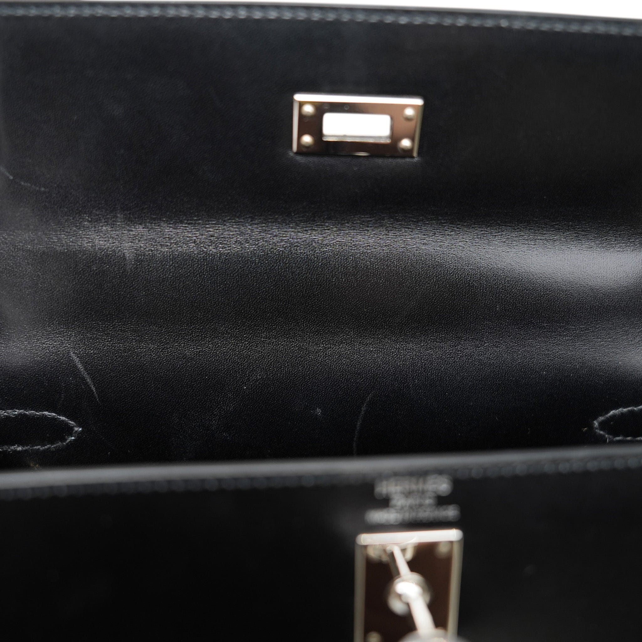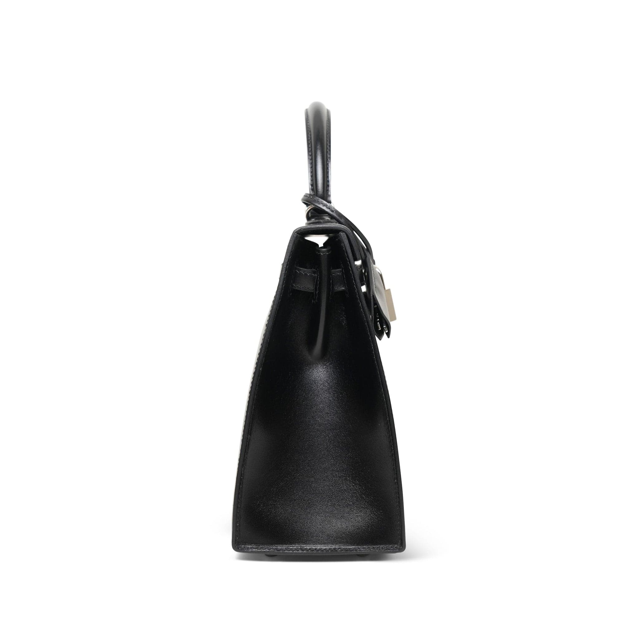 Kelly Sellier 25 Black Box Calfskin Palladium Plated D Stamp