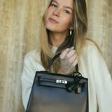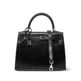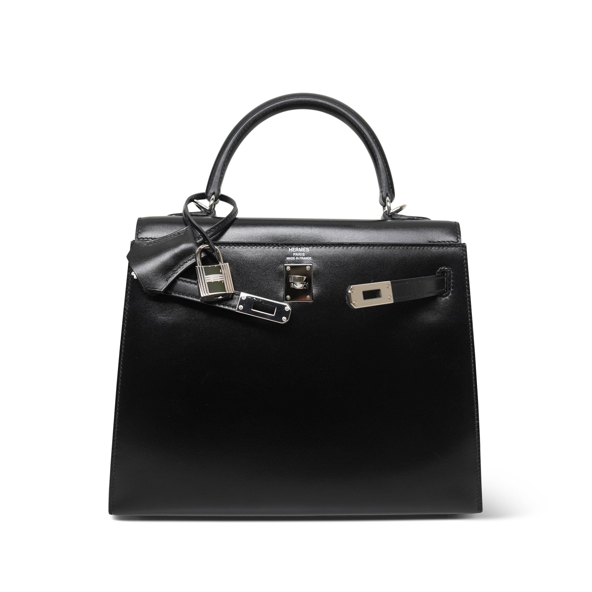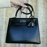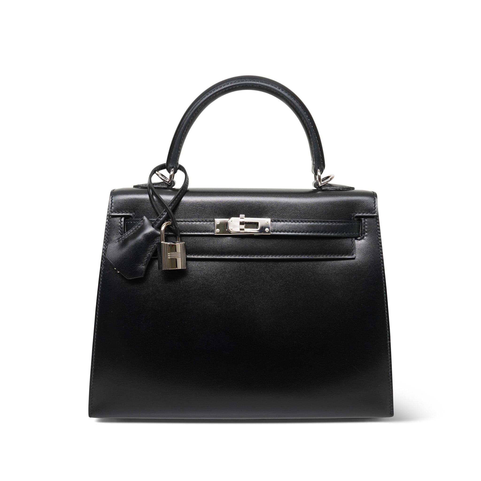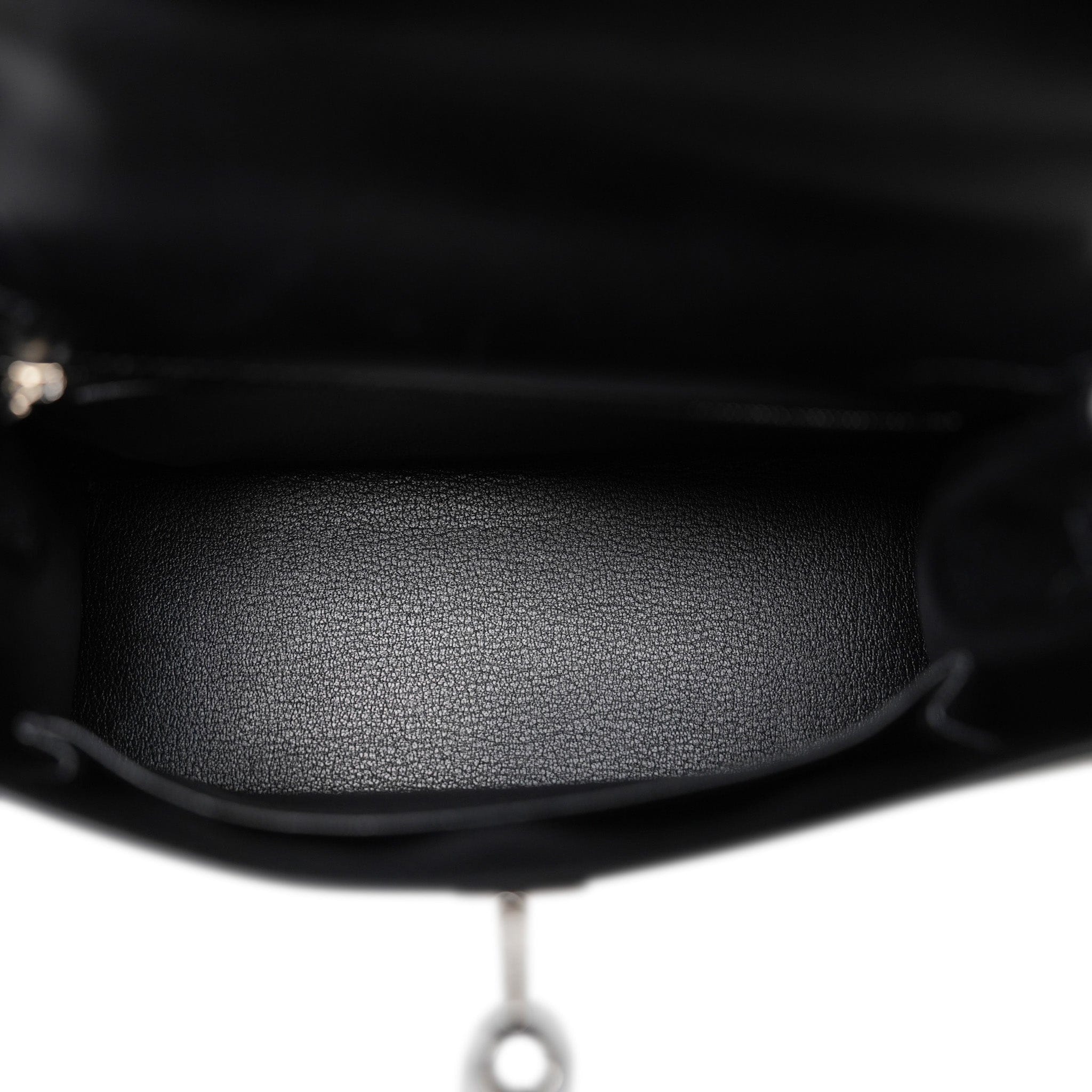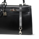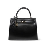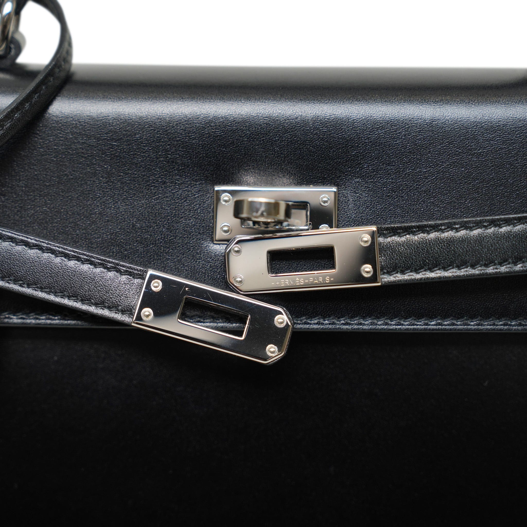 Kelly Sellier 25 Black Box Calfskin Palladium Plated D Stamp