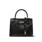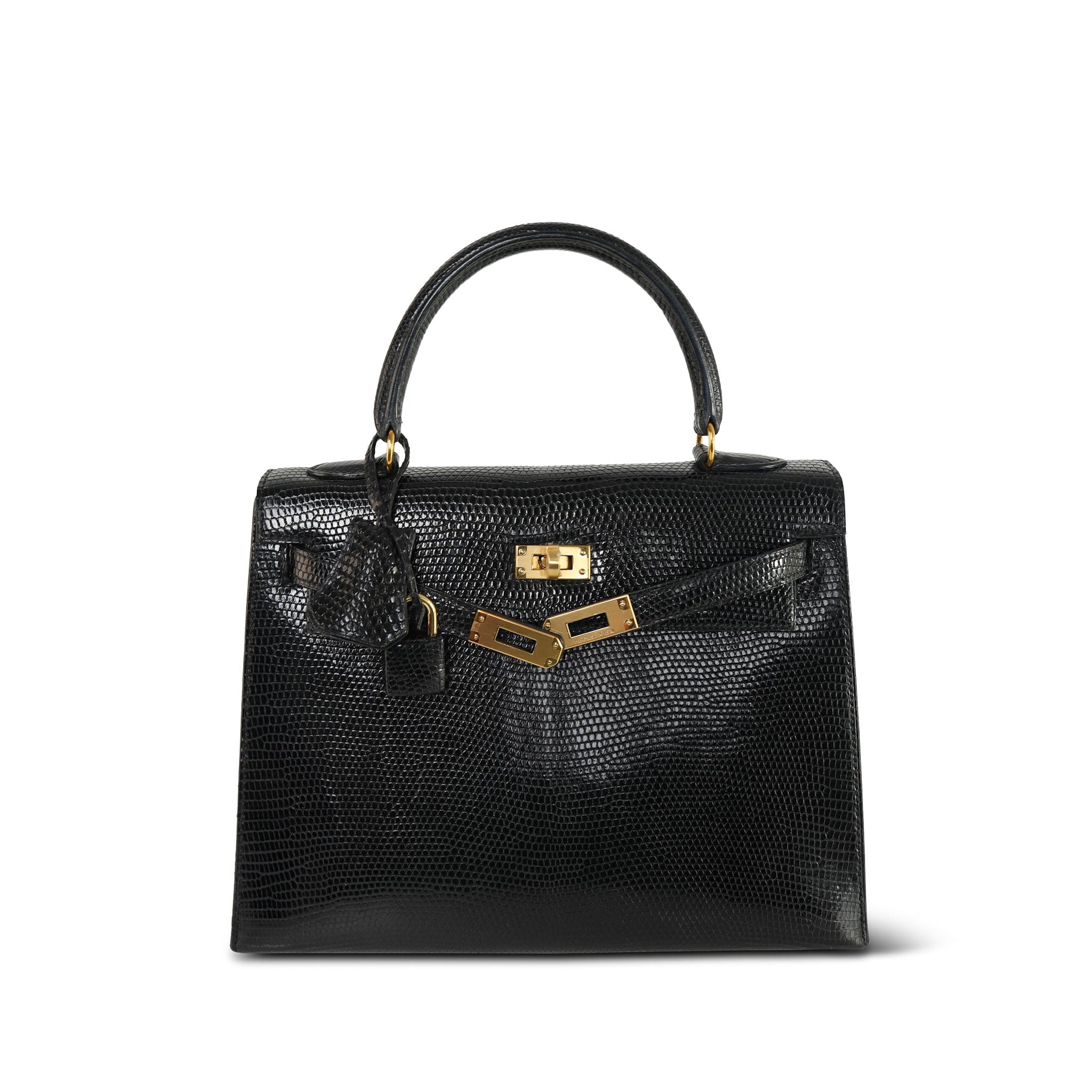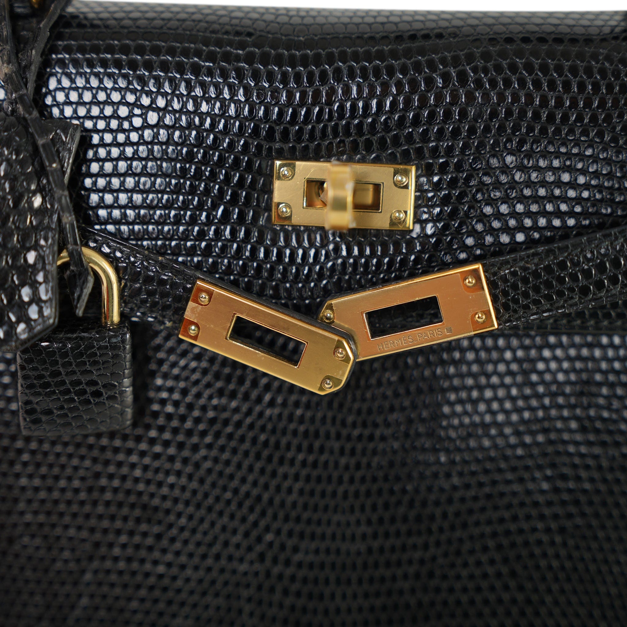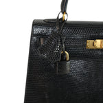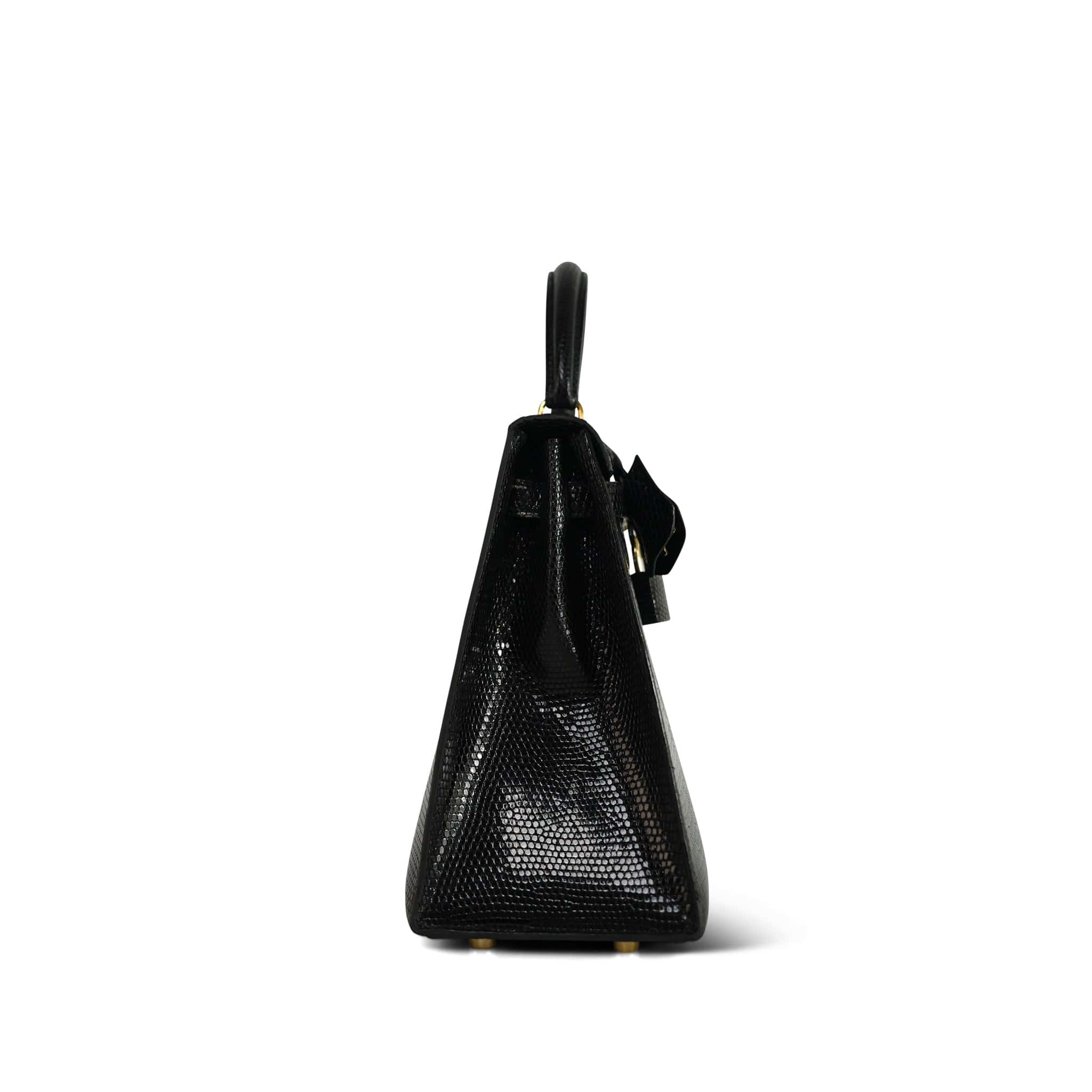 Kelly Sellier 25 Black Niloticus Lizard Gold Plated B Square Stamp