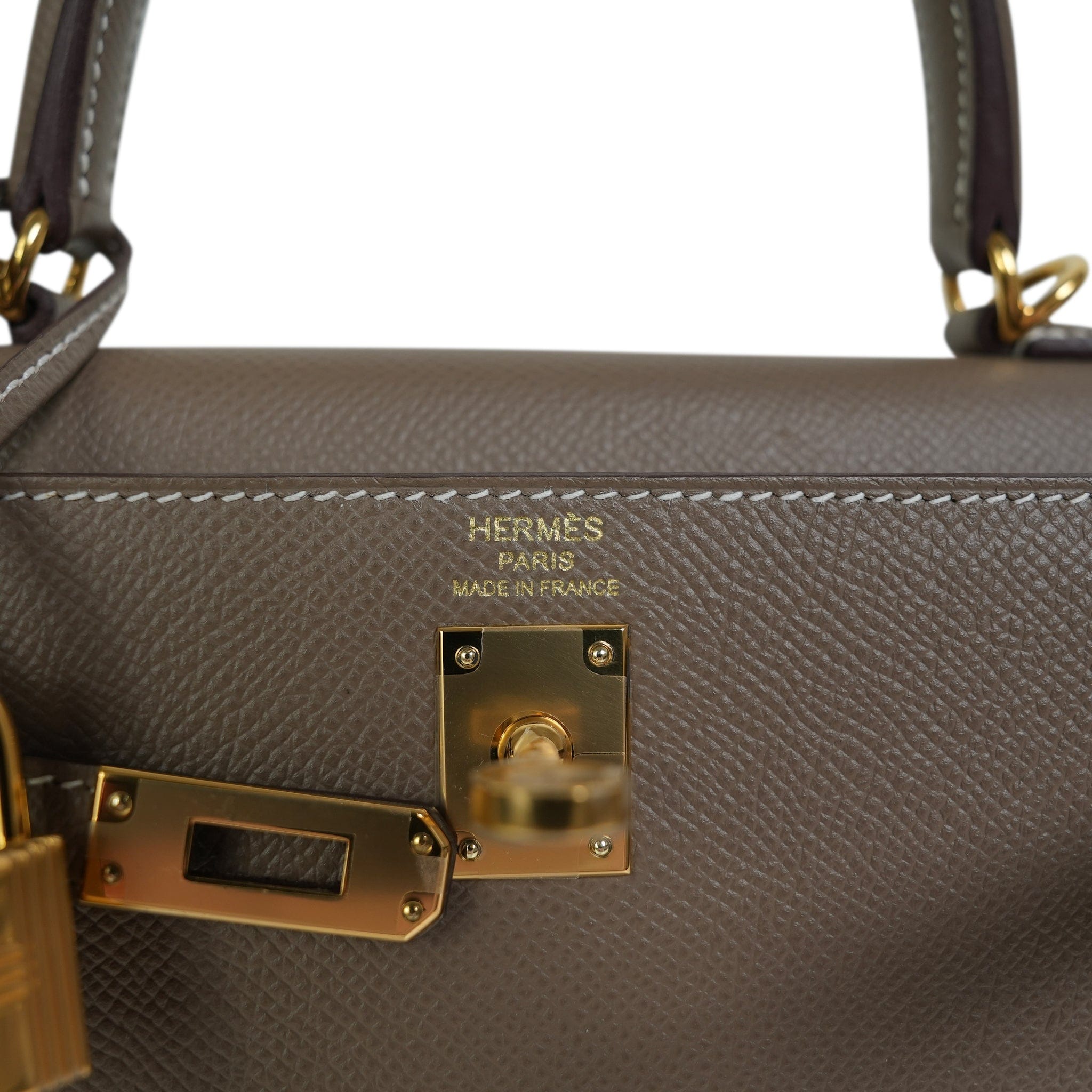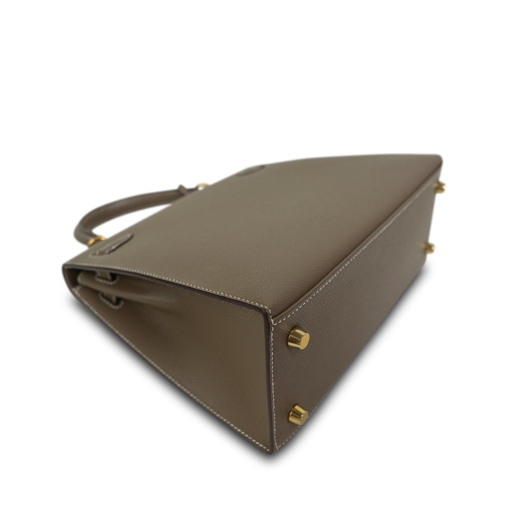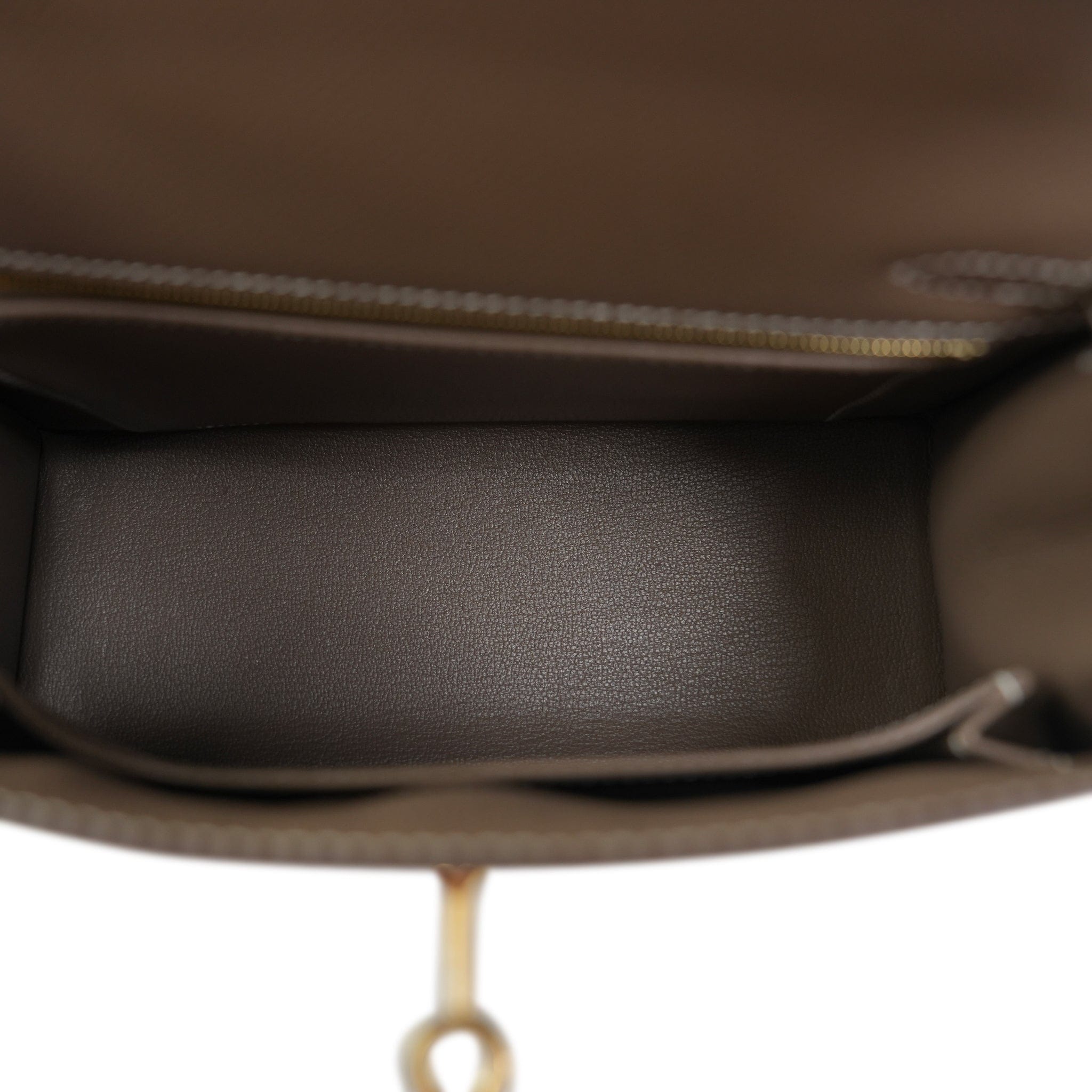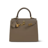 Kelly Sellier 25 Etoupe Veau Epsom Gold Plated D Stamp