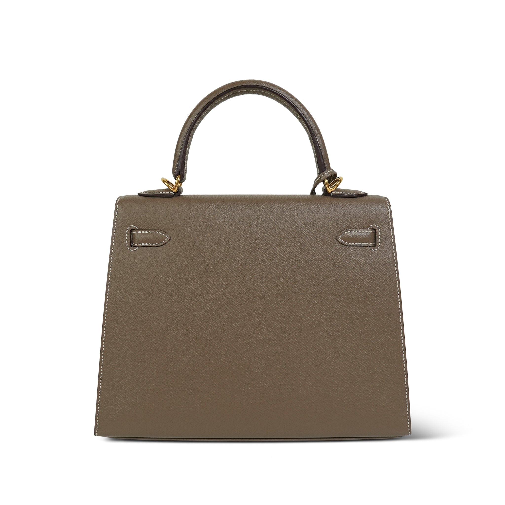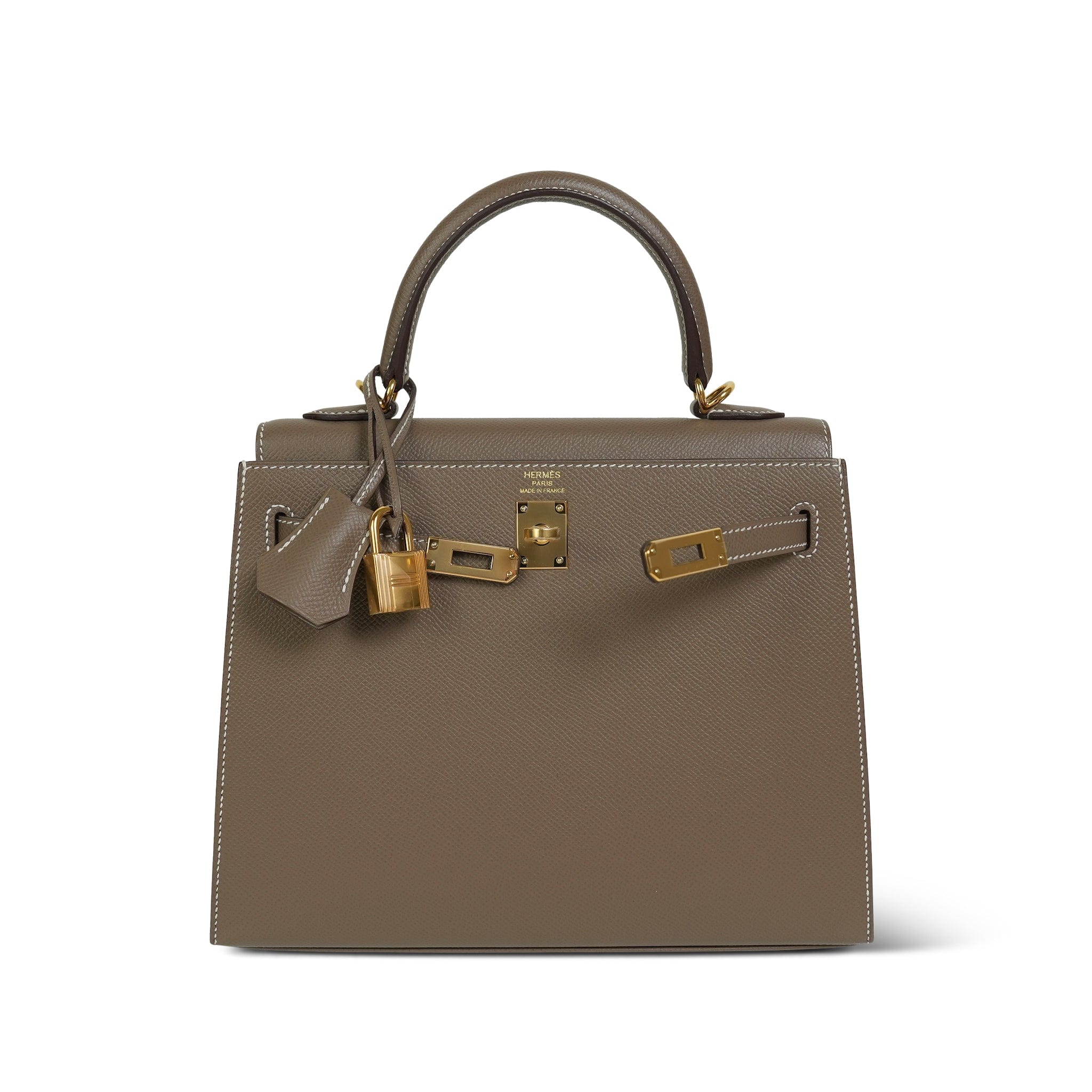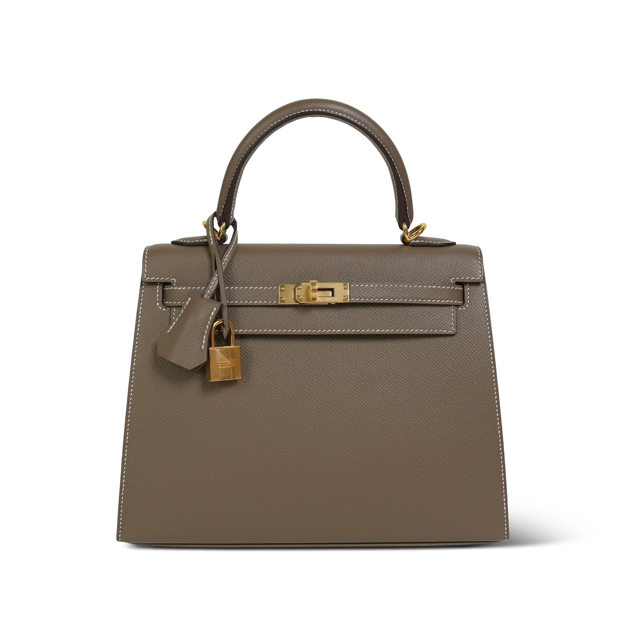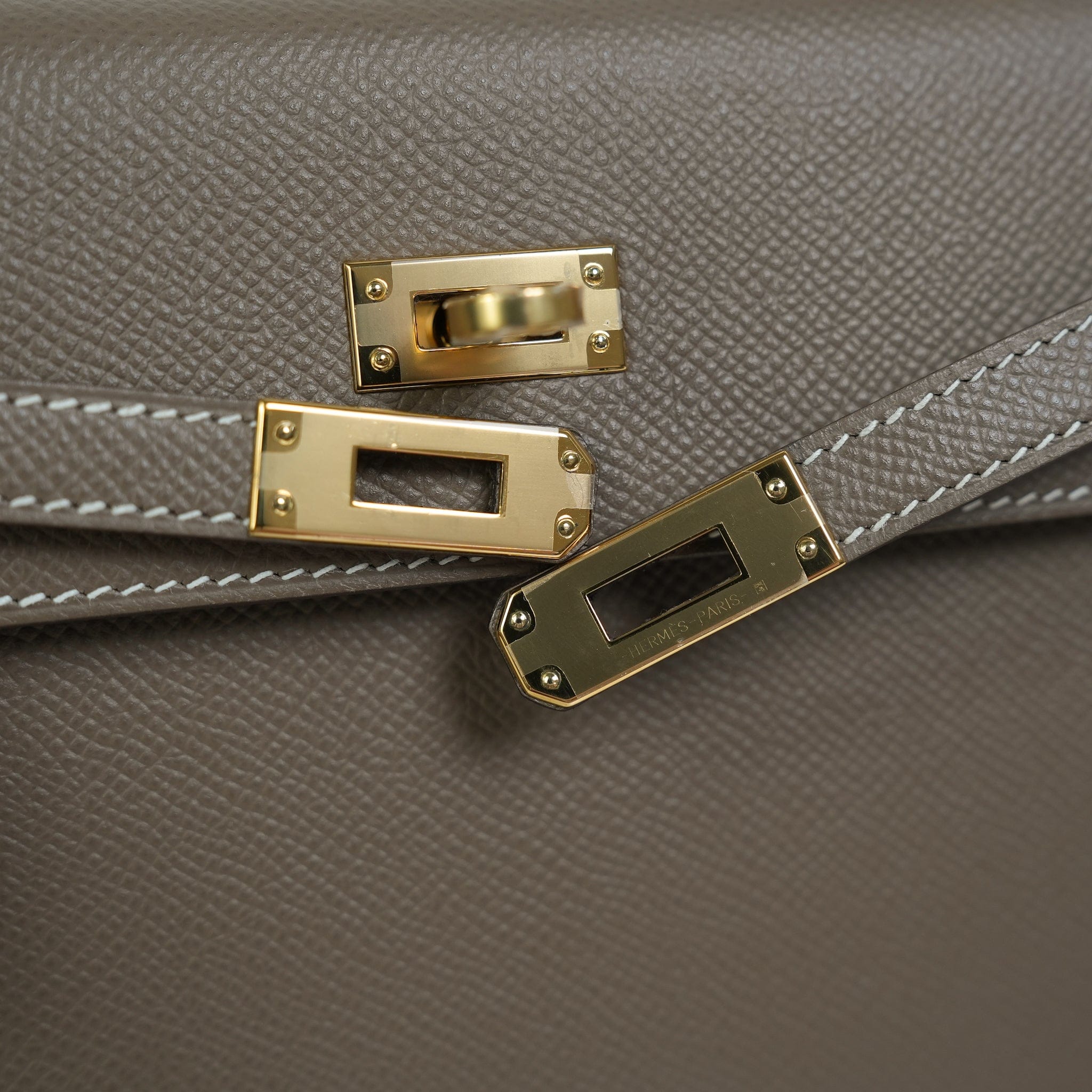 Kelly Sellier 25 Etoupe Veau Epsom Gold Plated D Stamp