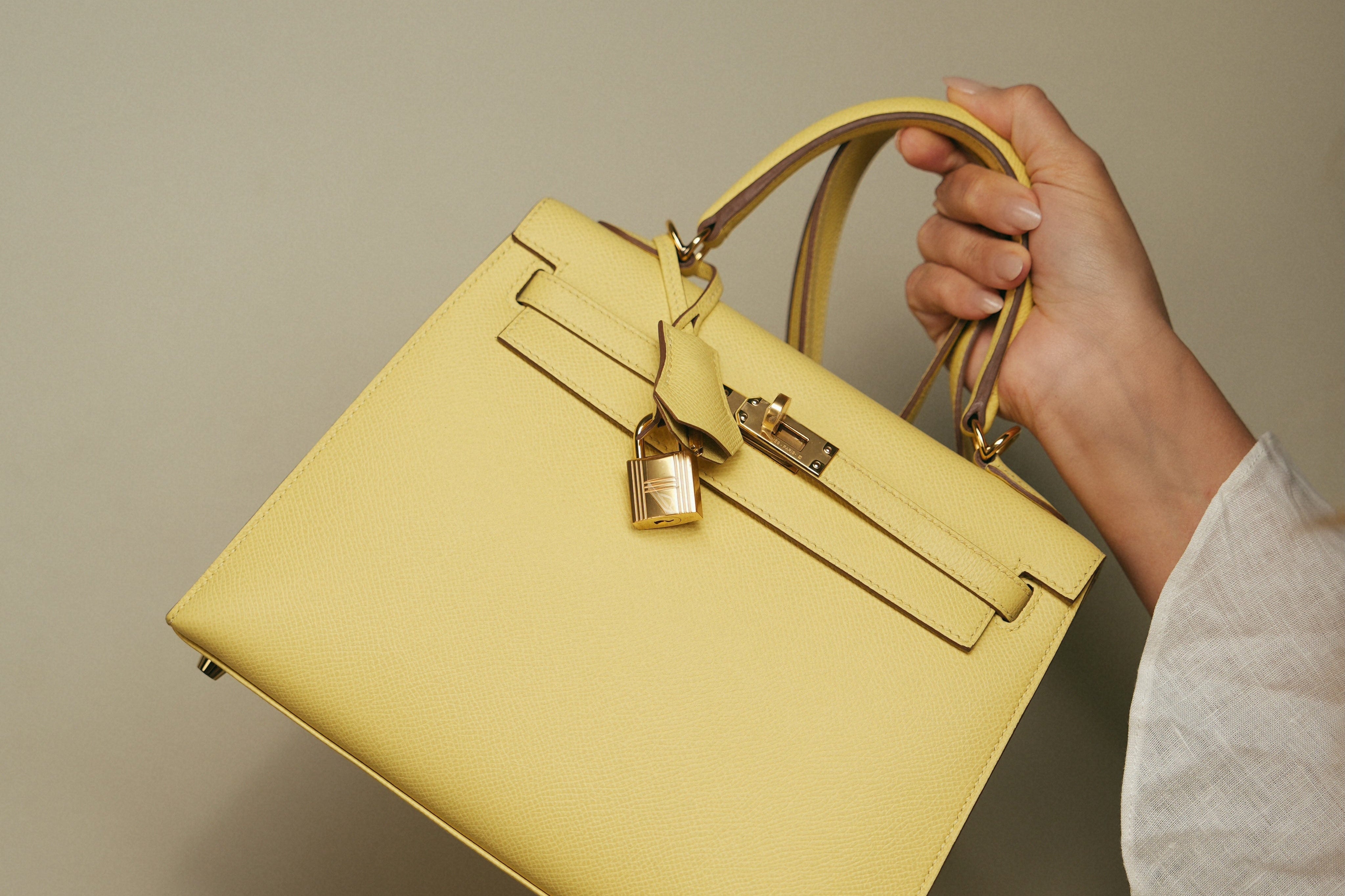 Kelly Sellier 25 Jaune Poussin Veau Epsom Gold Plated Z Stamp