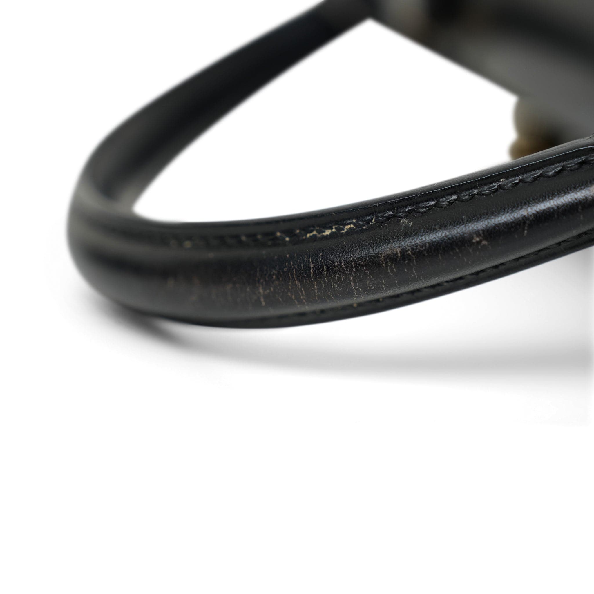 Condition: Fair vintage condition. Tarnishing and scratches on hardware. Light scratches and creases throughout. Some color fading and rubbing throughout. Light spots inside.