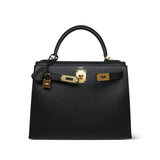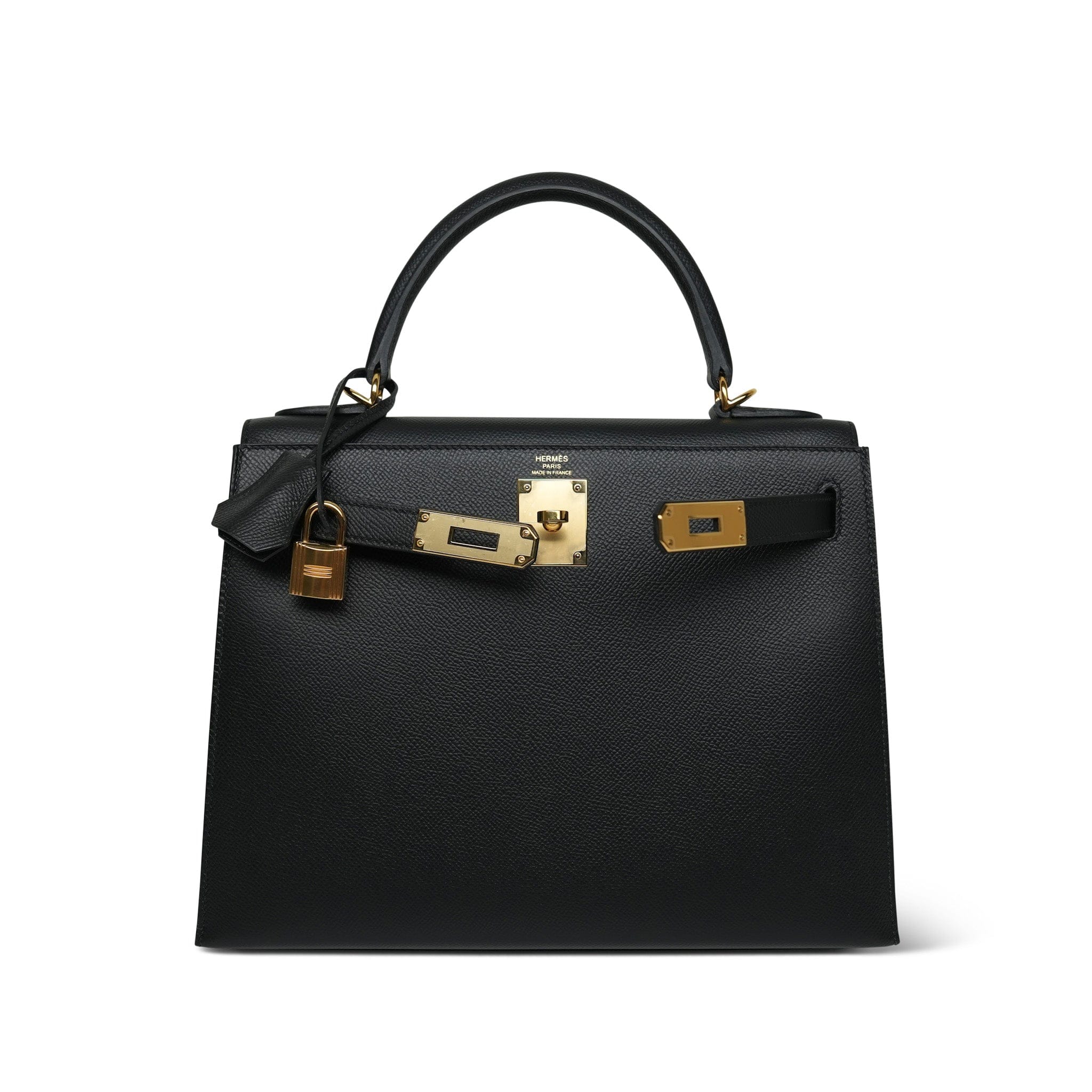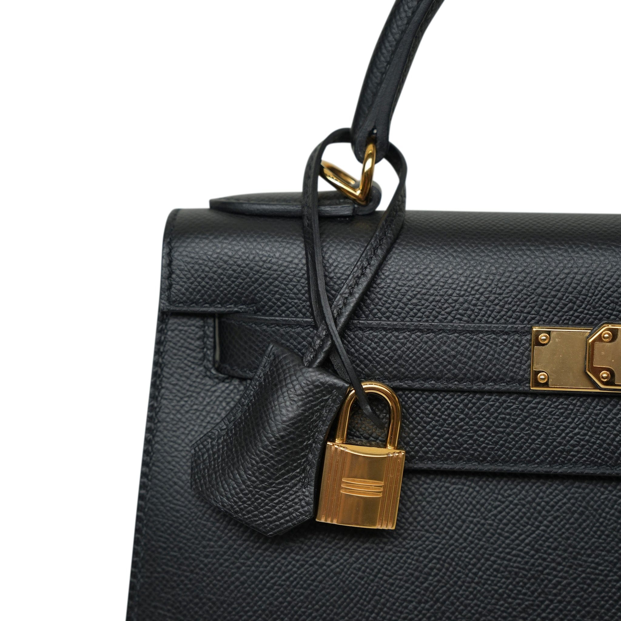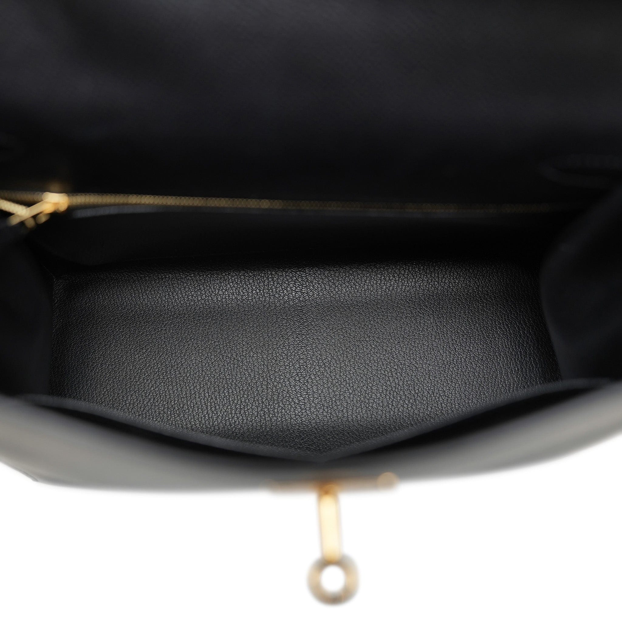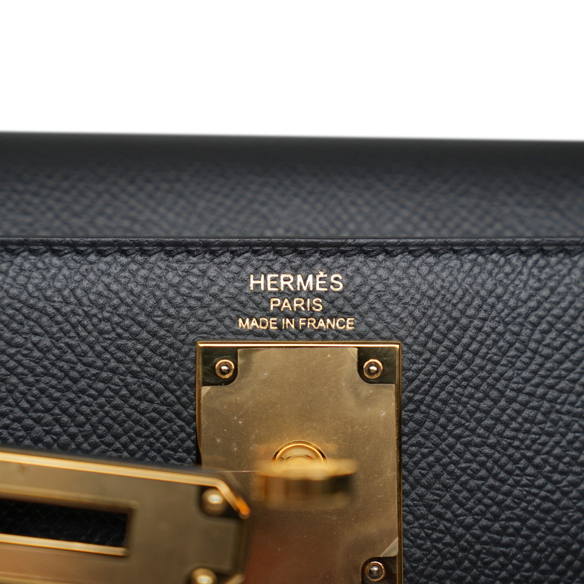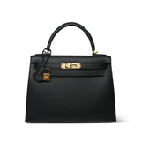Kelly Sellier 28 Black Veau Epsom Gold Plated Y Stamp