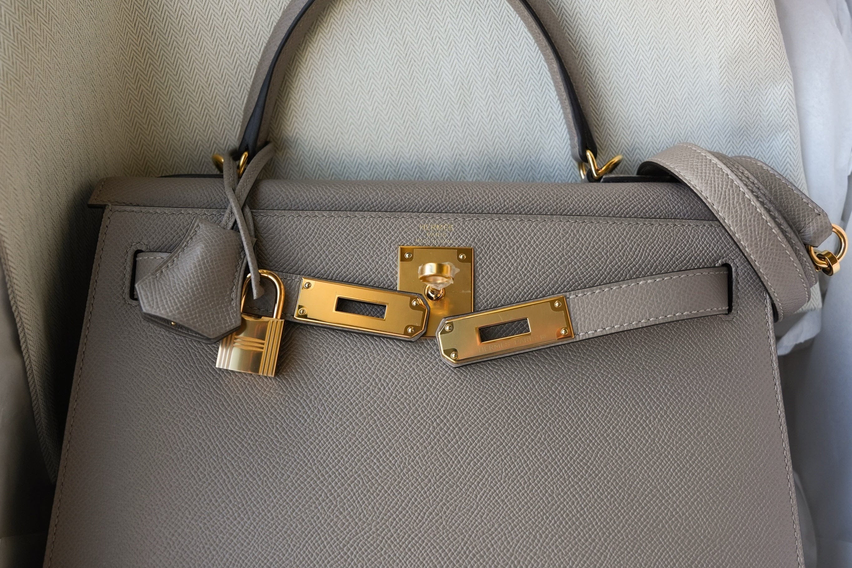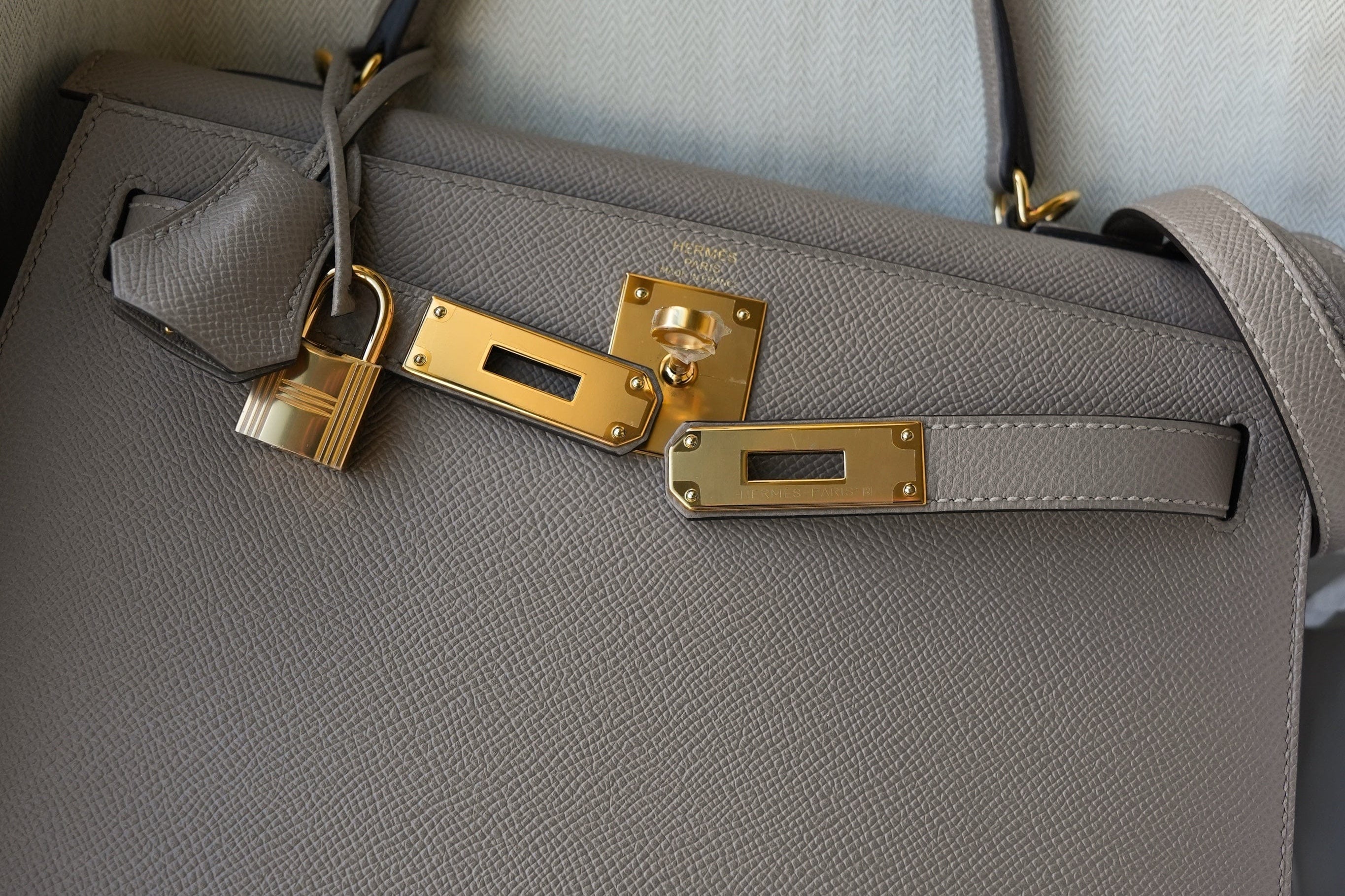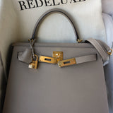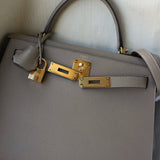Kelly Sellier 28 Gris Asphalt Epsom Gold Plated C Stamp