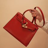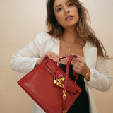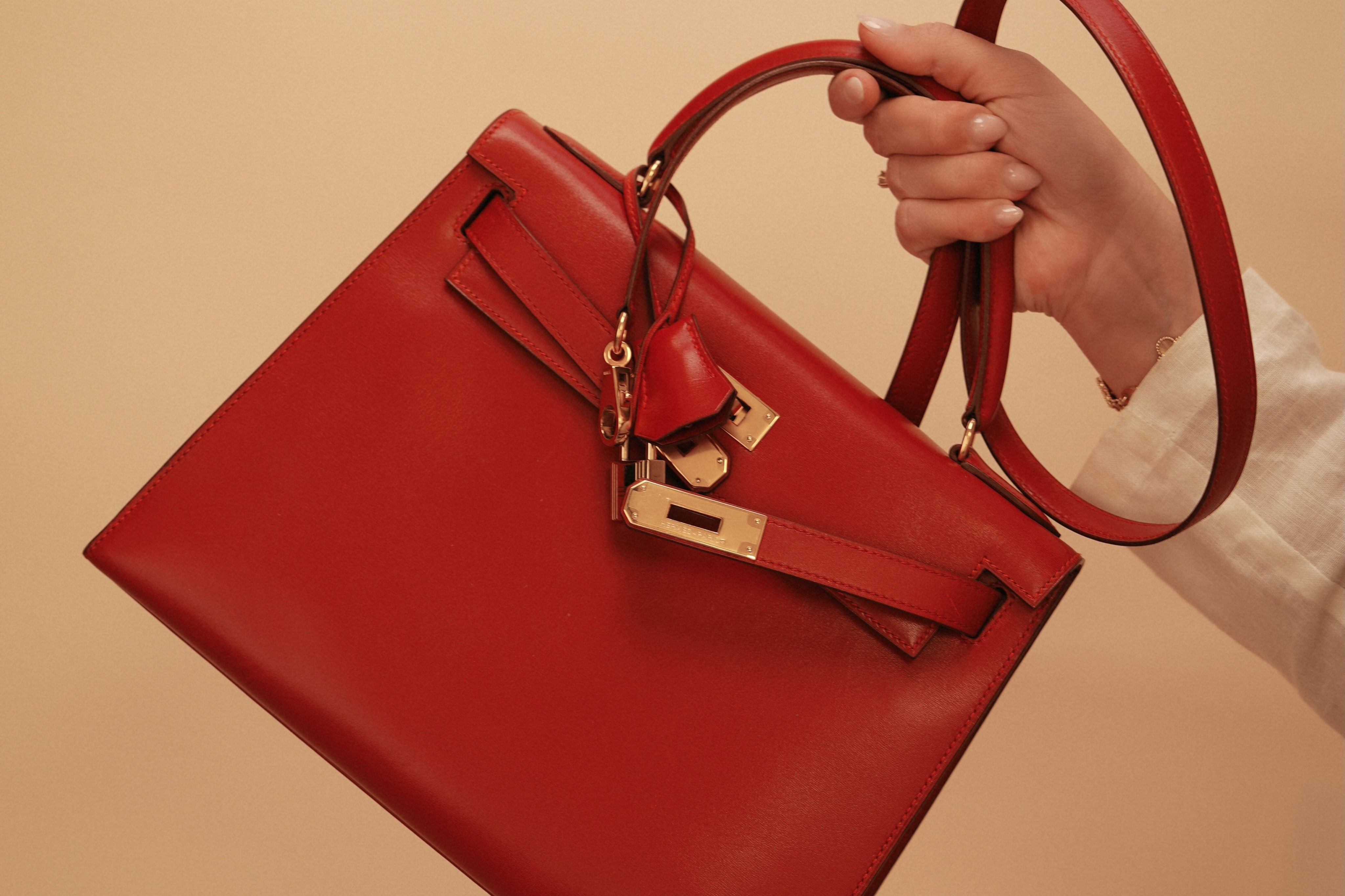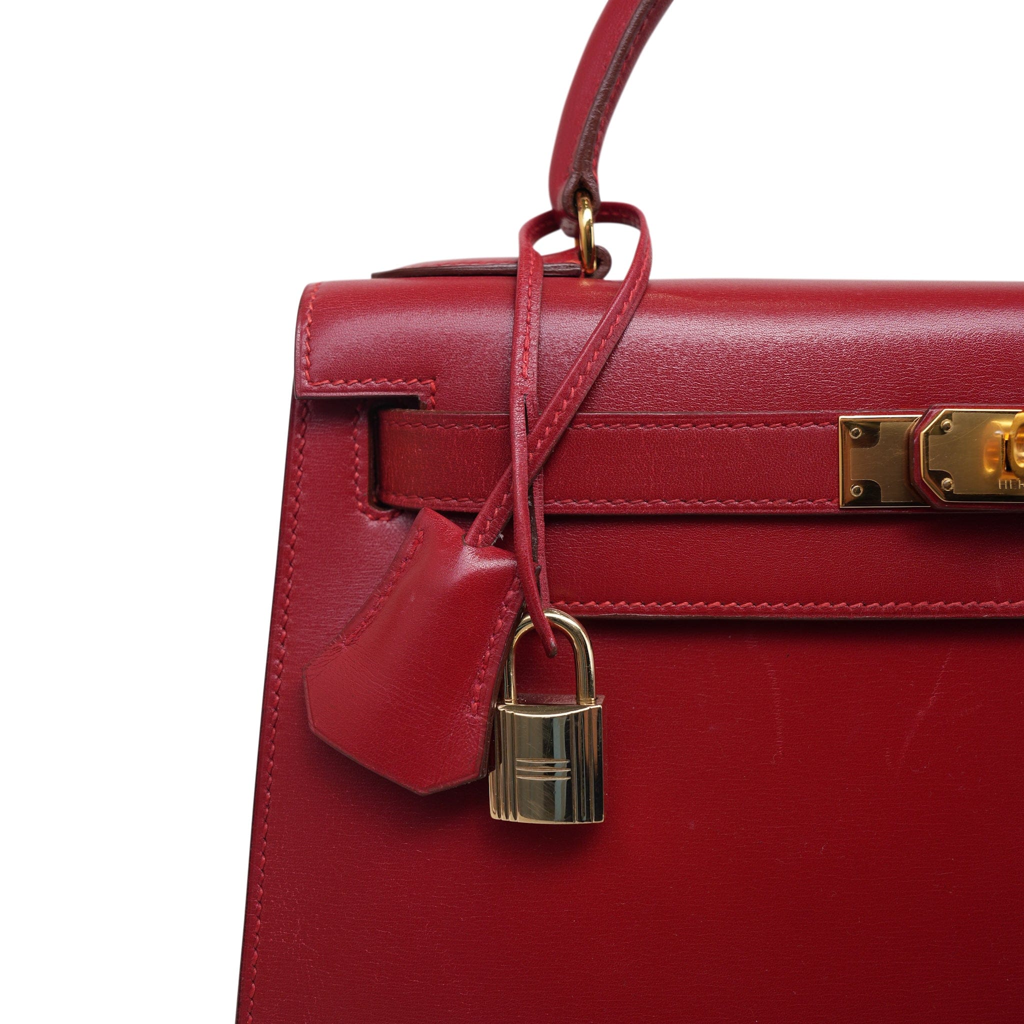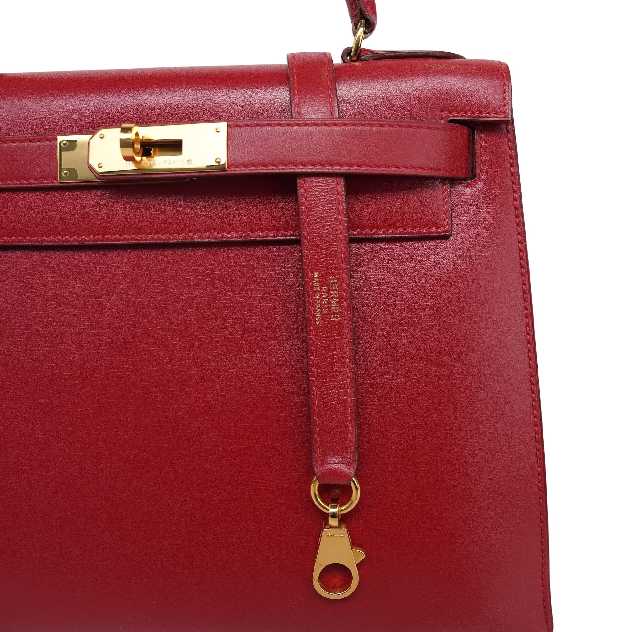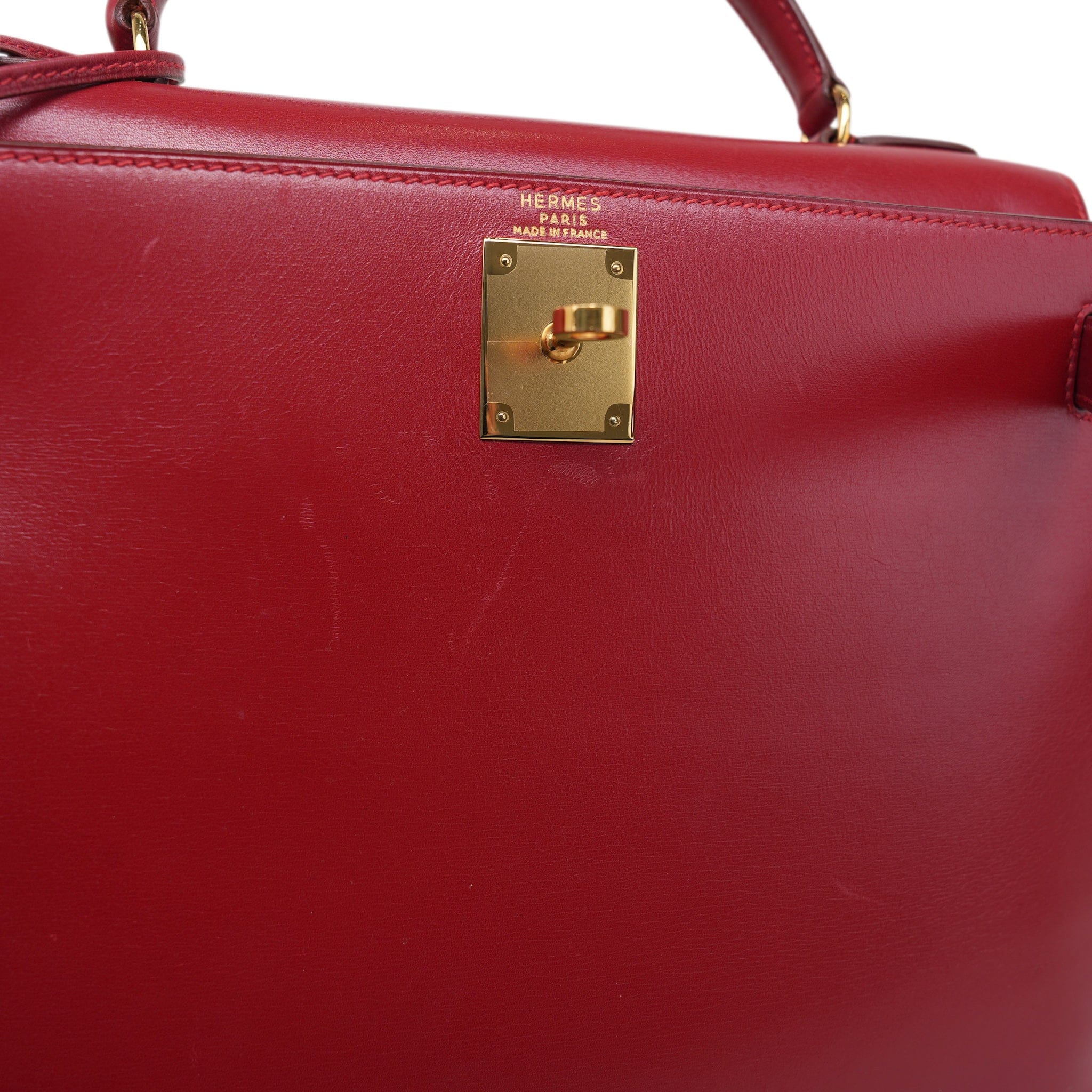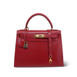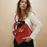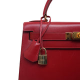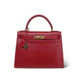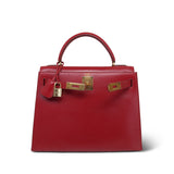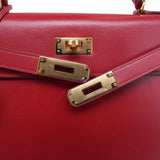 Kelly Sellier 28 Rouge Box Calfskin Gold Plated V Stamp