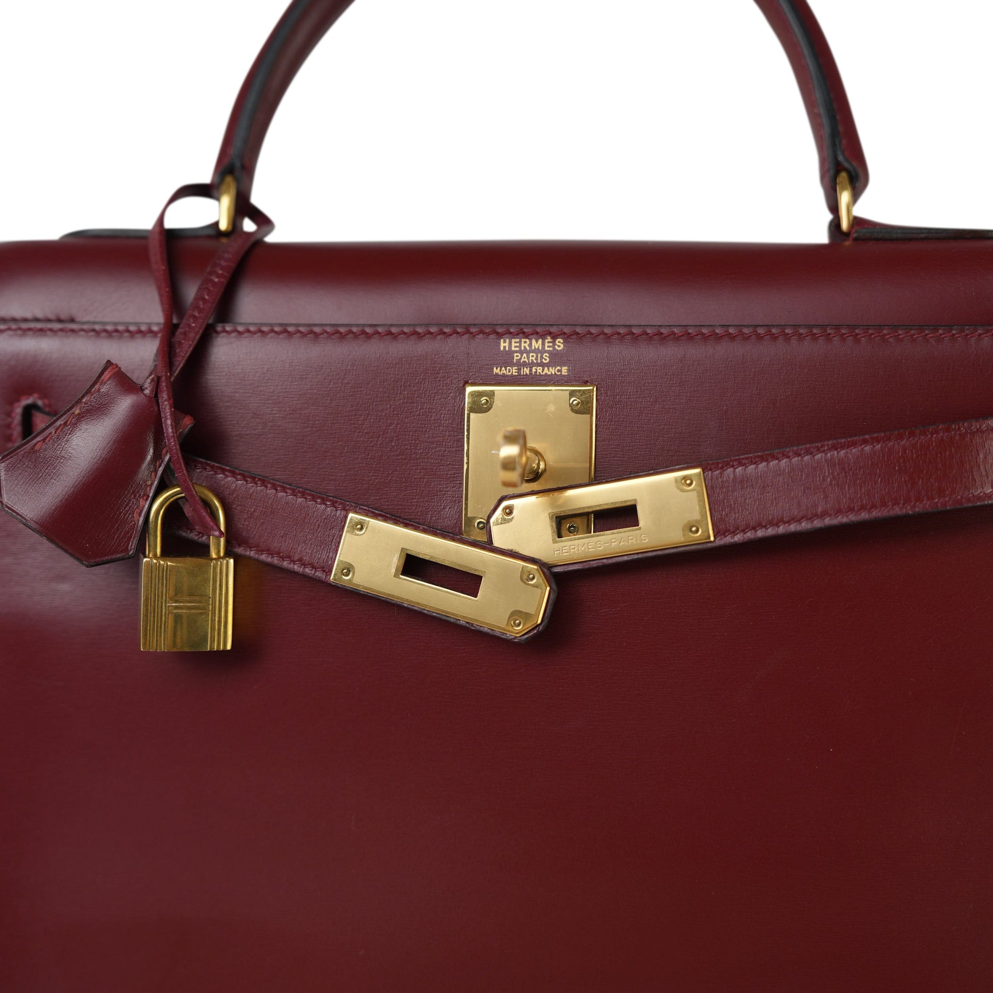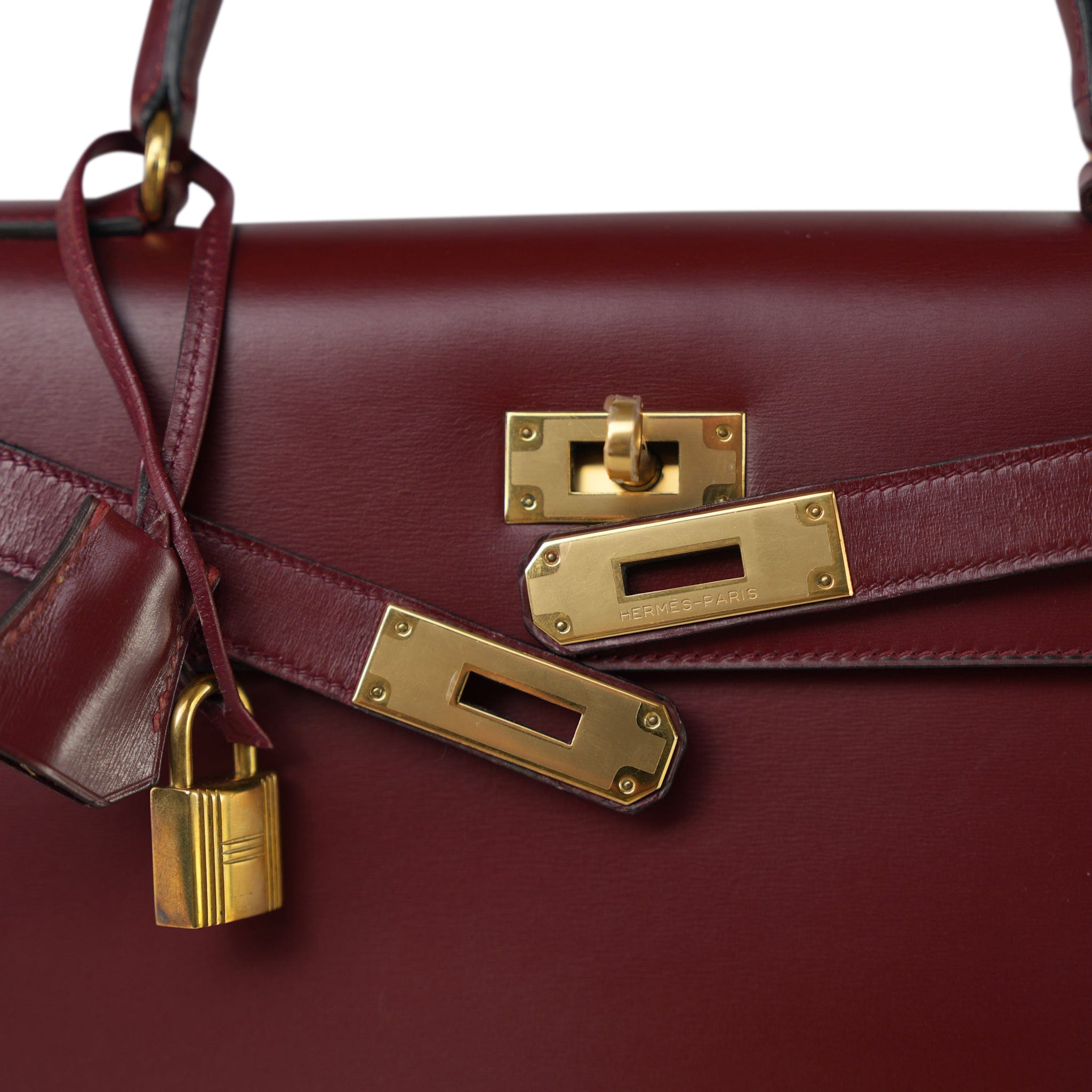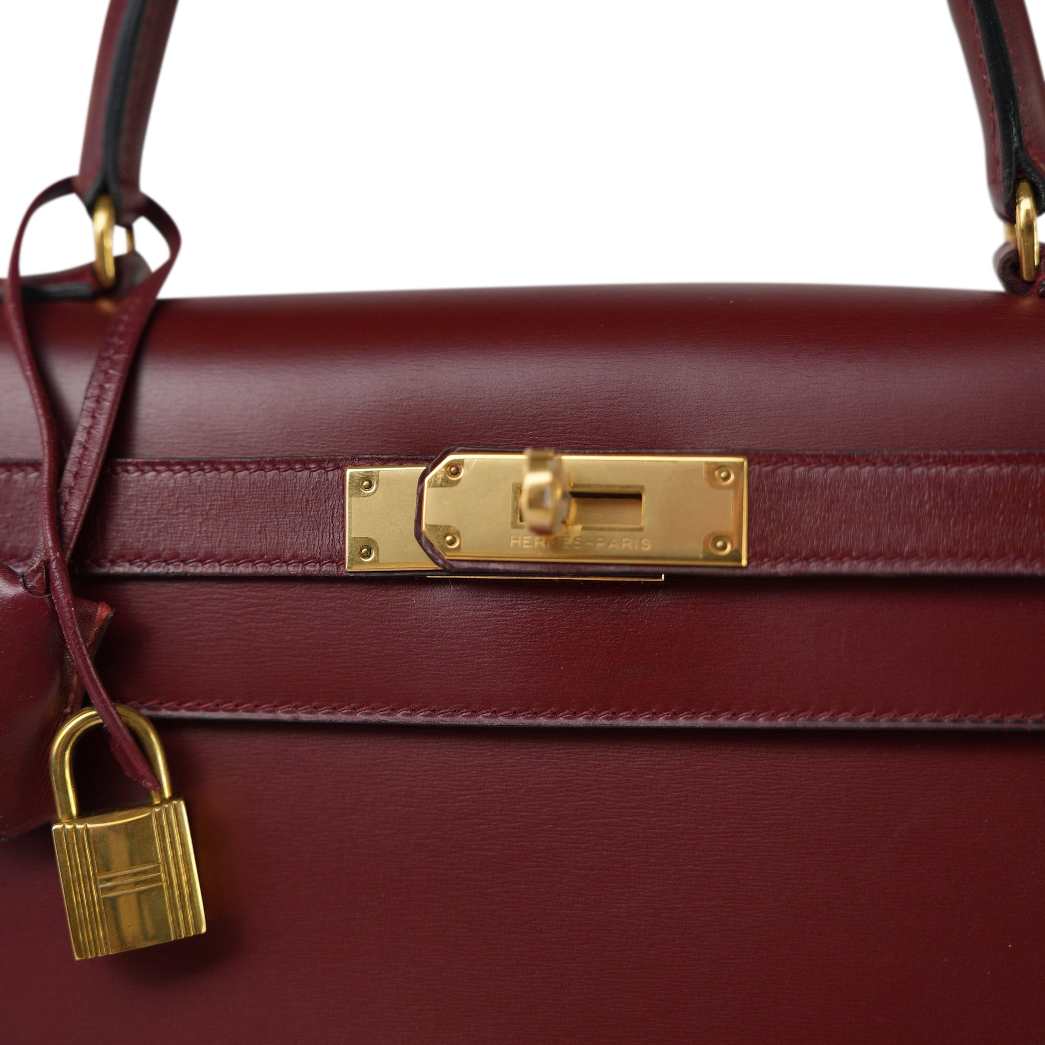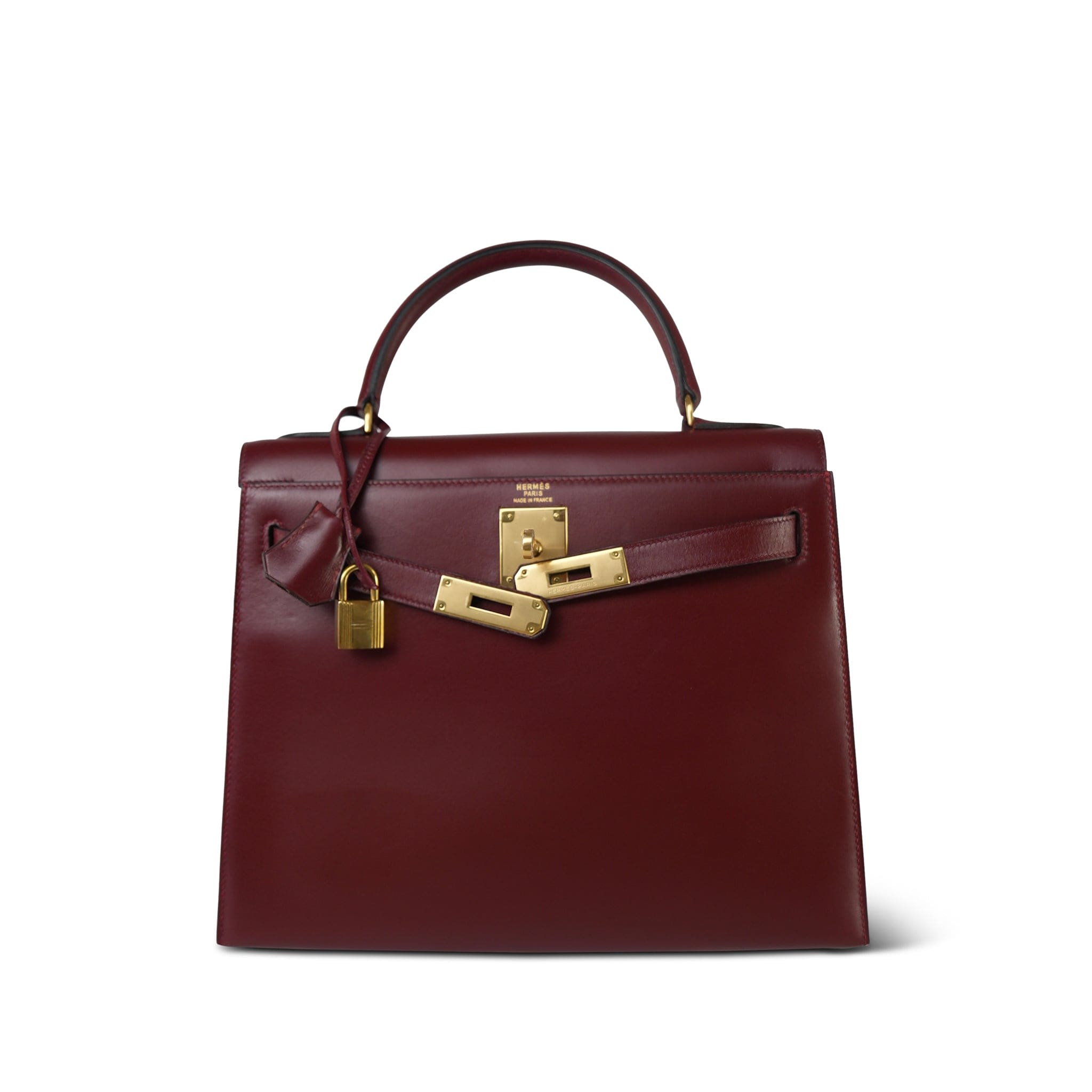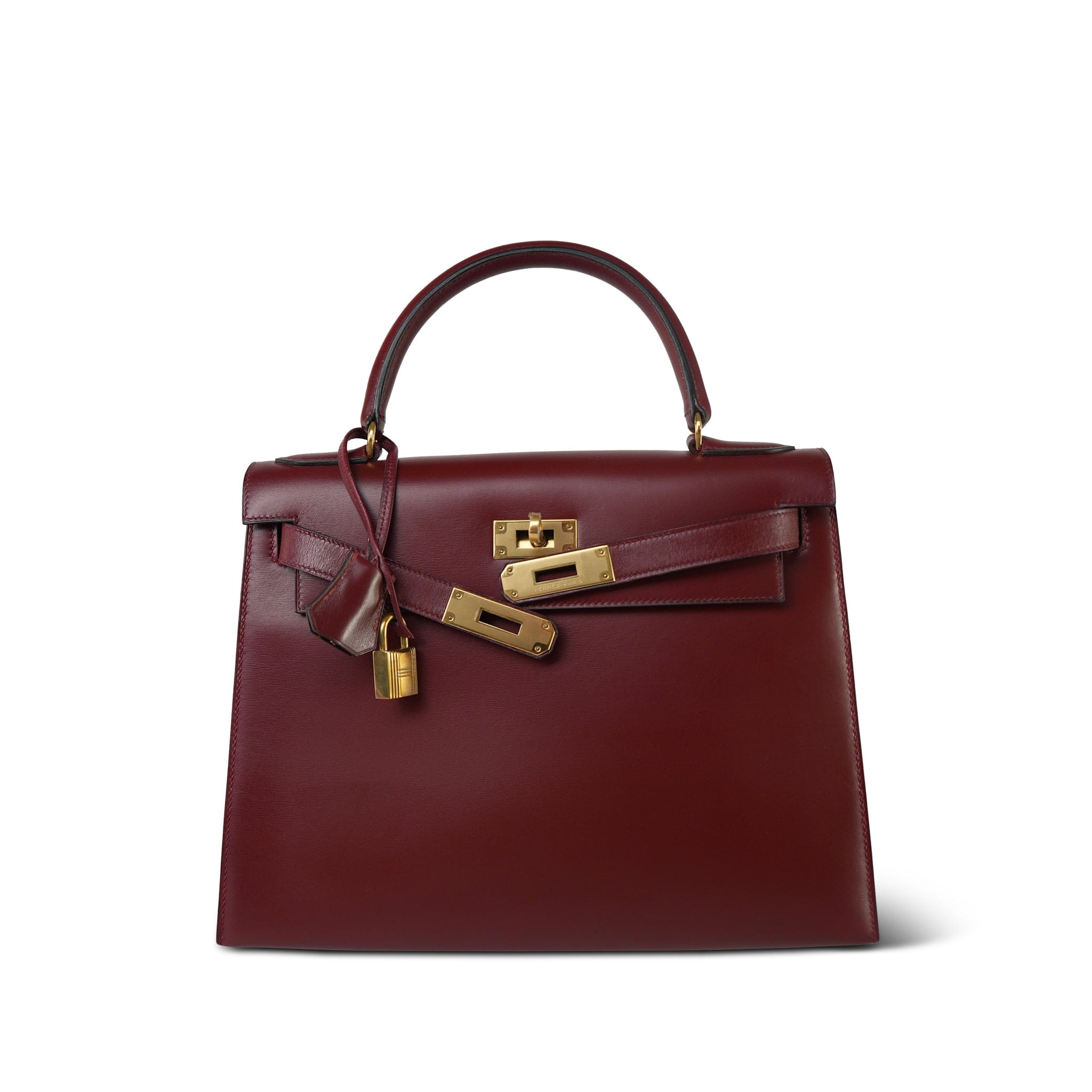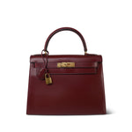 Kelly Sellier 28 Rouge H Box Calfskin Gold Plated L Circle Stamp