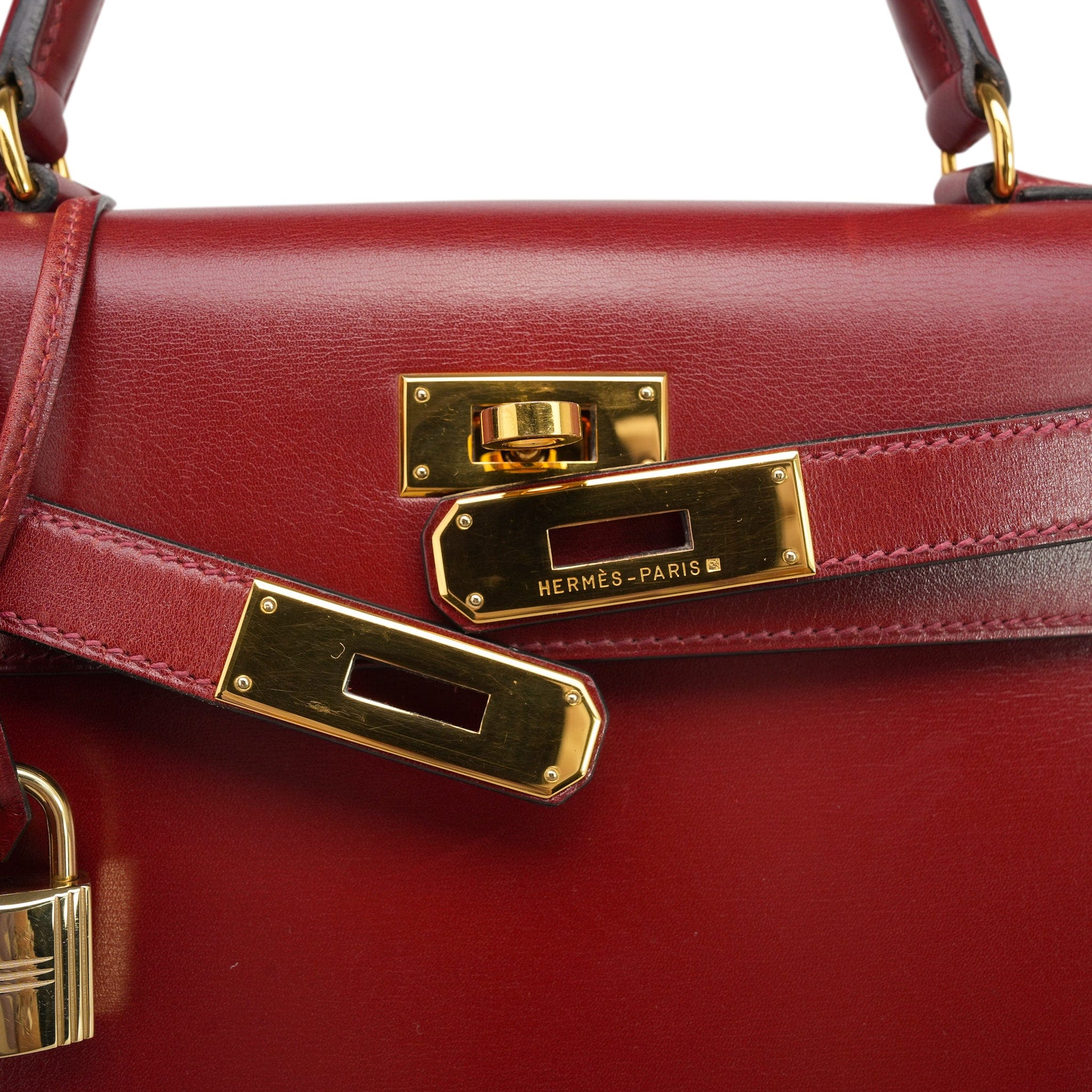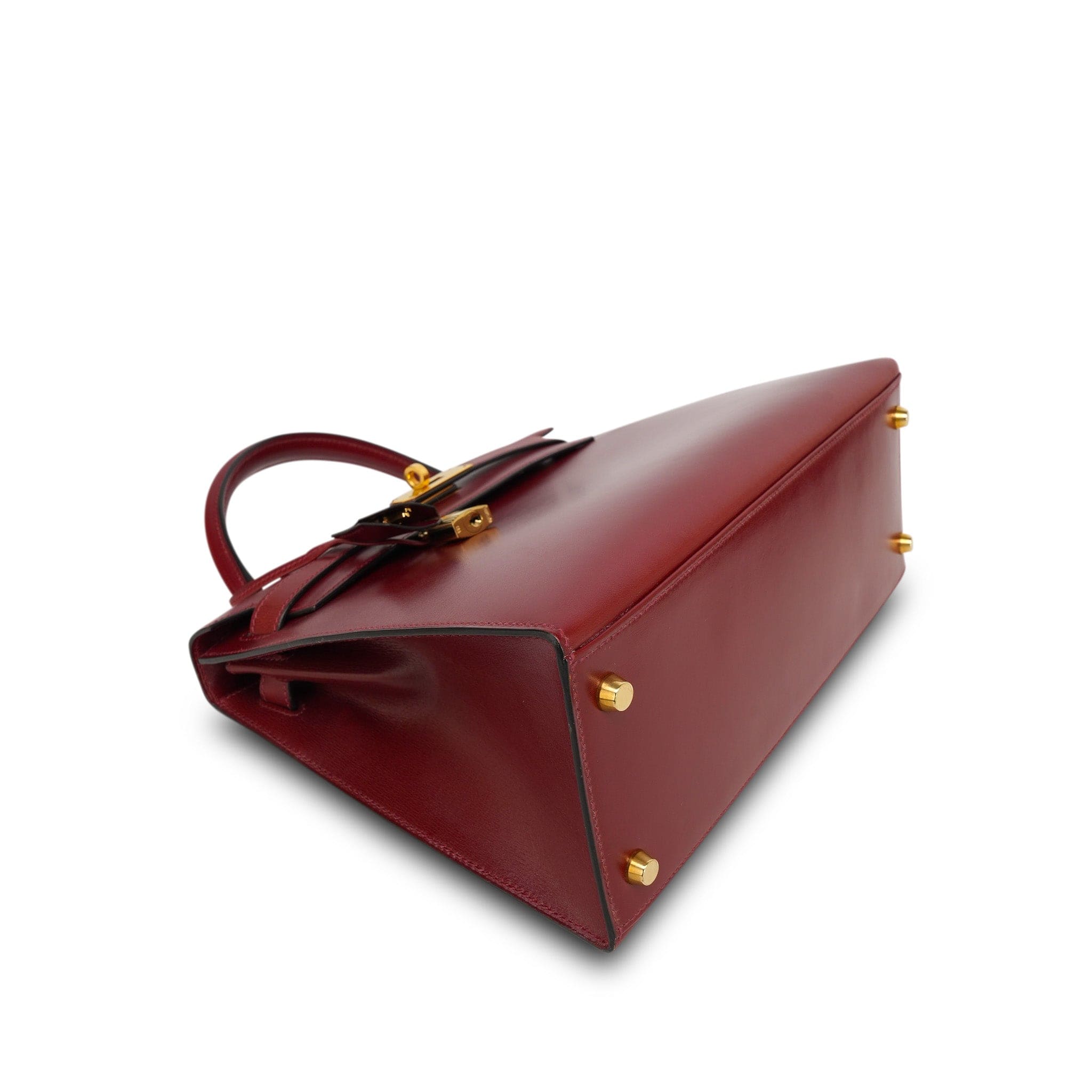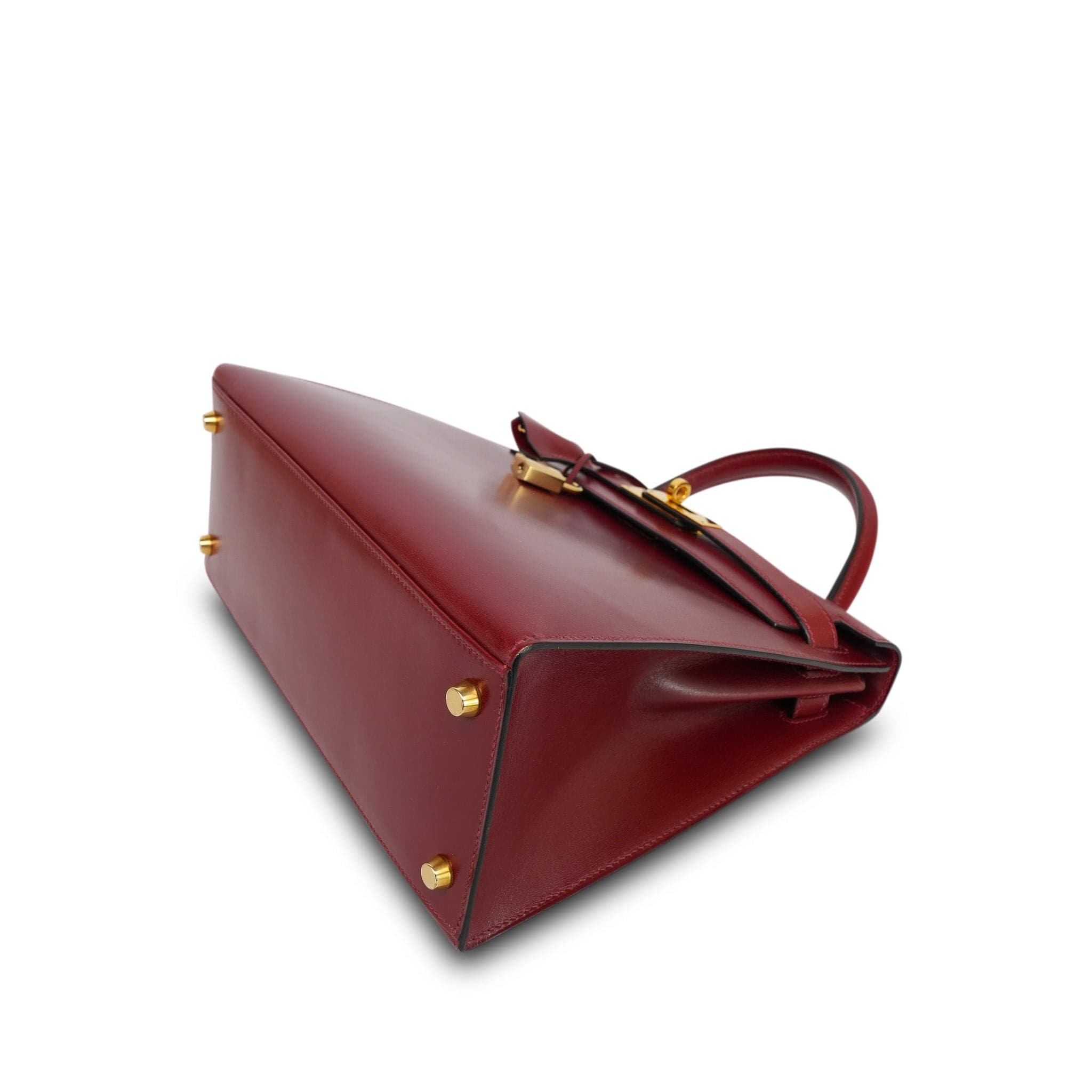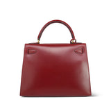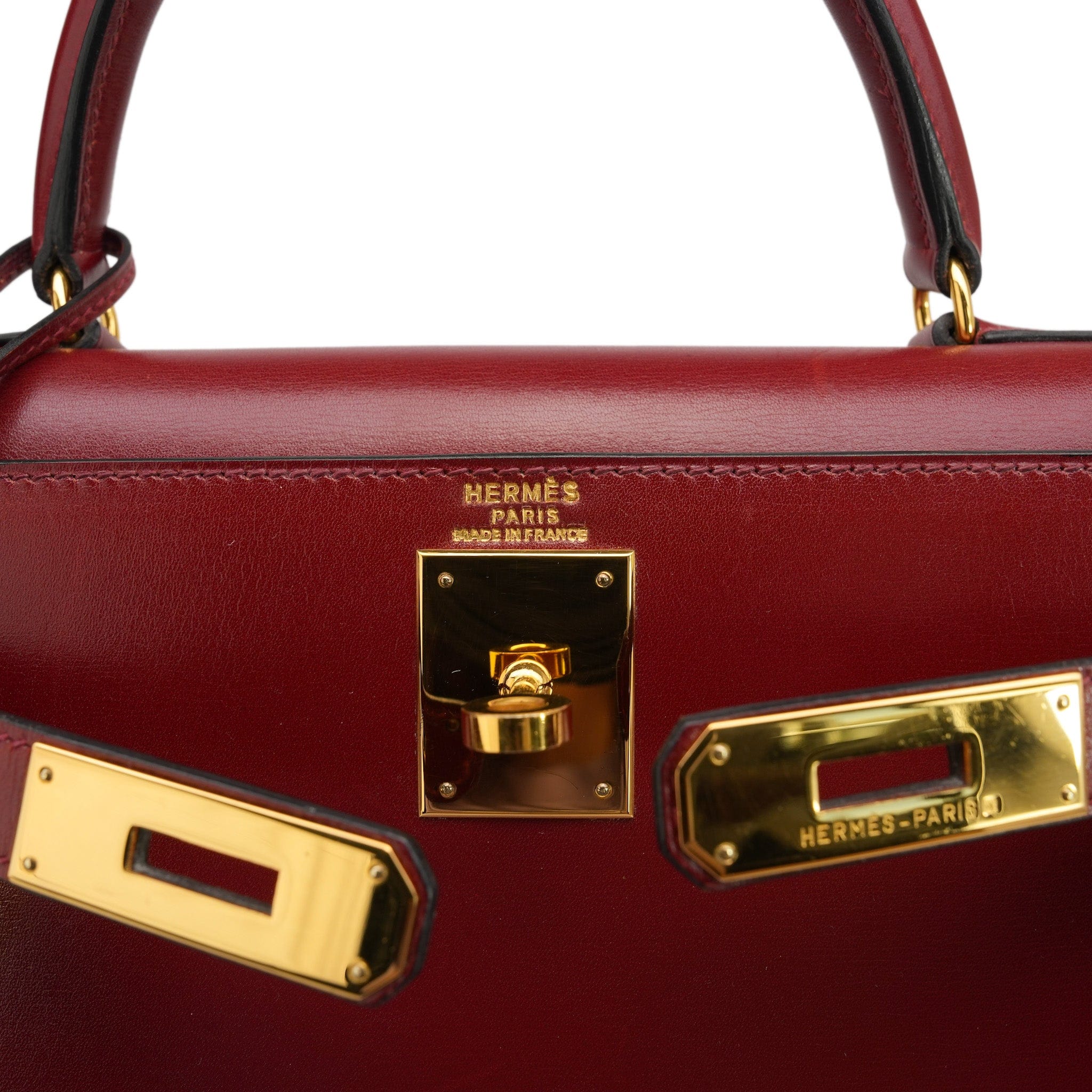 Kelly Sellier 28 Rouge H Box Calfskin Gold Plated Z Circle Stamp