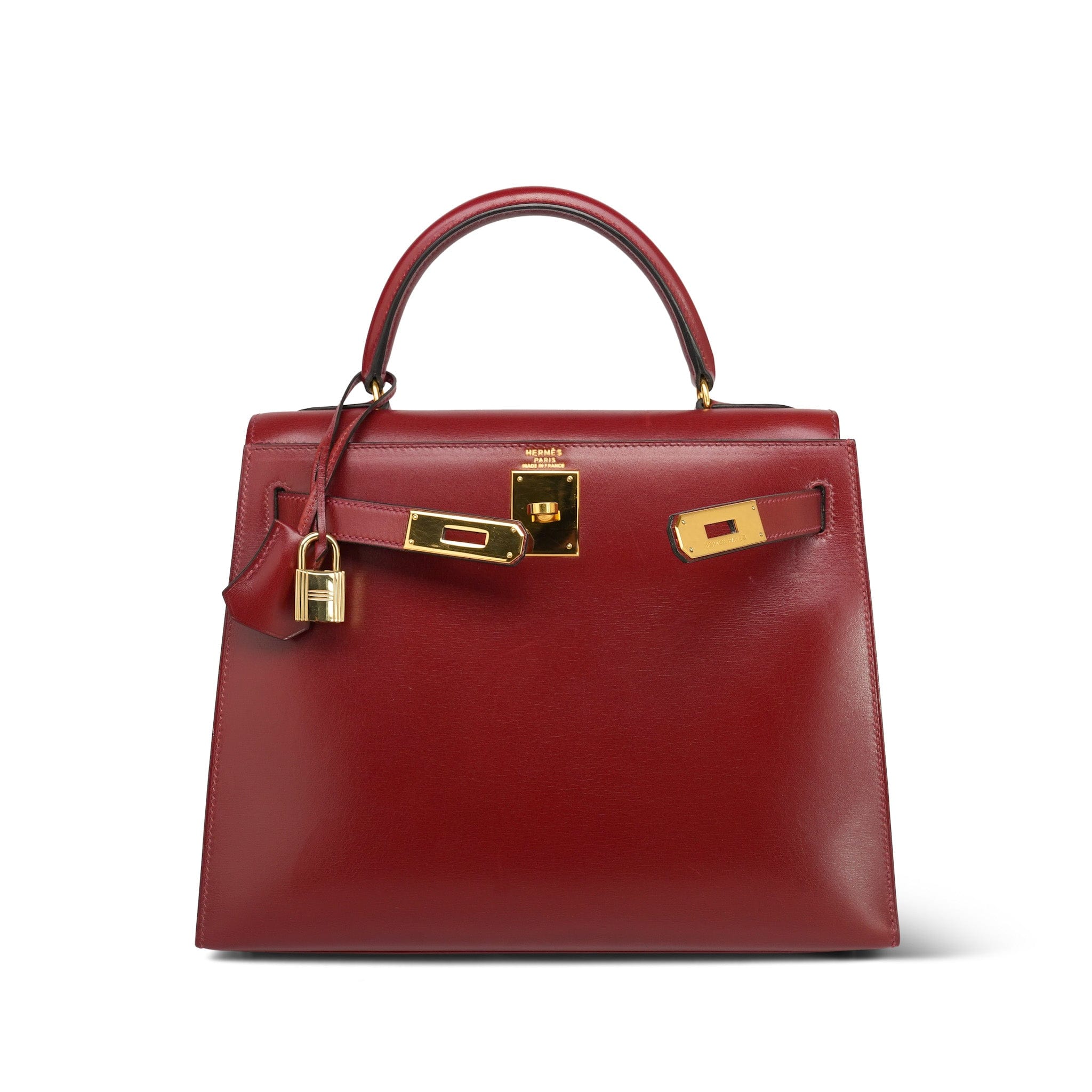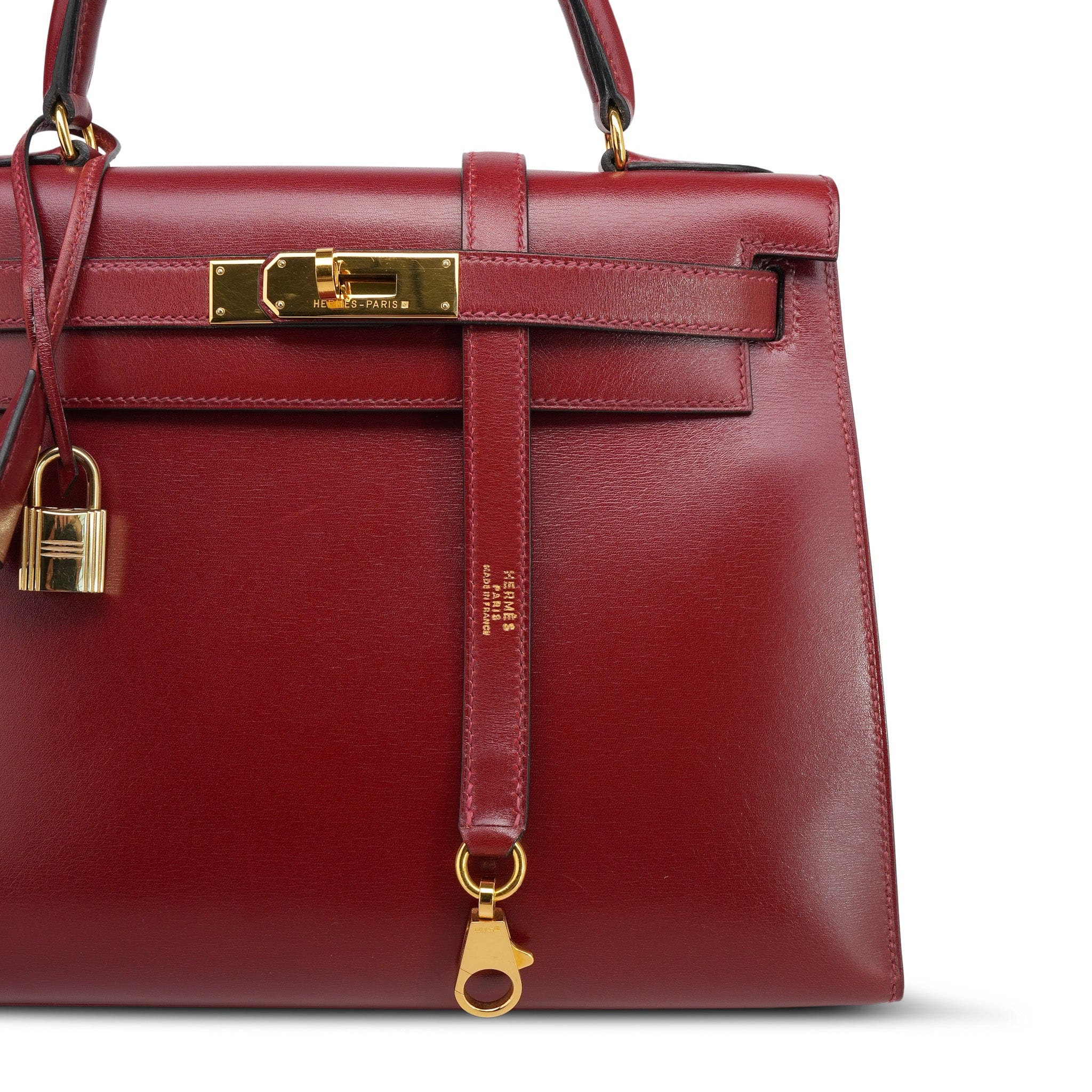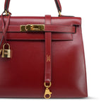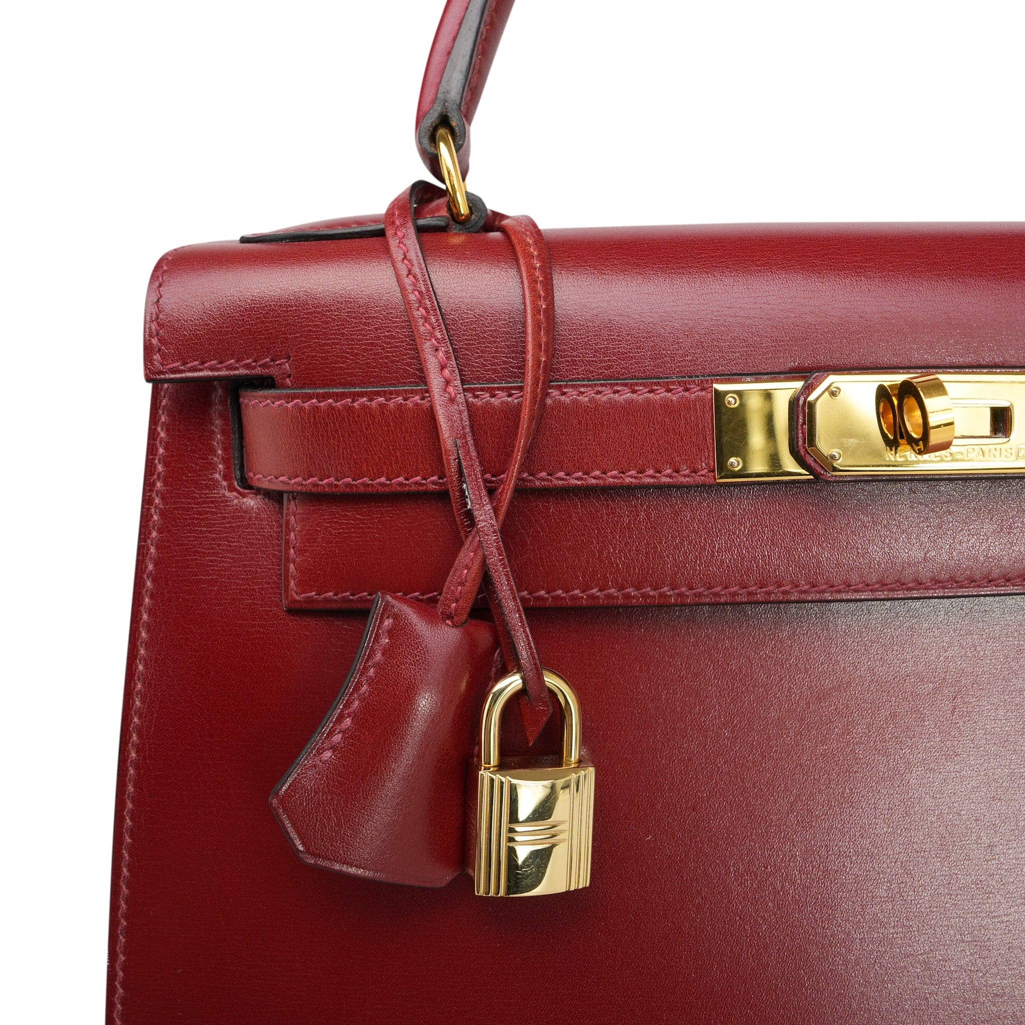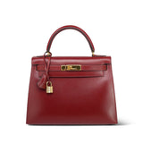 Kelly Sellier 28 Rouge H Box Calfskin Gold Plated Z Circle Stamp