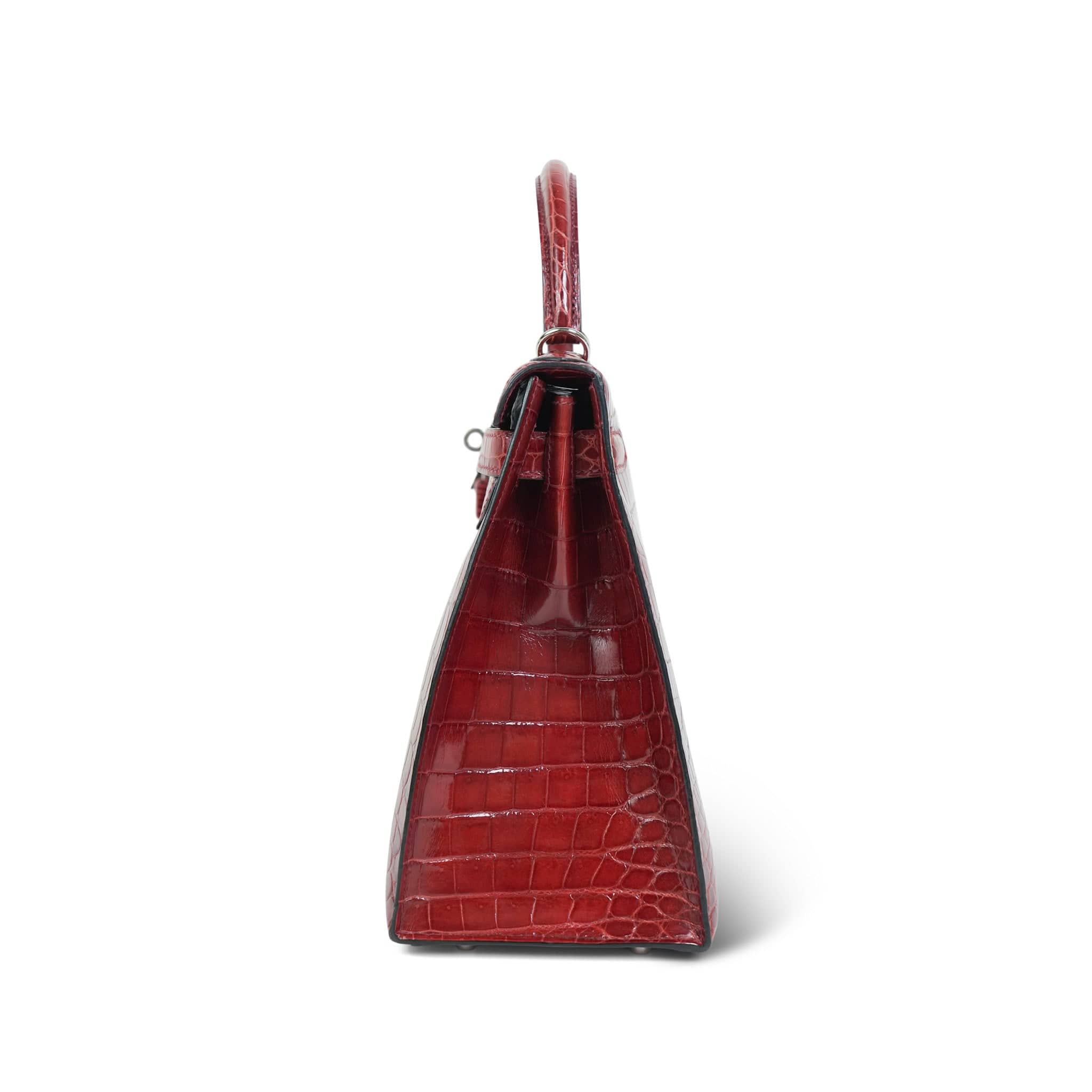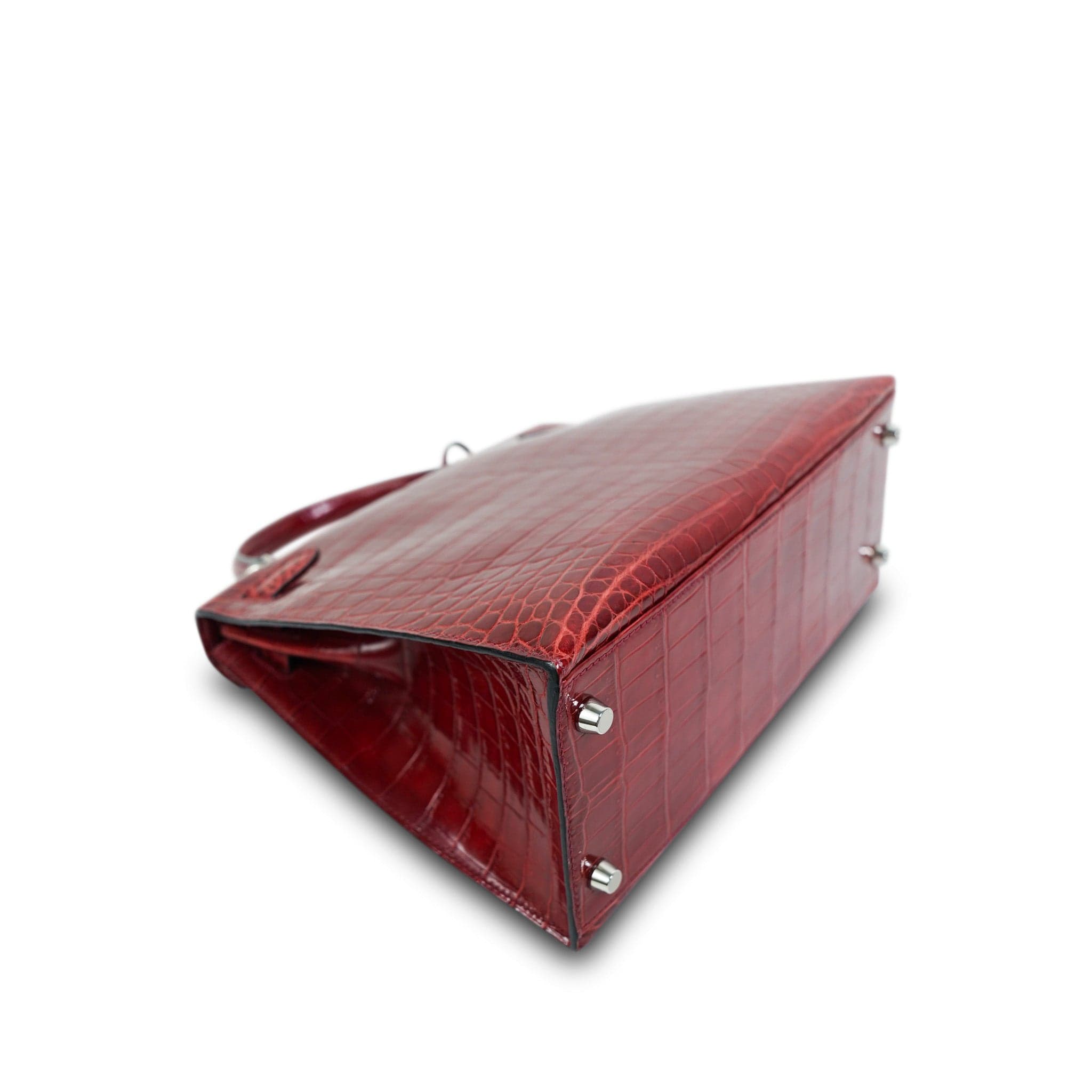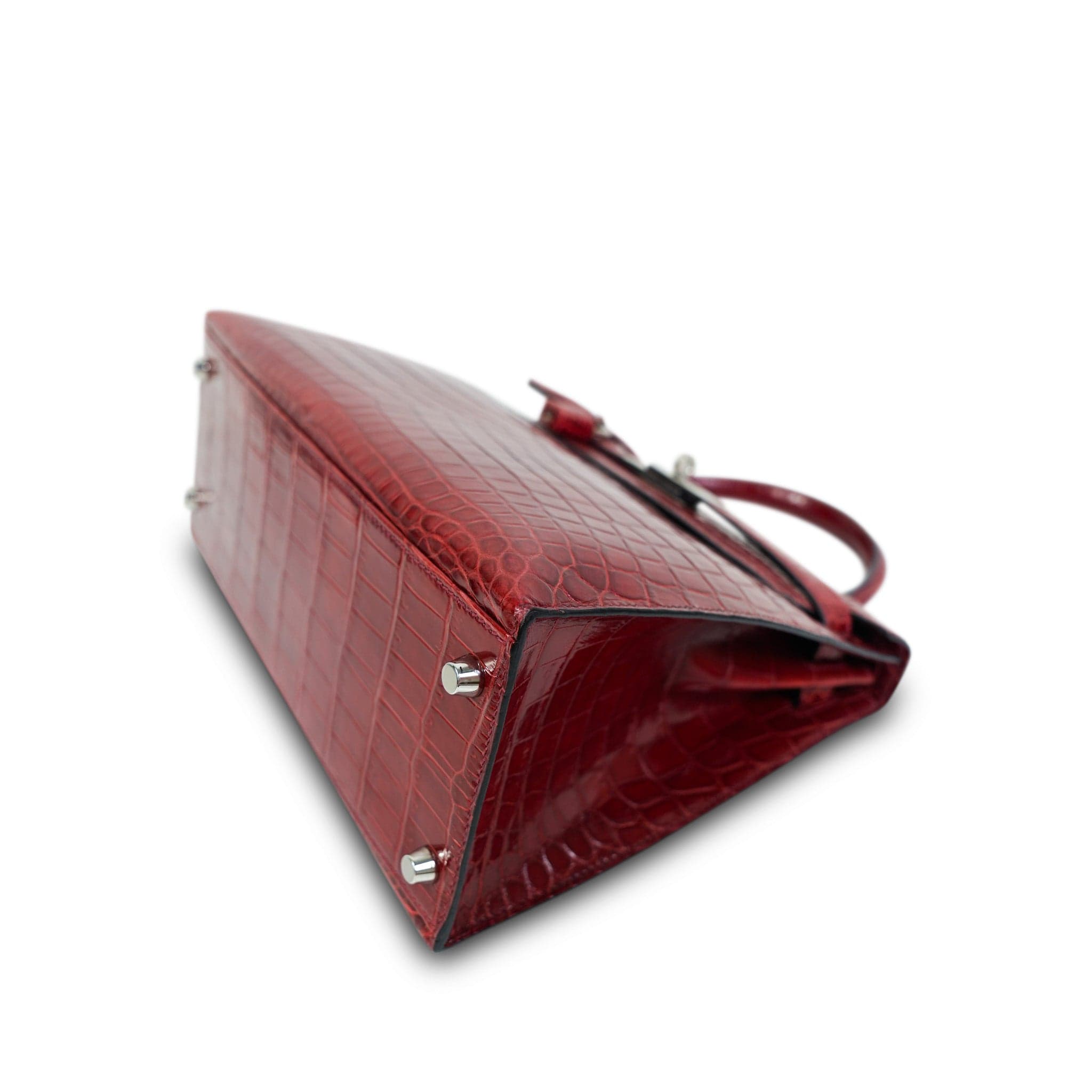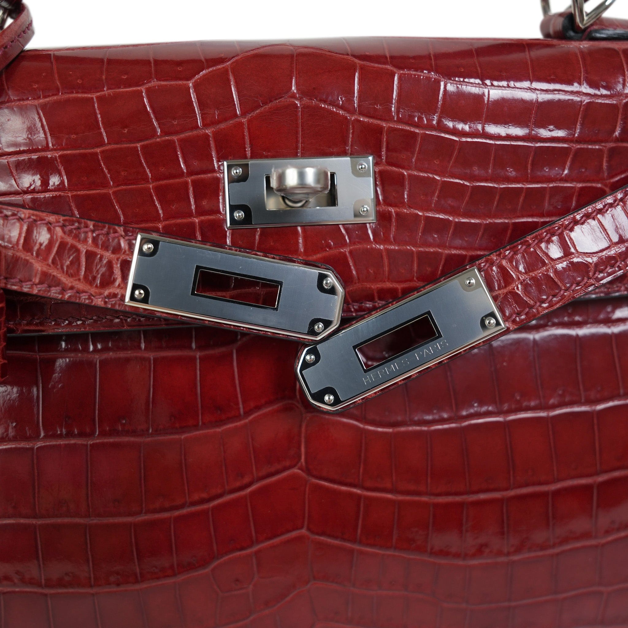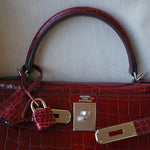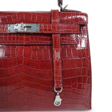 Kelly Sellier 28 Rouge H Crocodile Niloticus Palladium Plated T Stamp