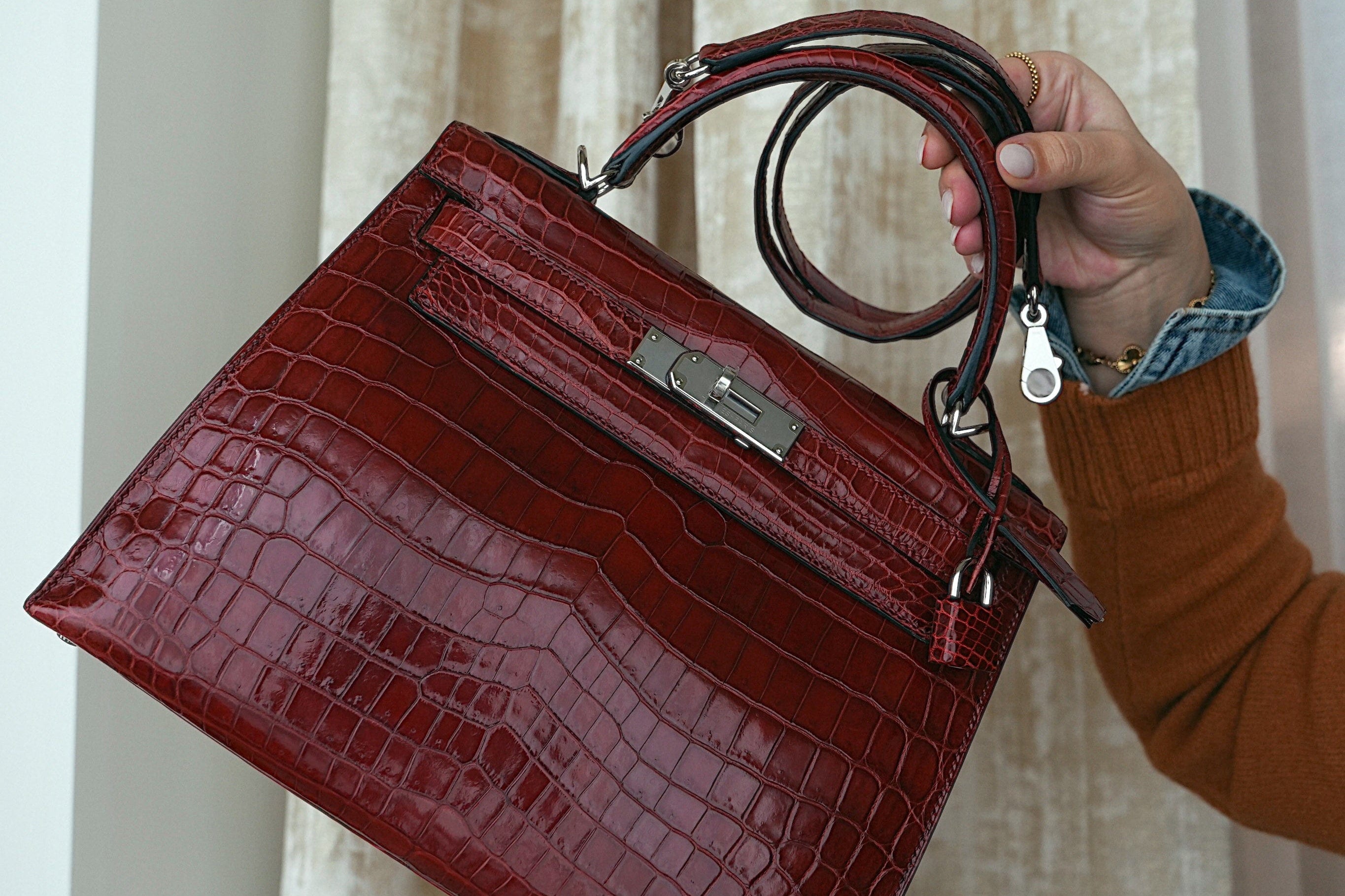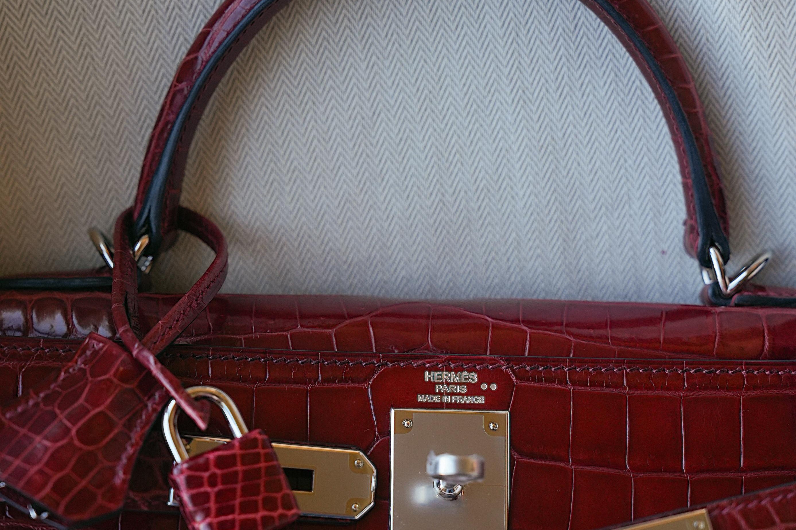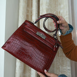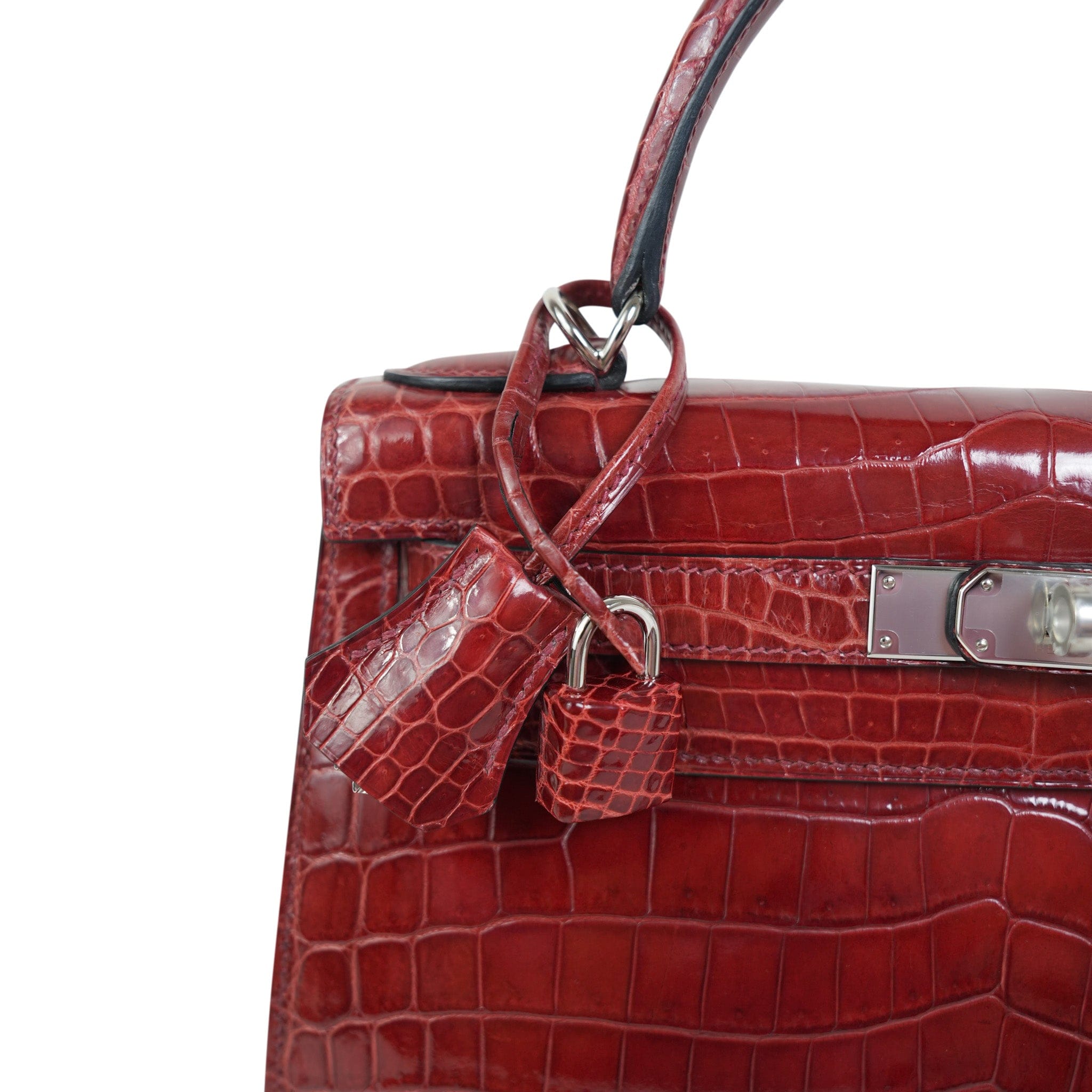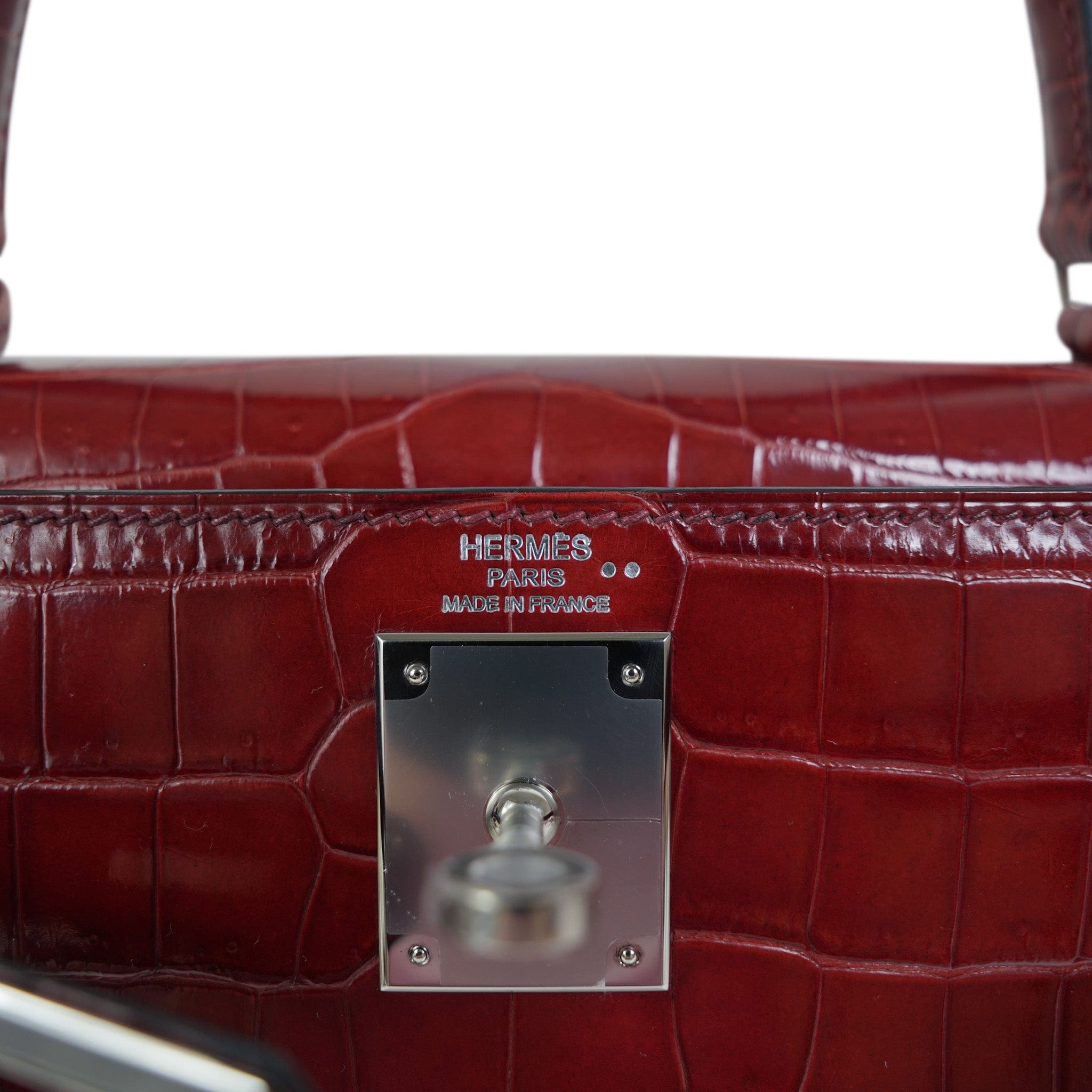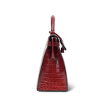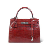 Kelly Sellier 28 Rouge H Crocodile Niloticus Palladium Plated T Stamp