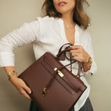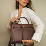 Kelly Sellier 32 Brown Havane Courchevel Gold Plated (Z) Stamp