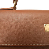 Condition: Excellent Vintage. Some rubbing/peeling on flap, inner top corners, and area around sangles. Impressions on bottom inside of bag. Few darkened spots on bottom and underside of handle.