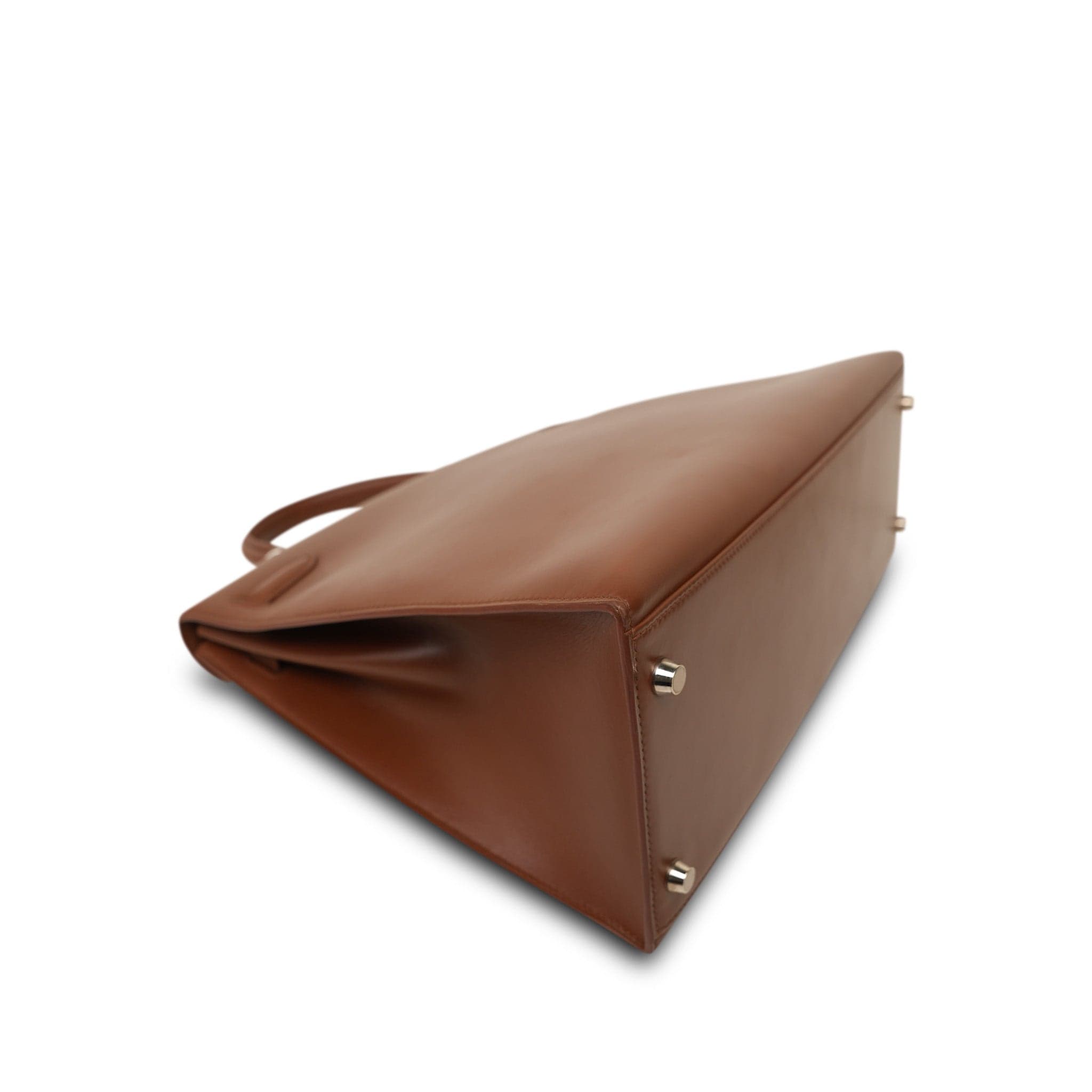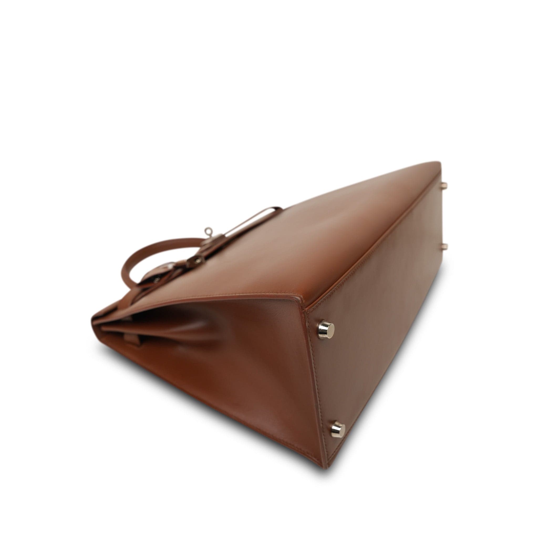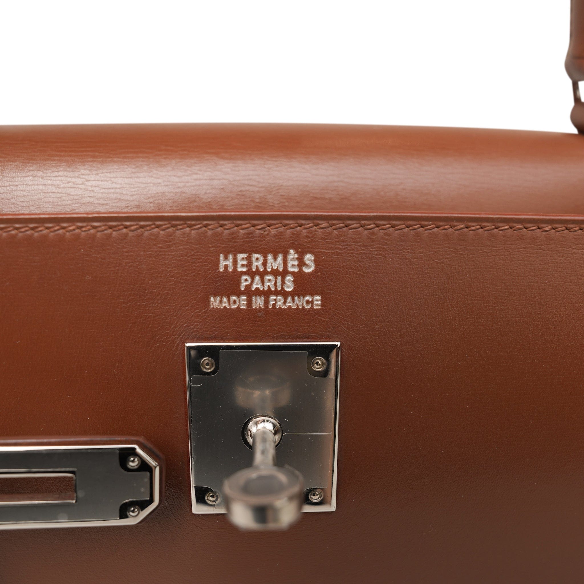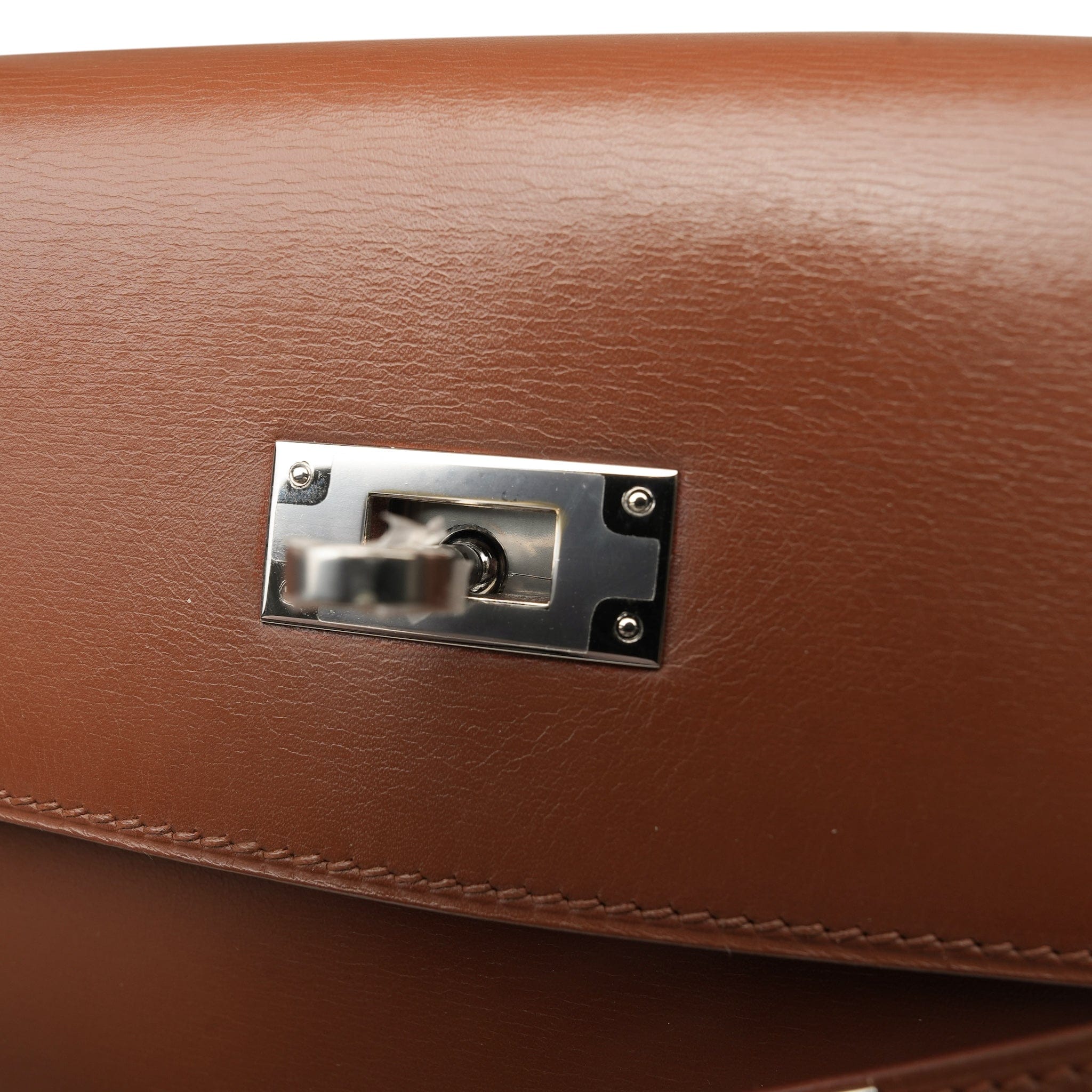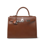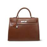 Kelly Sellier 35 Noisette Box Calfskin Palladium Plated E Square Stamp