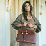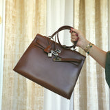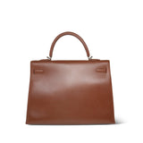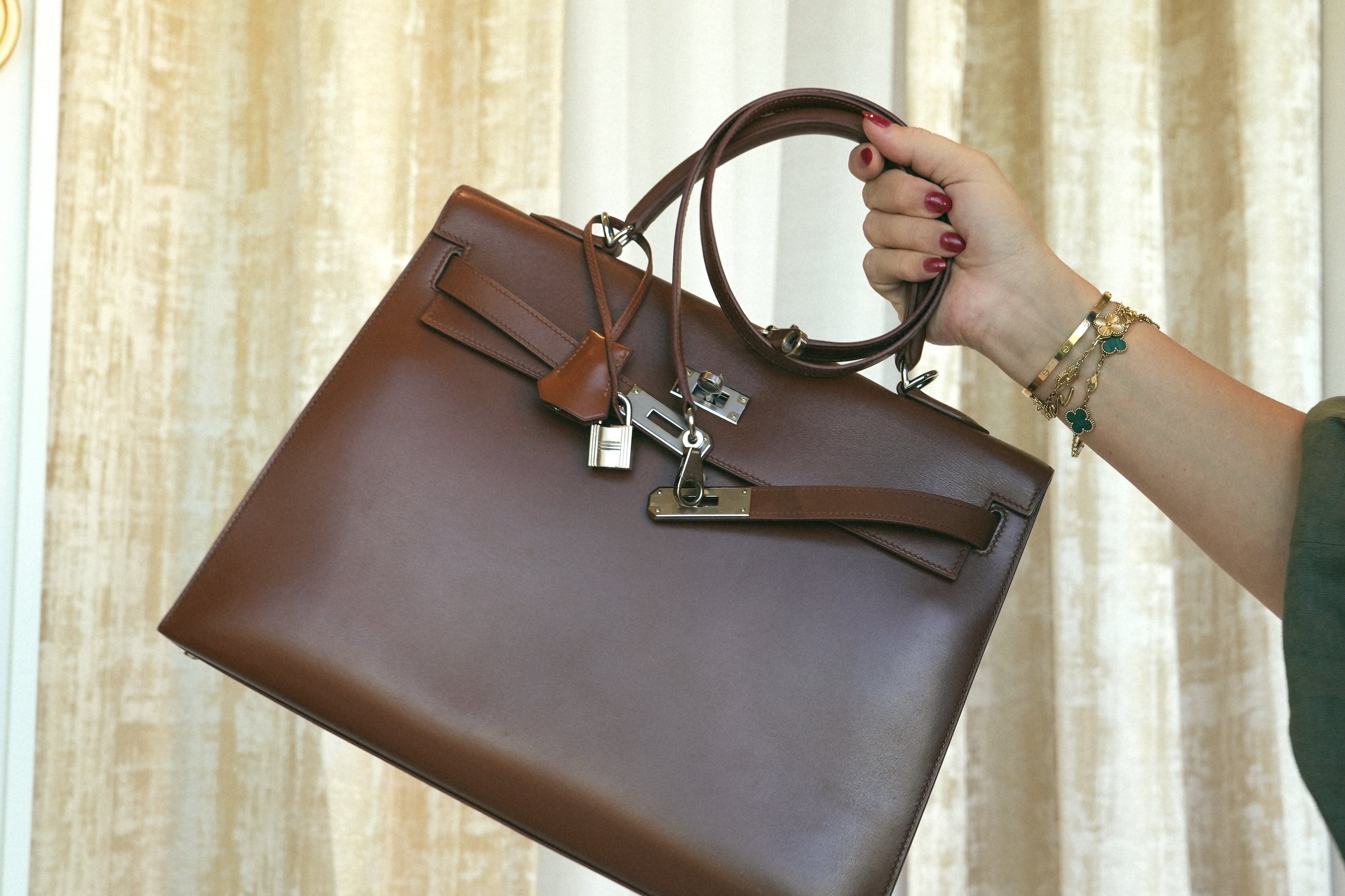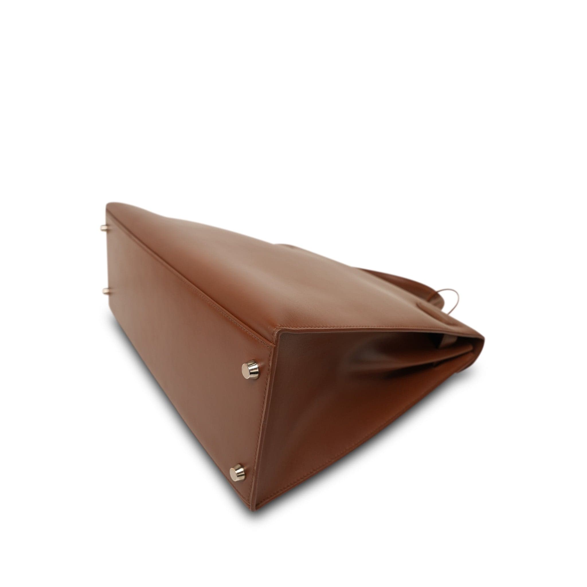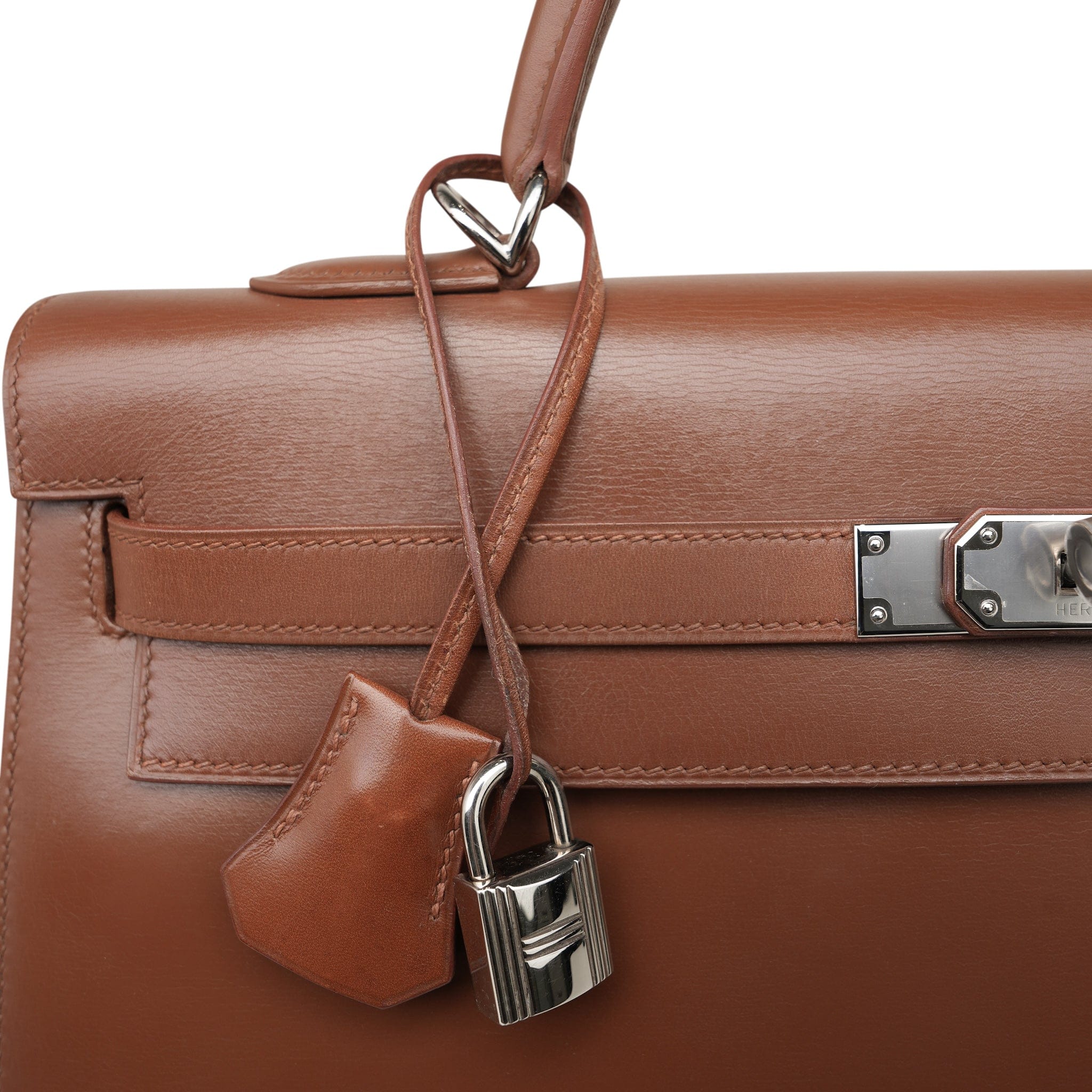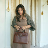 Kelly Sellier 35 Noisette Box Calfskin Palladium Plated E Square Stamp
