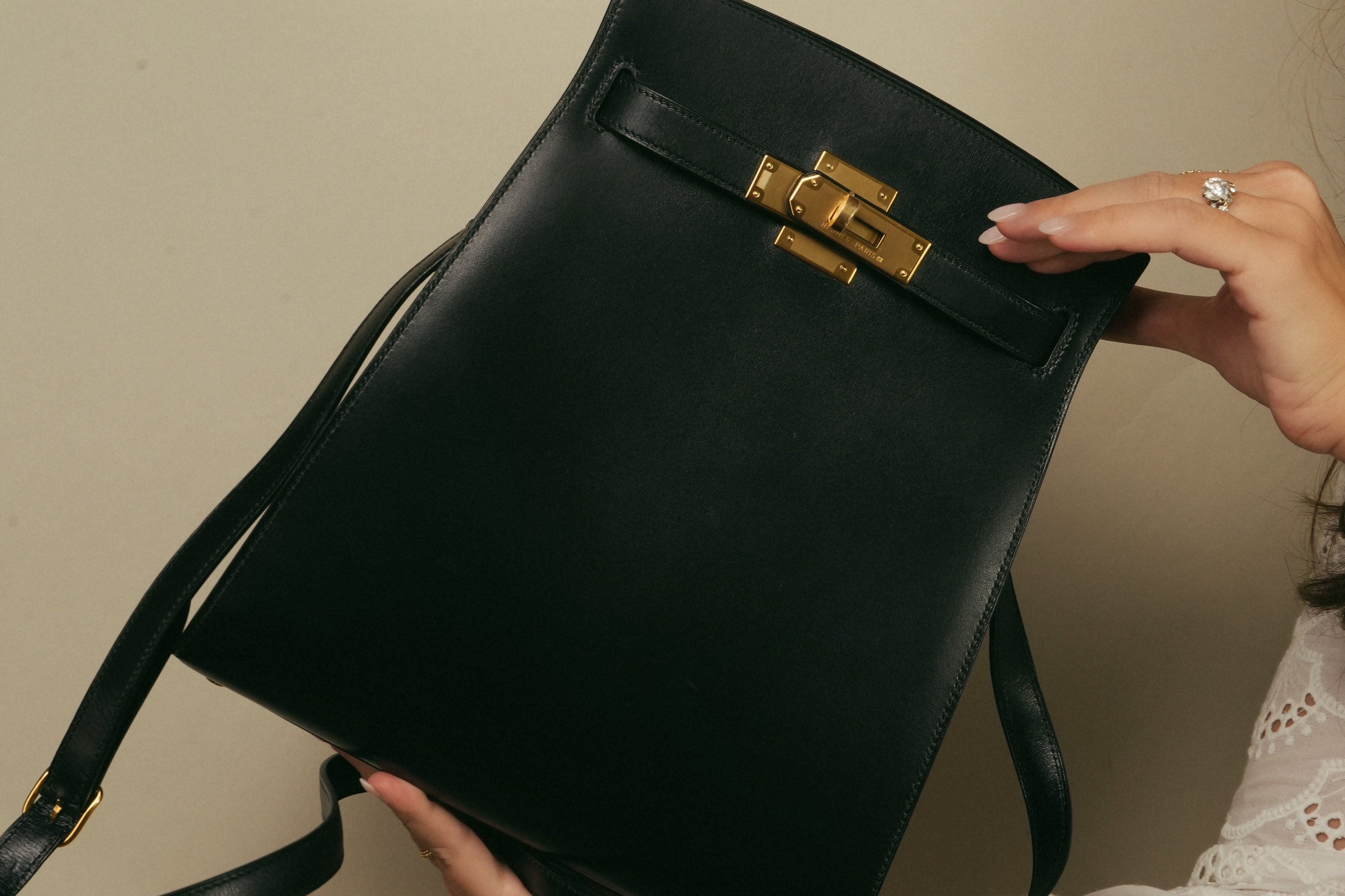 Kelly Sport 24 Black Calfskin Gold Plated A Square Stamp