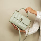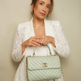 Light Green Lambskin Quilted Trendy CC Small Light Gold Hardware