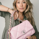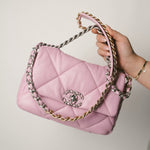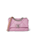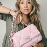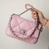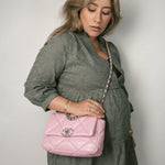 Light Pink Lambskin Quilted 19 Flap Small MHW