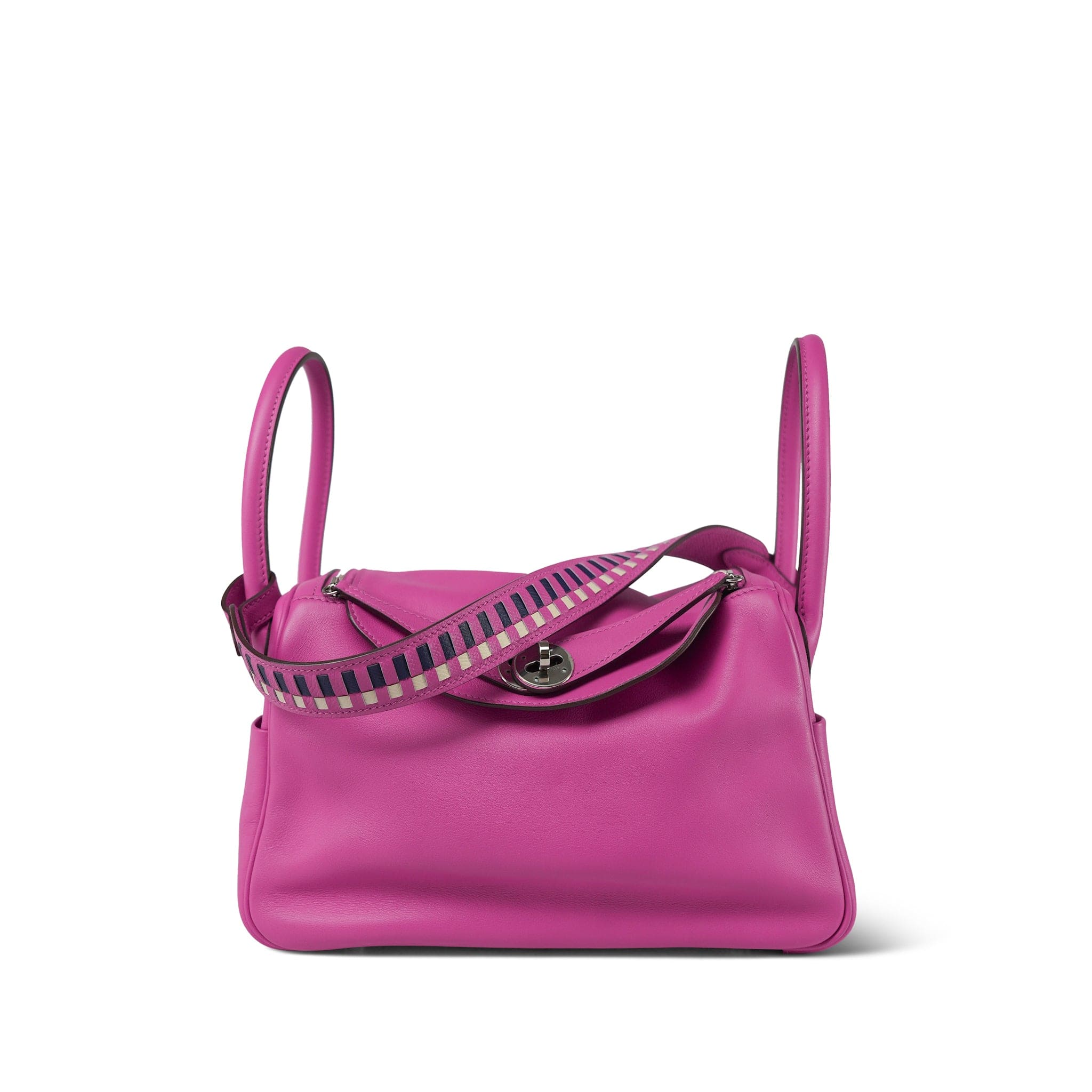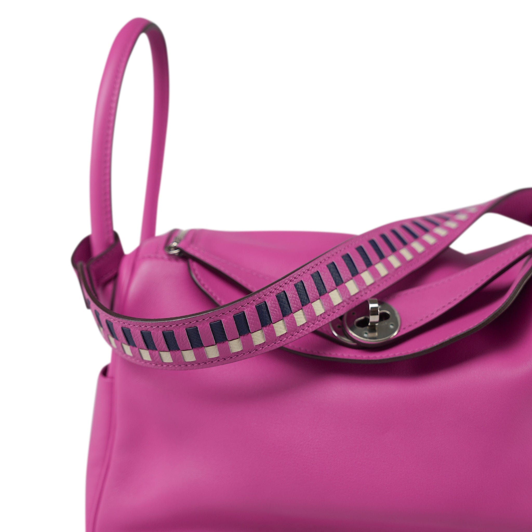 Lindy 26 Tressage De Cuir Magnolia Swift/ Bleu Saphir Craie Epsom Palladium Plated C Stamp