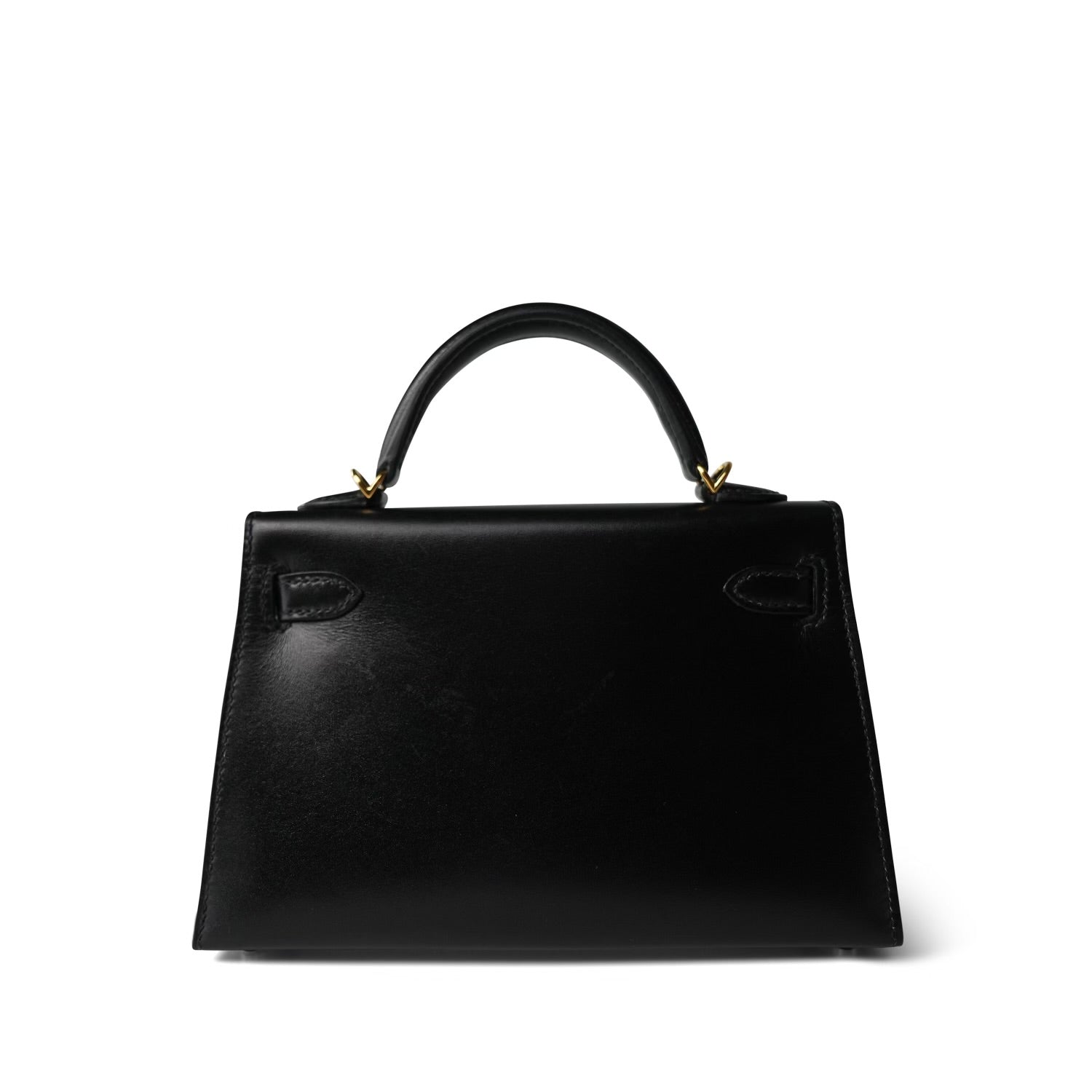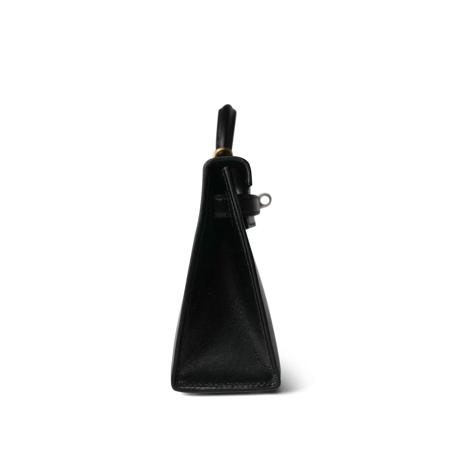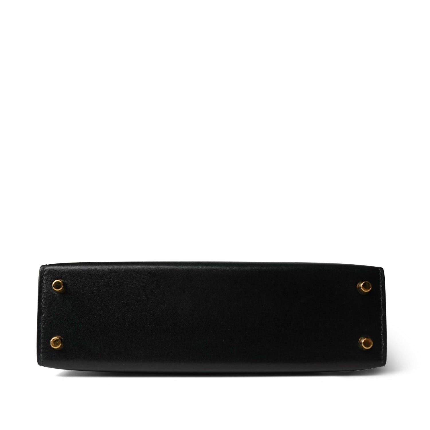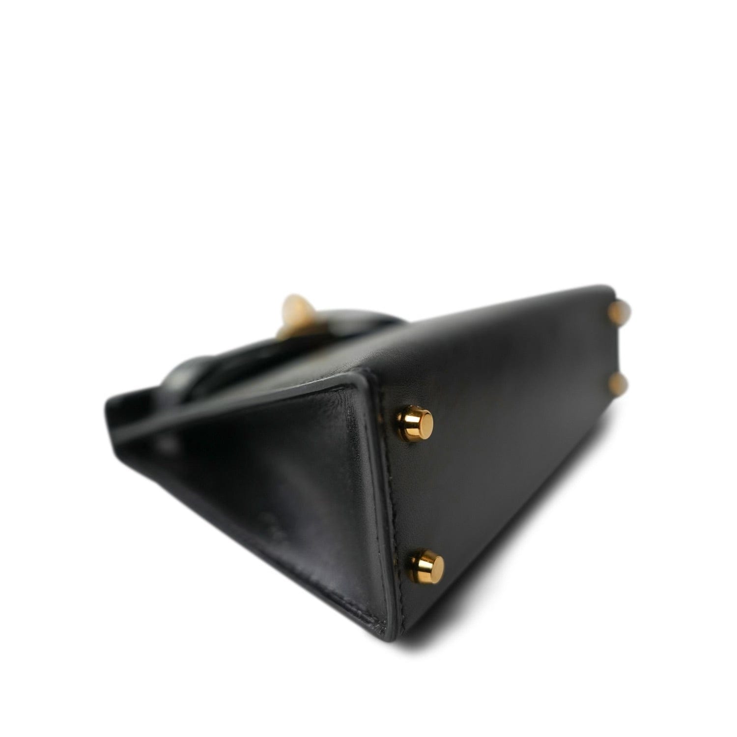 Mini Kelly 20 Sellier Black Box Calfskin Gold Plated B Stamp