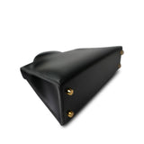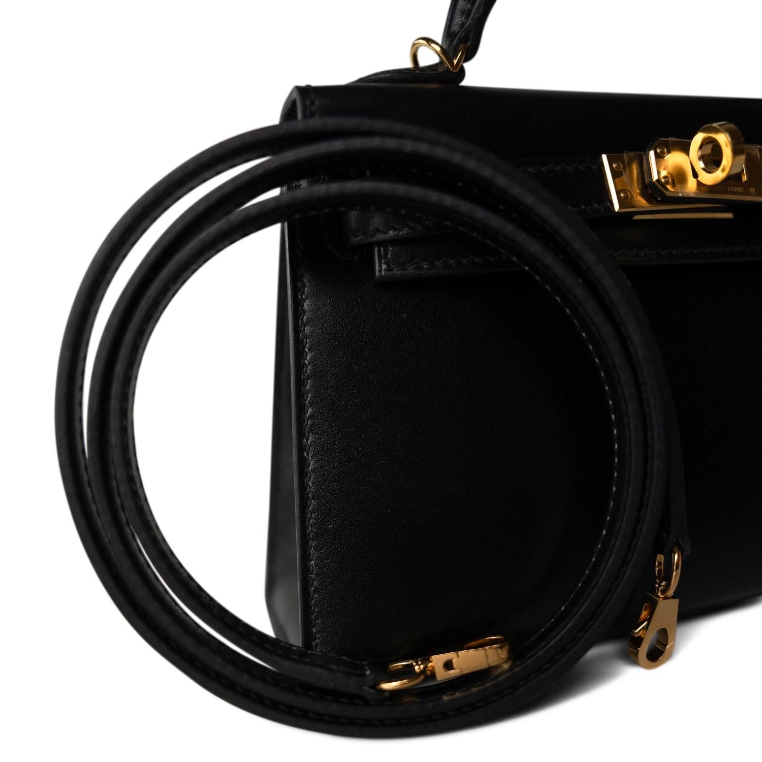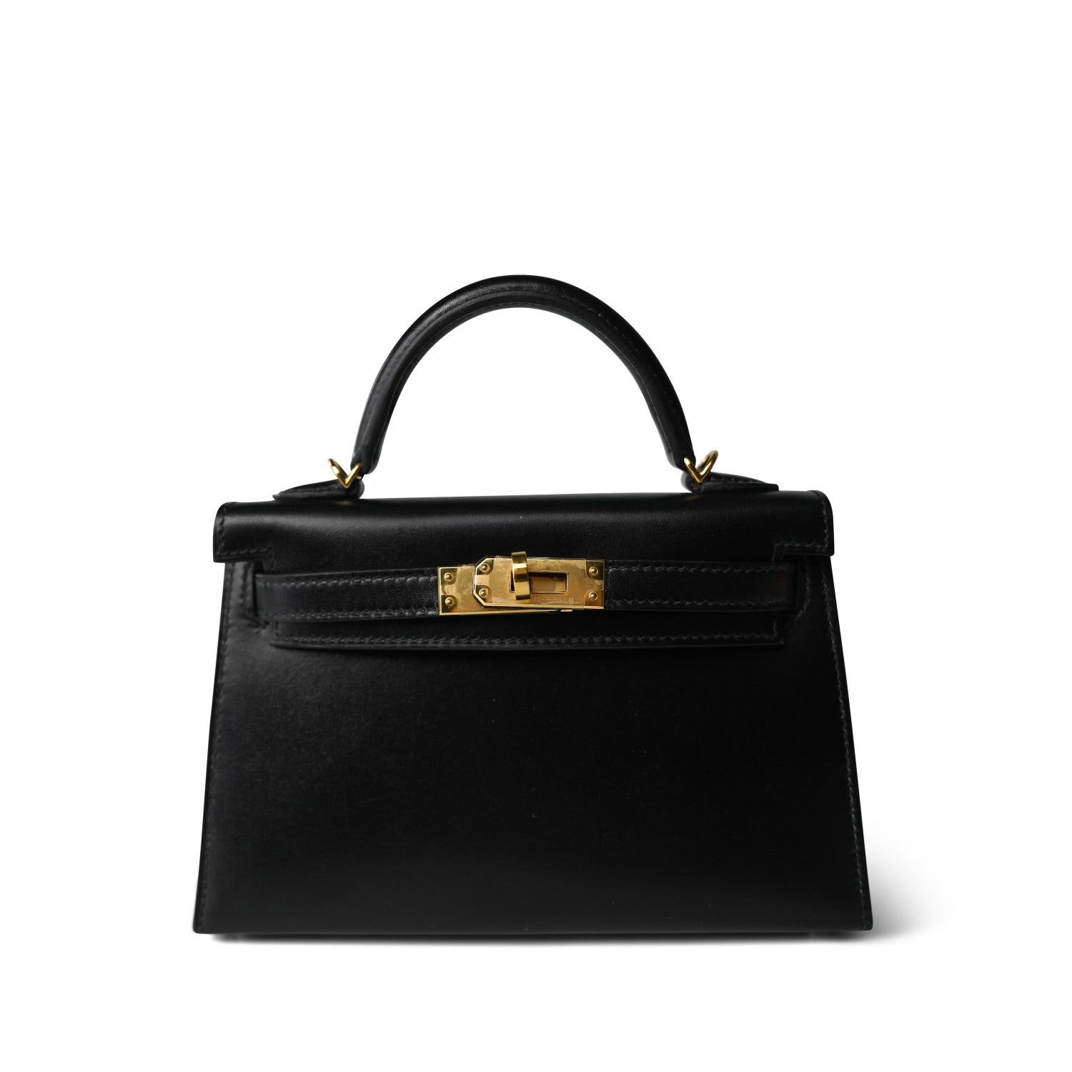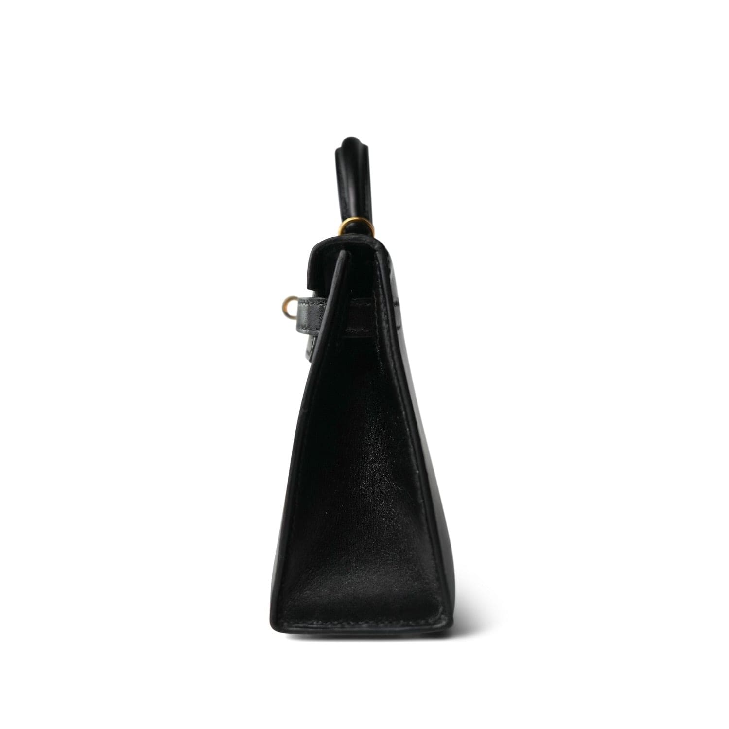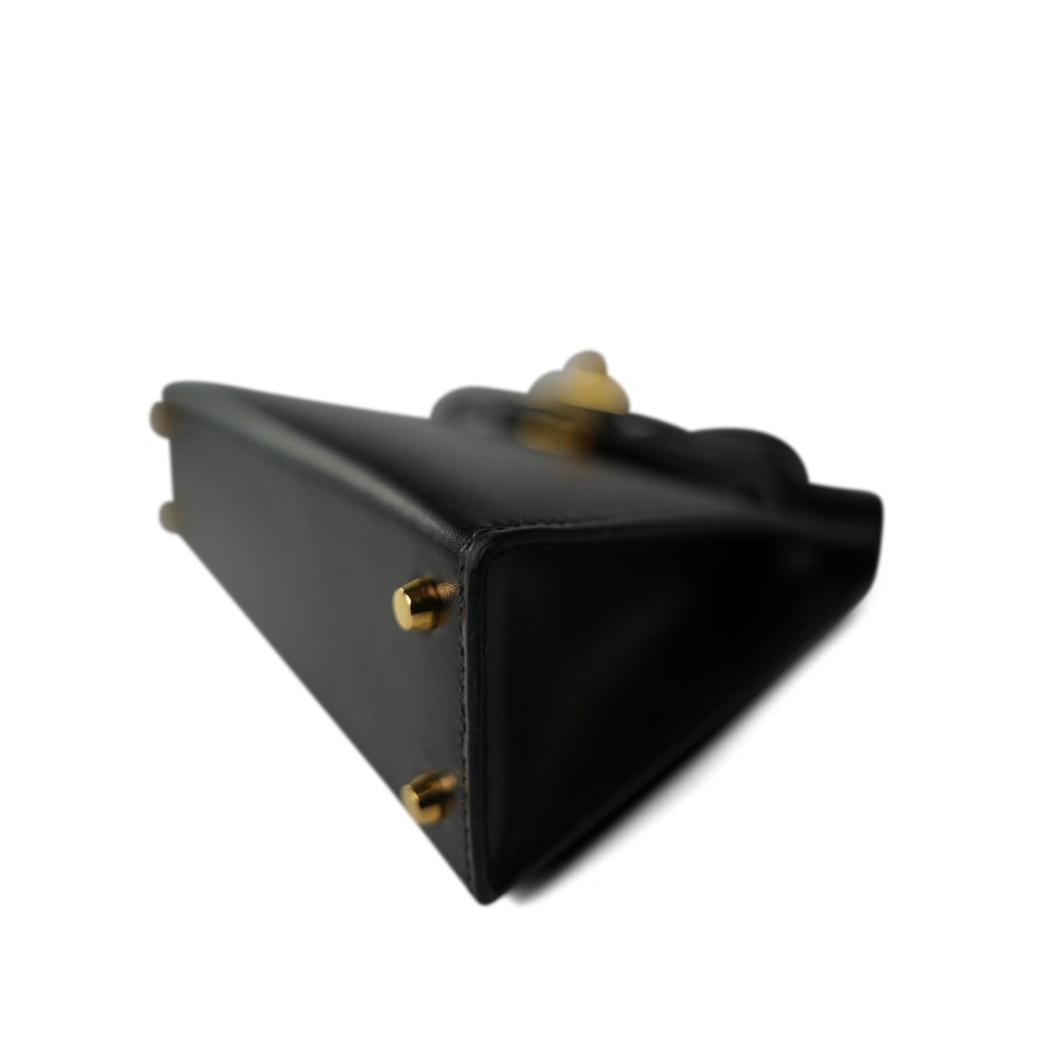 Mini Kelly 20 Sellier Black Box Calfskin Gold Plated B Stamp